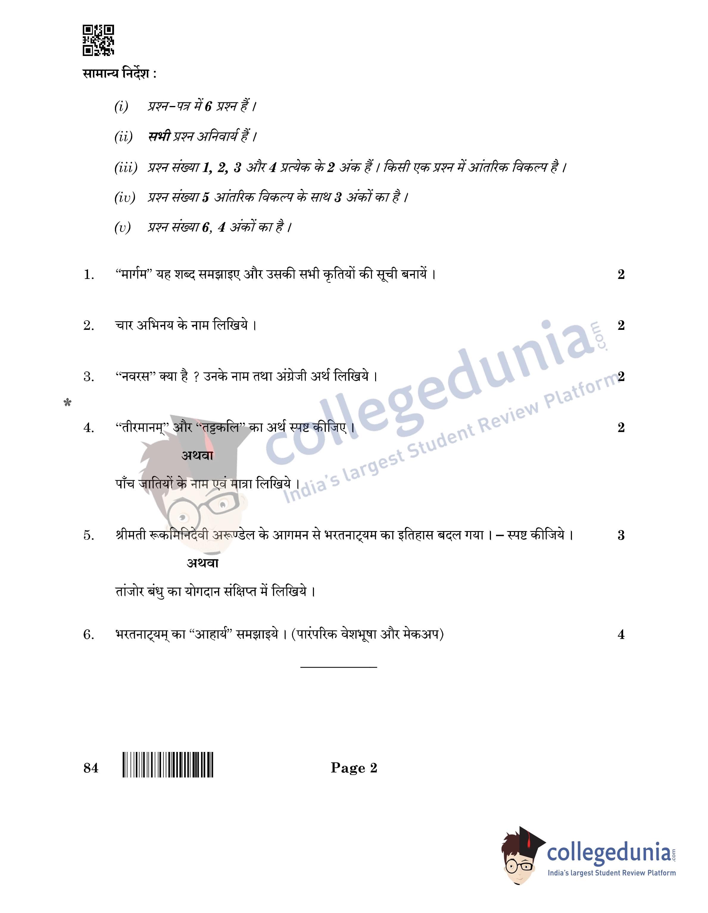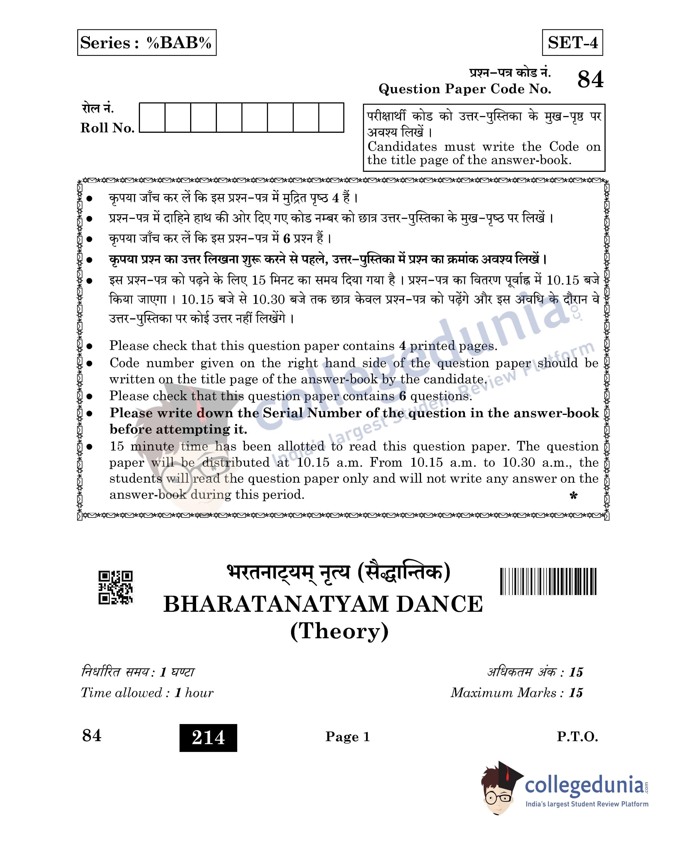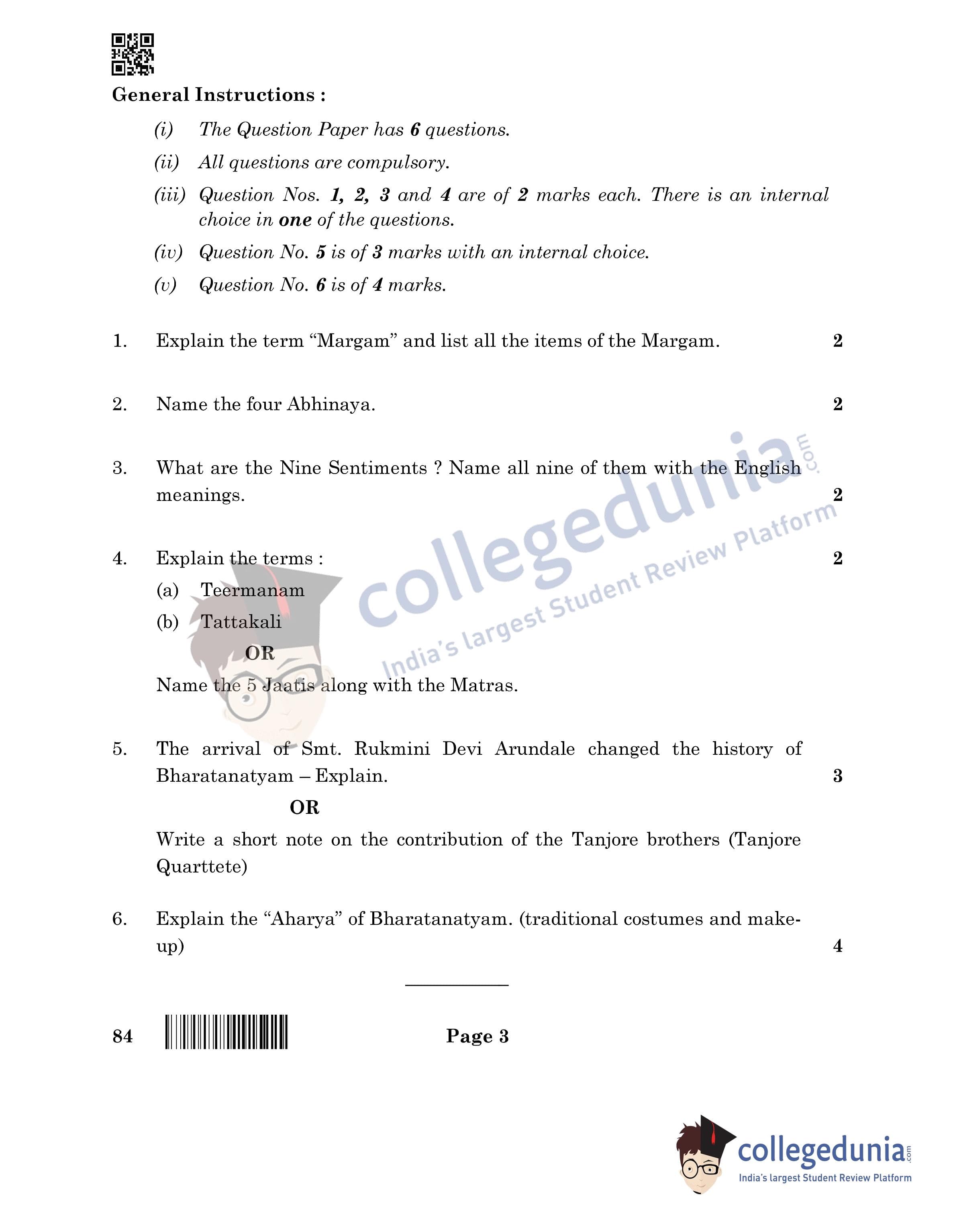 CBSE Class 12 Bharatnatyam - Dance Question Paper 2022 with Answer Key (May 4, Set 4- Morning Session)