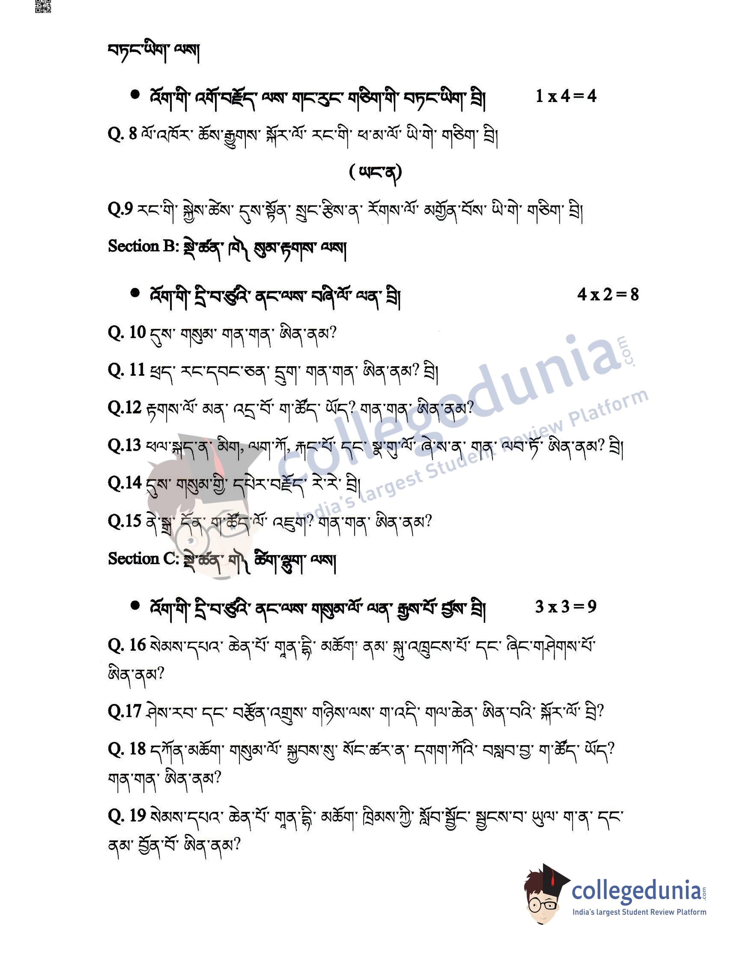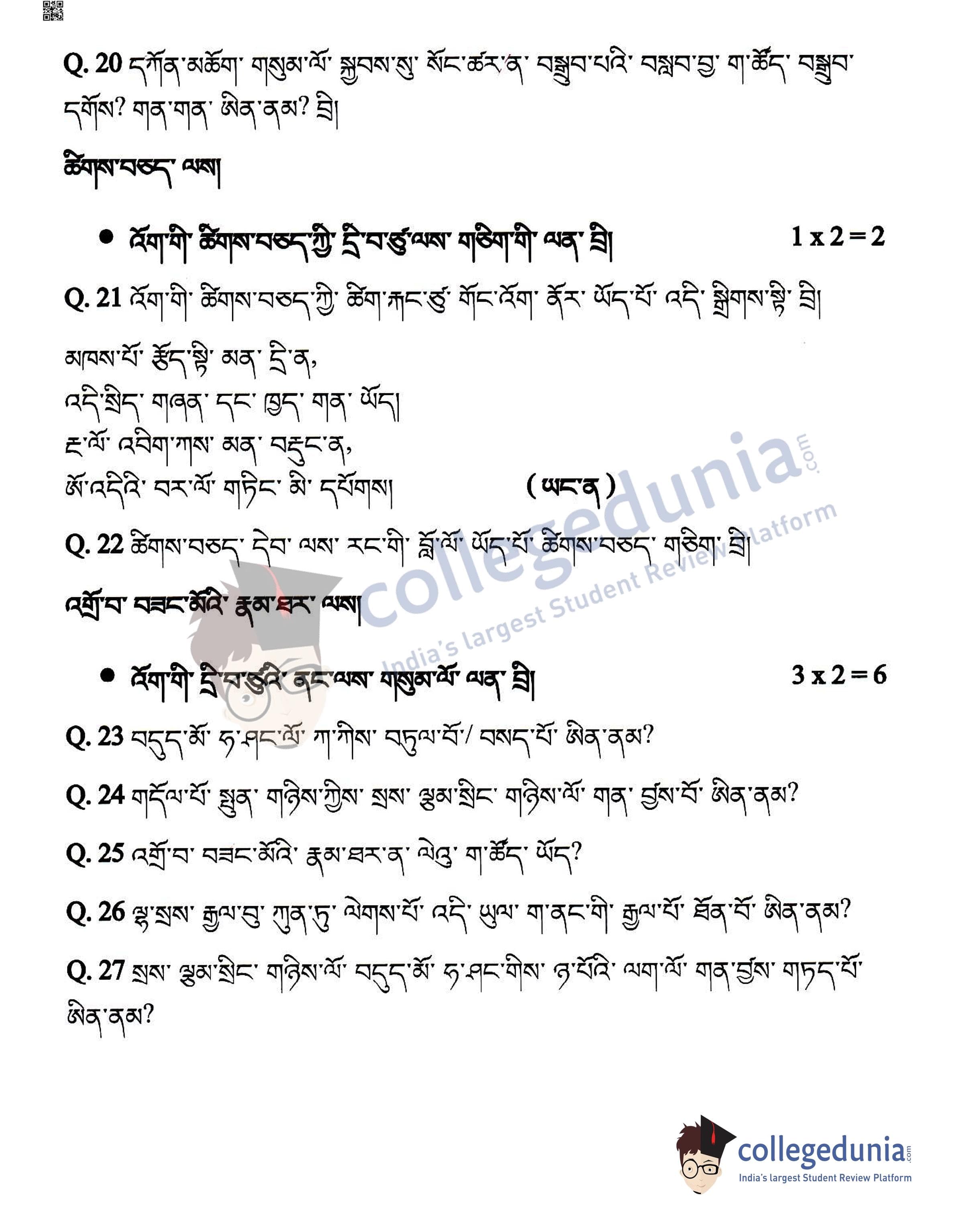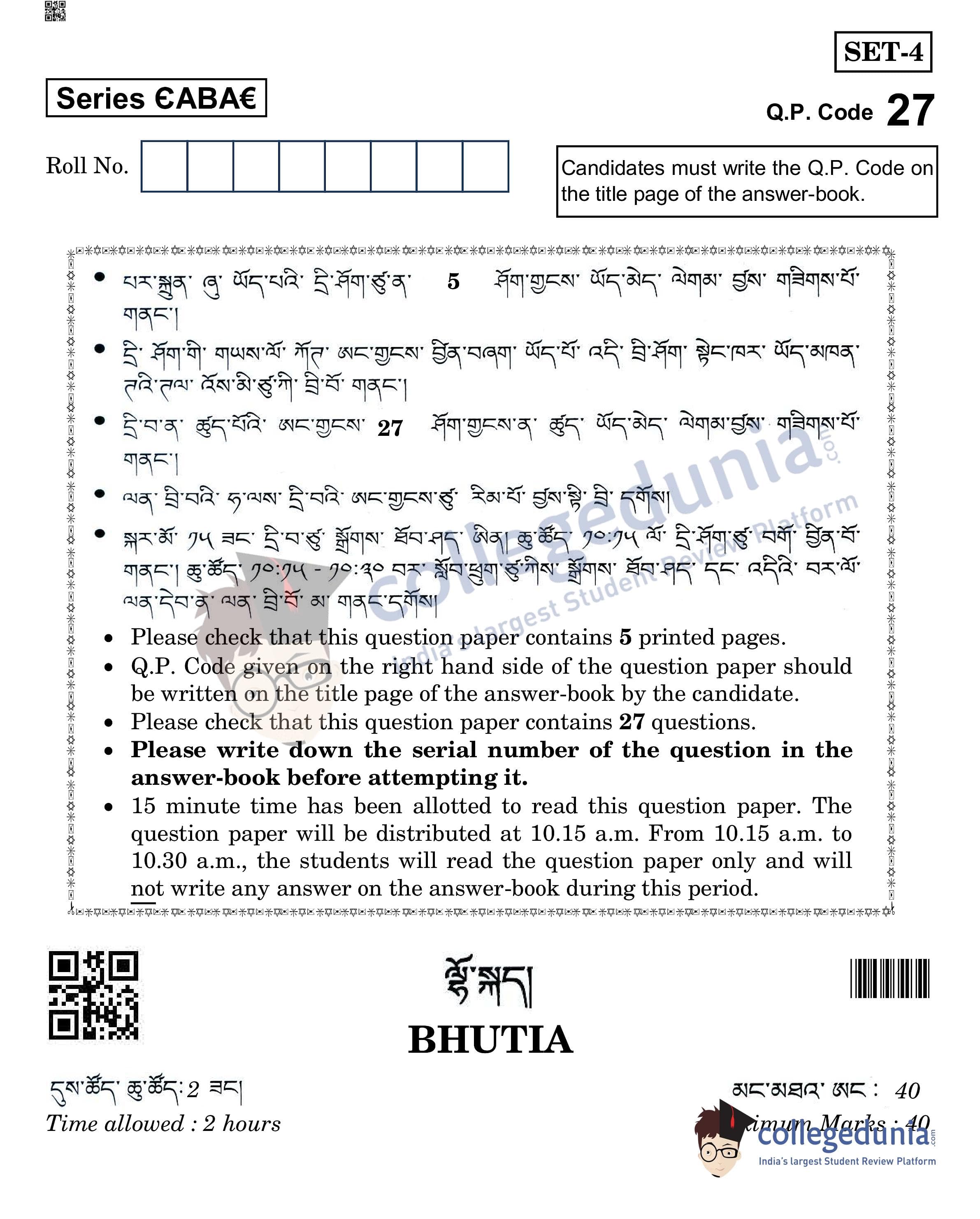 CBSE Class 12 Bhutia Question Paper 2022 with Answer Key (May 11, Set 4- Morning Session)