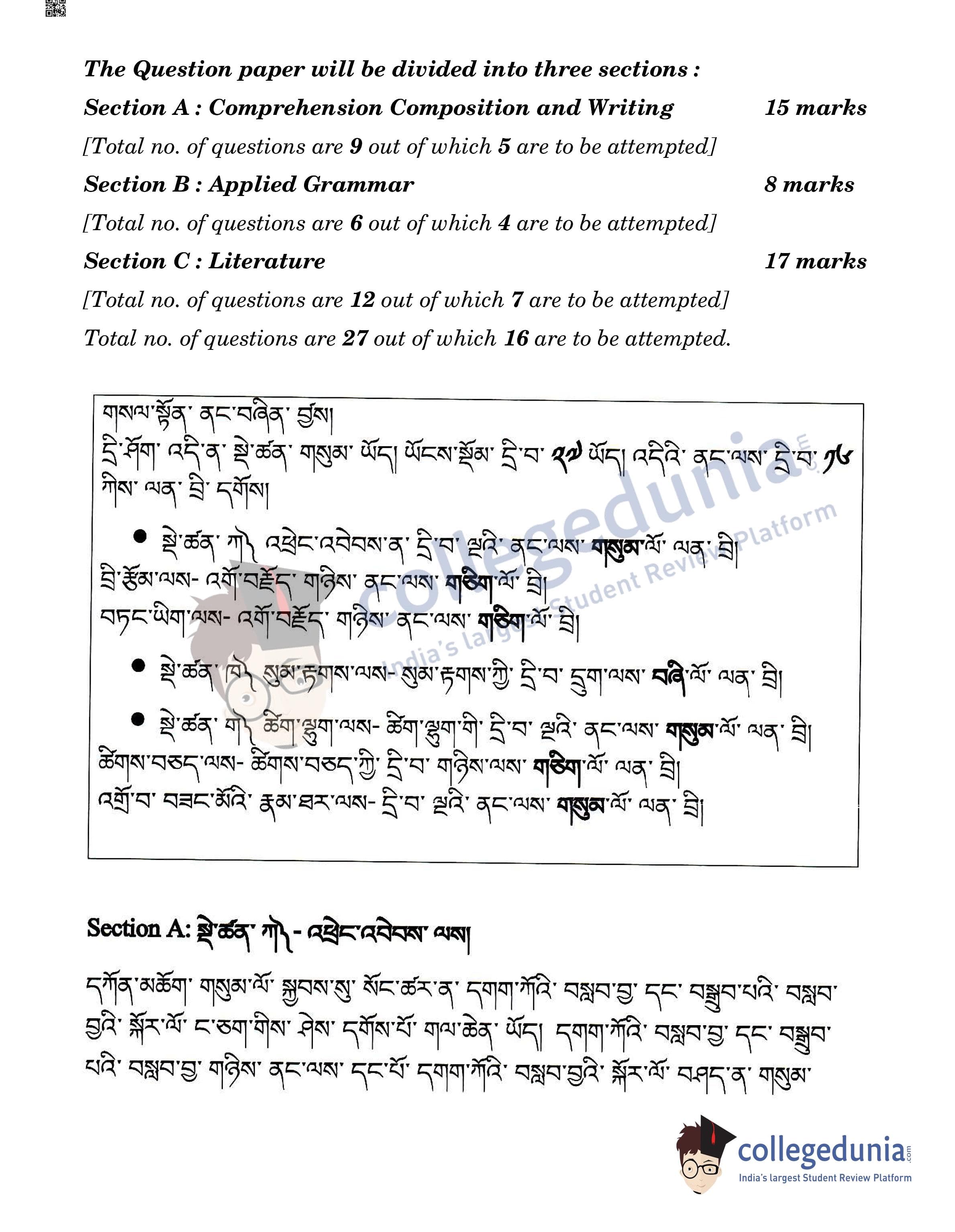 CBSE Class 12 2022 Bhutia Question Paper Set 4 with Answer Key pdf is available for download. The exam was conducted by Central Board of Secondary Education on May 11, 2022 in the Morning Session 10:30 AM to 12:30 PM. The medium of paper was Bhutia. The question paper comprised a total of 27 questions divided among 3 sections.