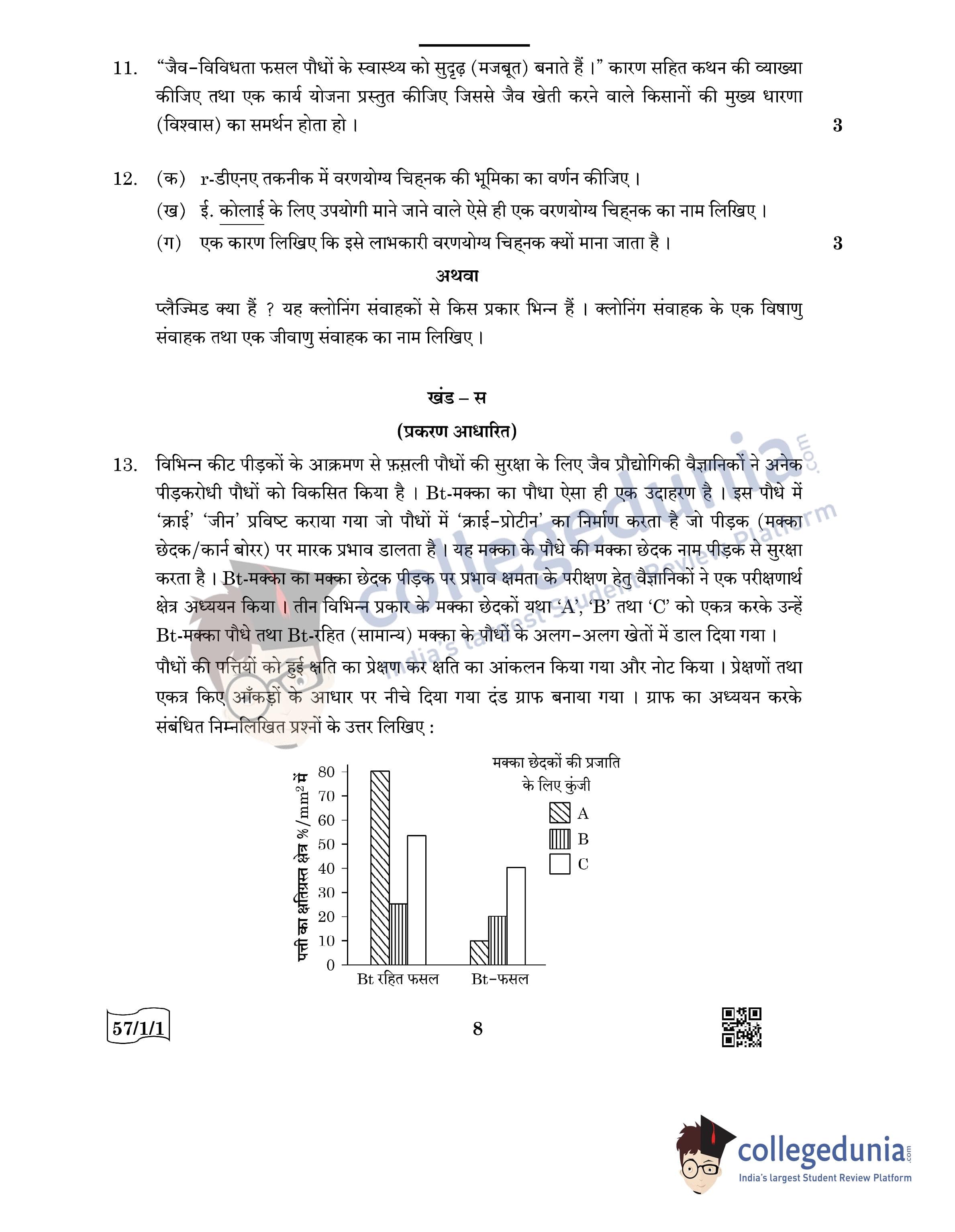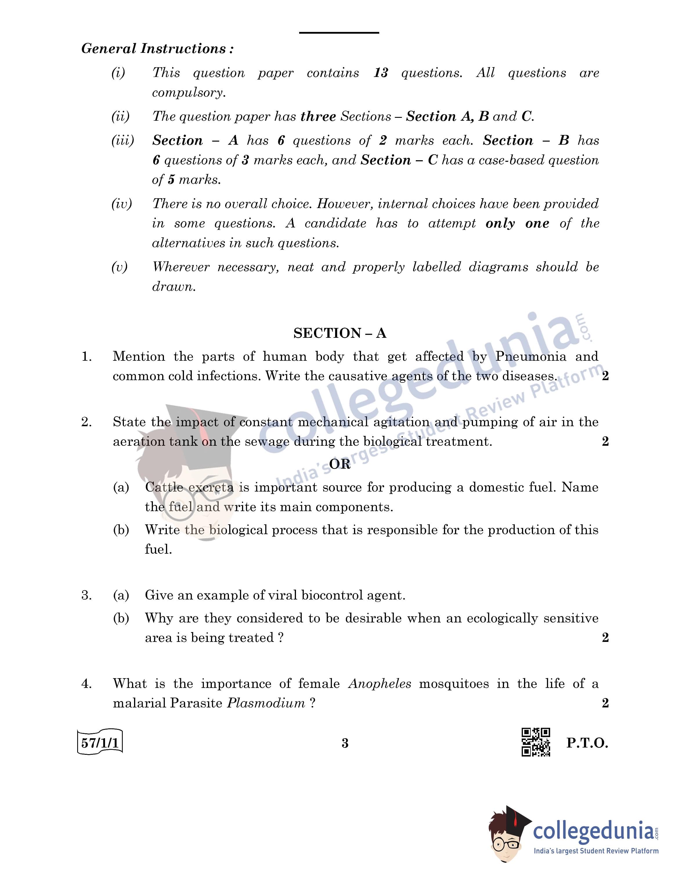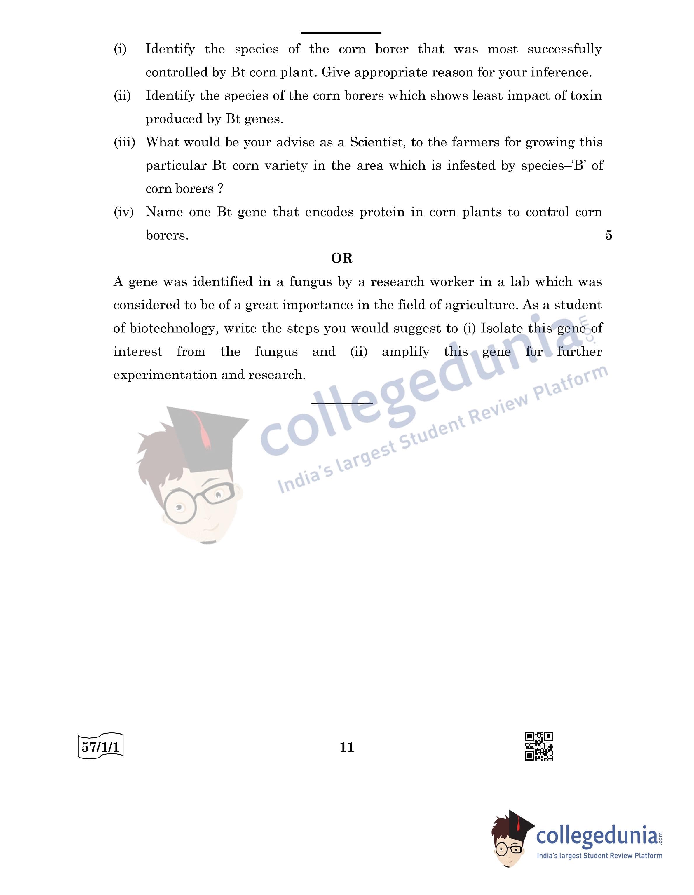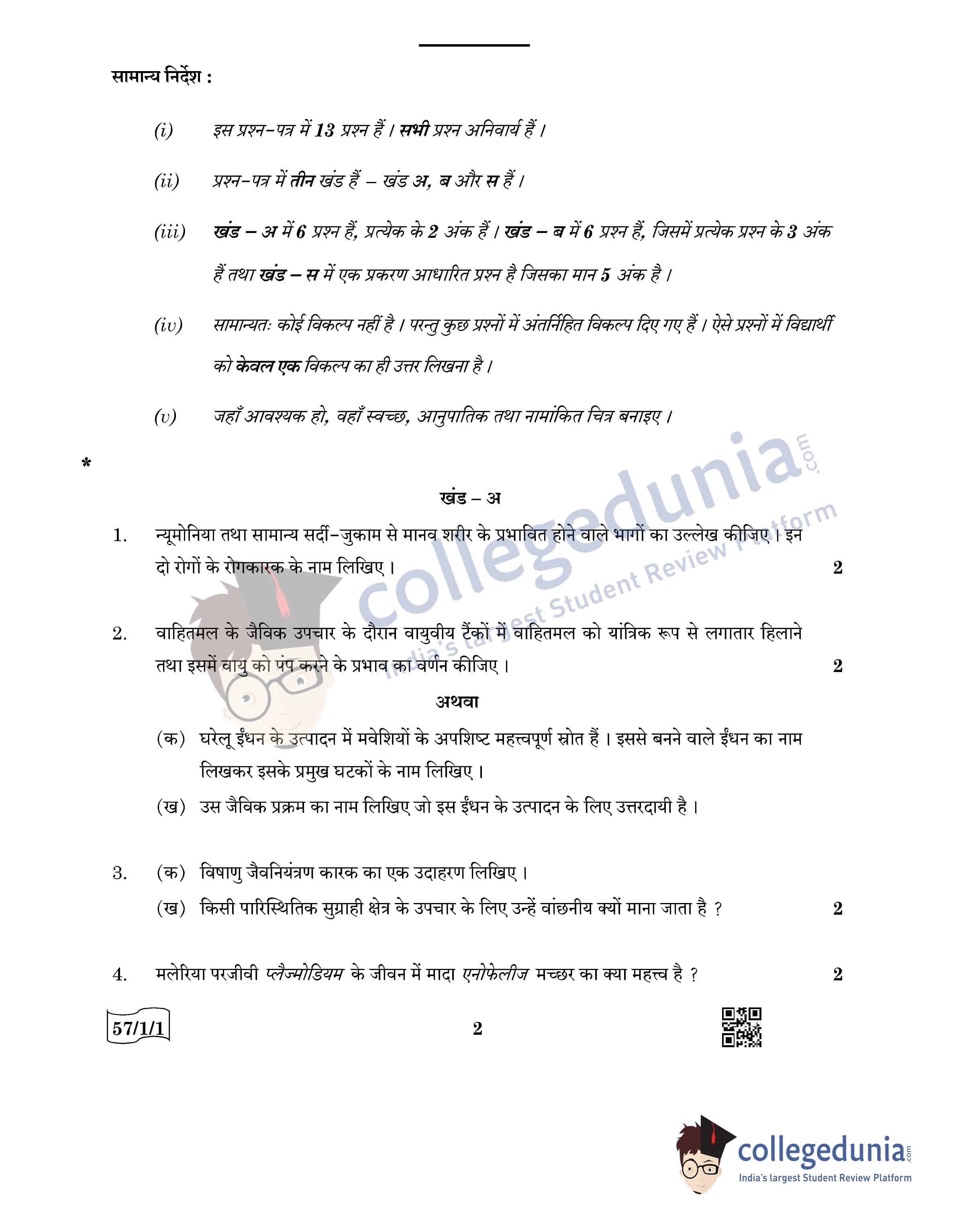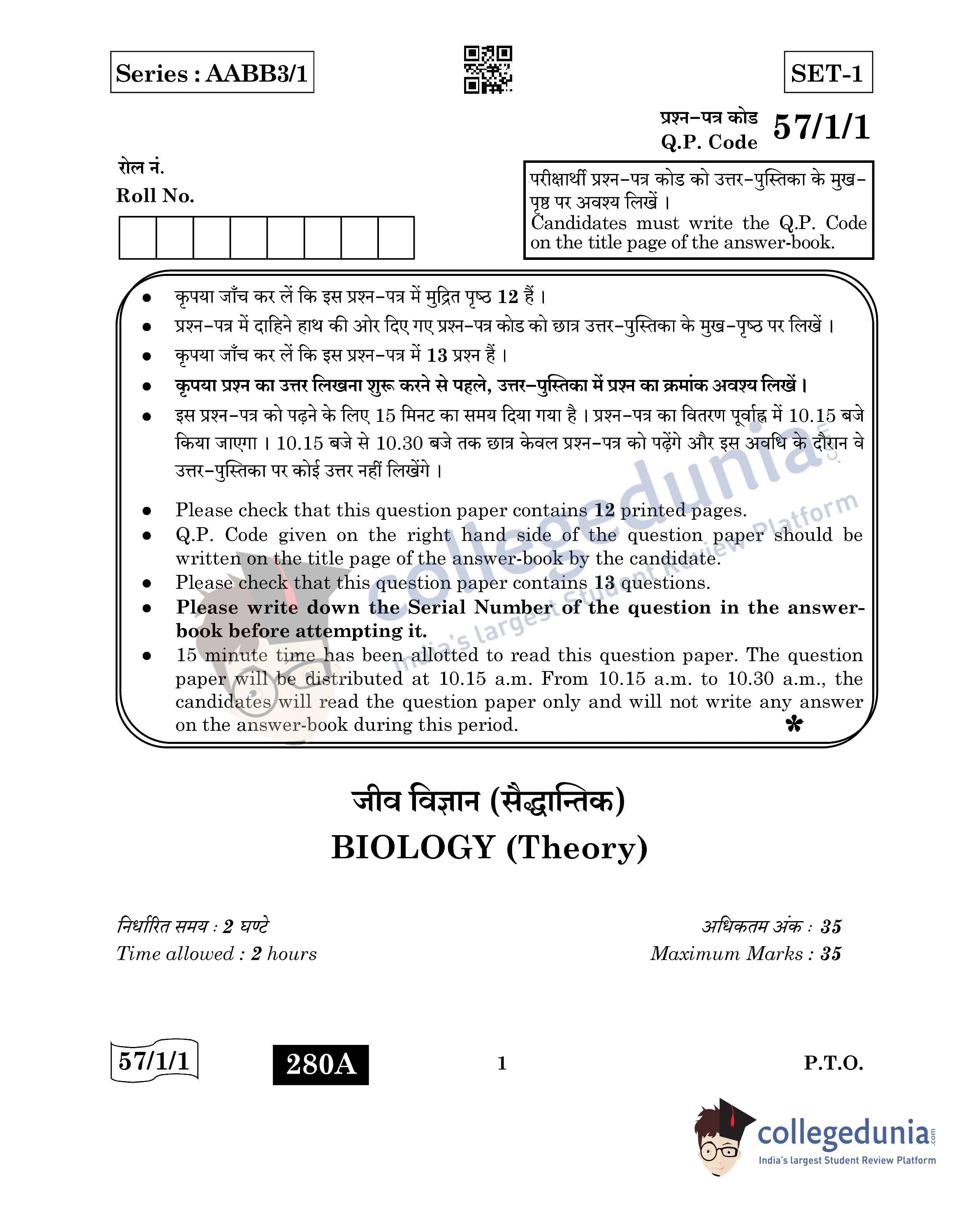 CBSE Class 12 Biology Question Paper 2022 with Answer Key (May 30, Set 1 - 57/1/1- Morning Session)