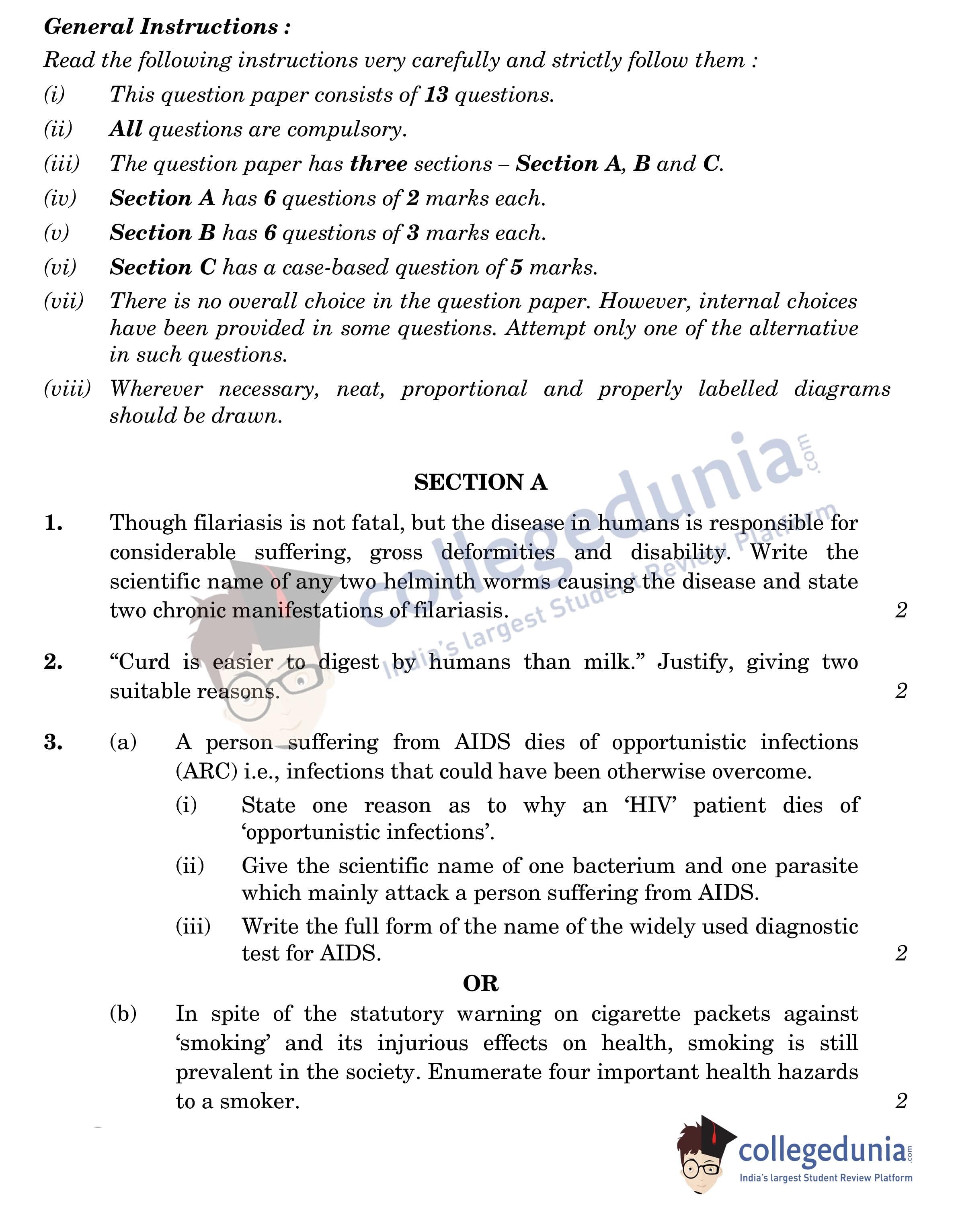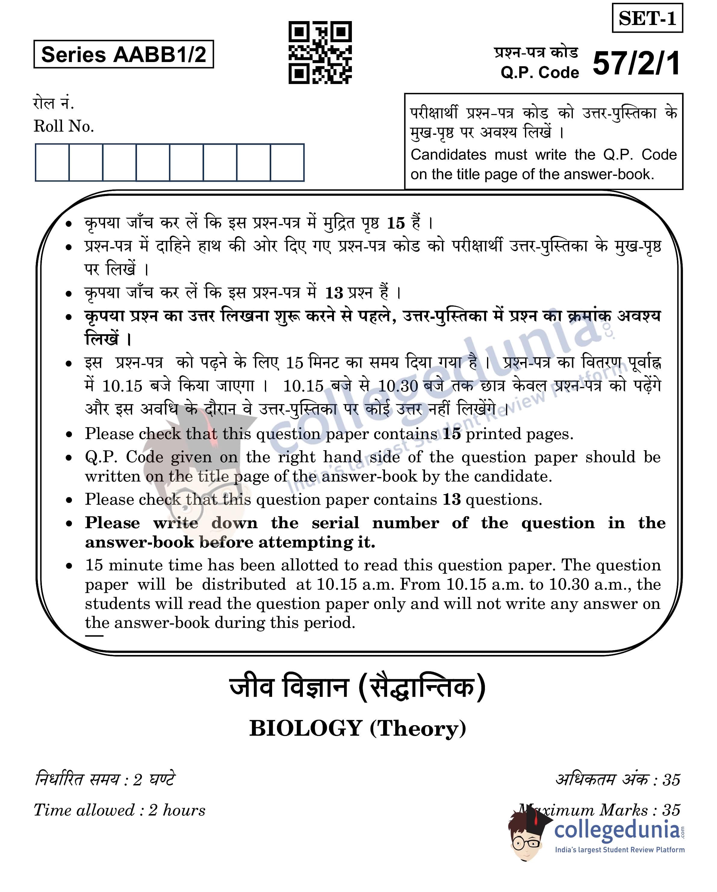 CBSE Class 12 Biology Question Paper 2022 with Answer Key (May 30, Set 1 - 57/2/1- Morning Session)