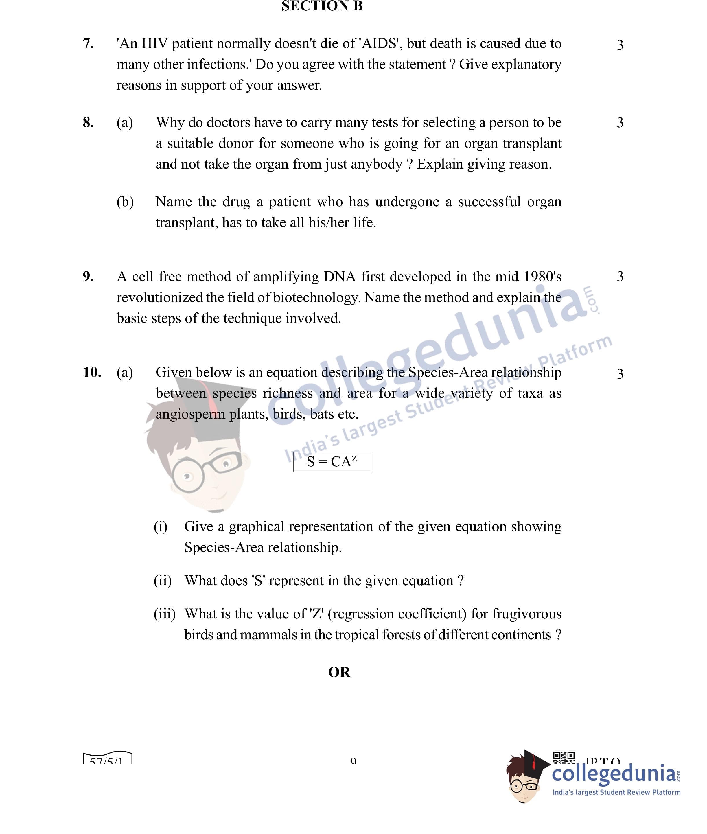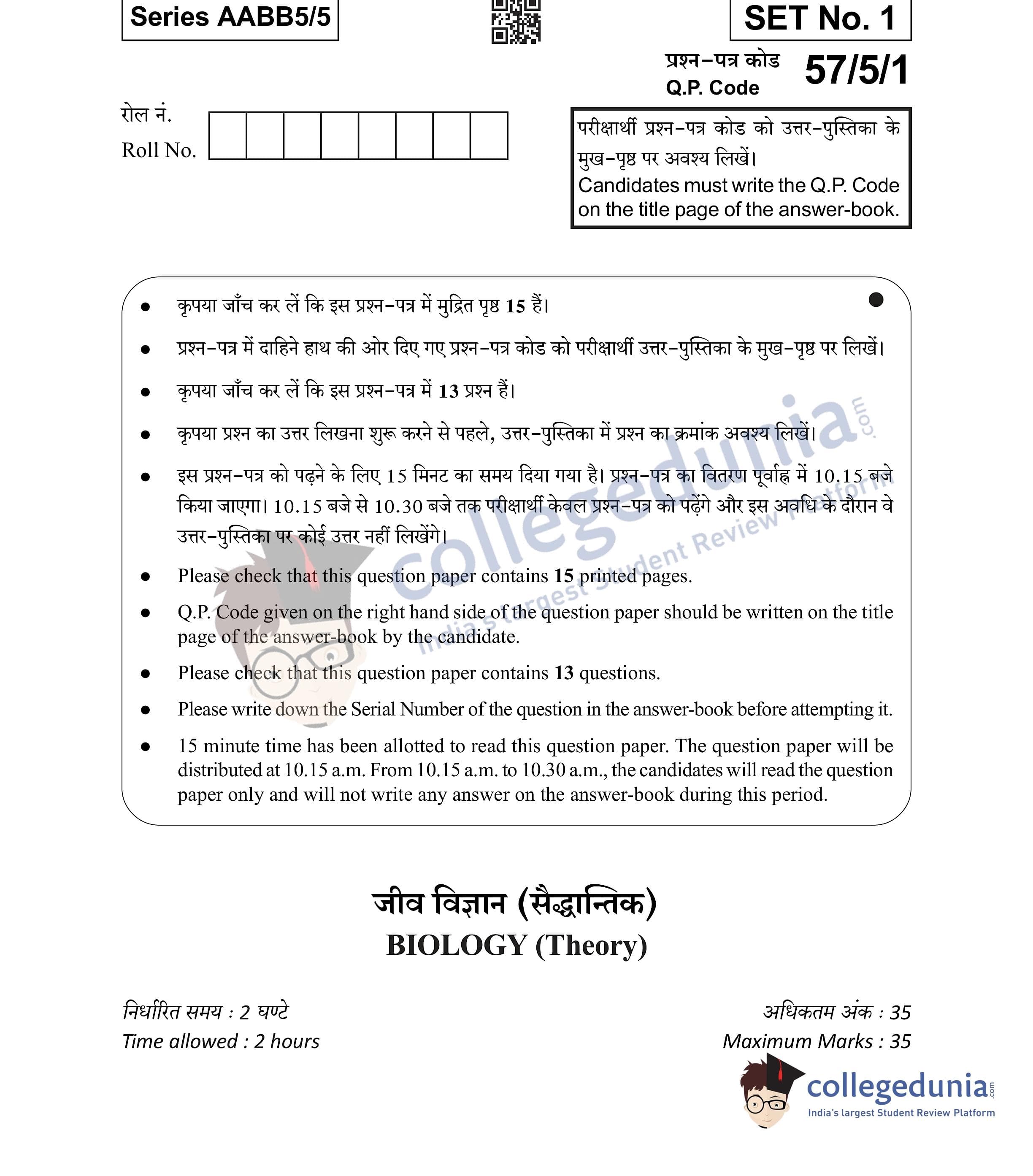 CBSE Class 12 Biology Question Paper 2022 with Answer Key (May 30, Set 1 - 57/5/1- Morning Session)