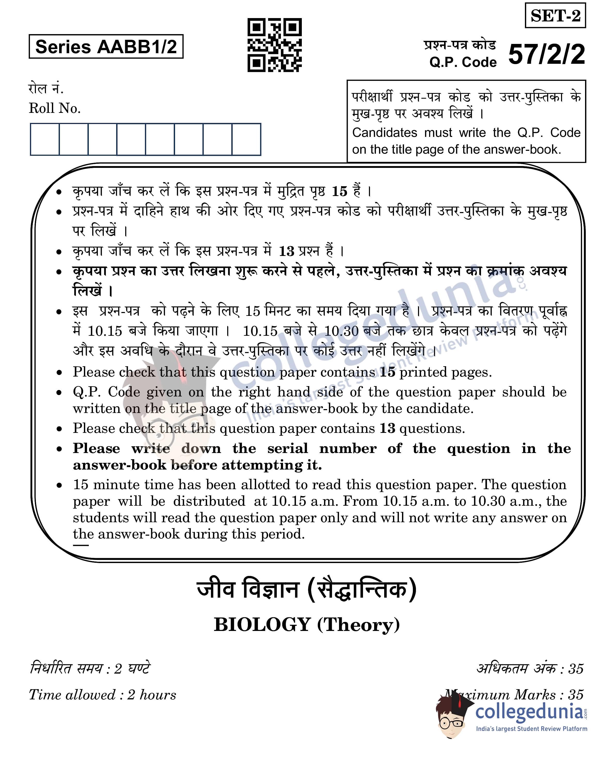 CBSE Class 12 Biology Question Paper 2022 with Answer Key (May 30, Set 2 - 57/2/2- Morning Session)