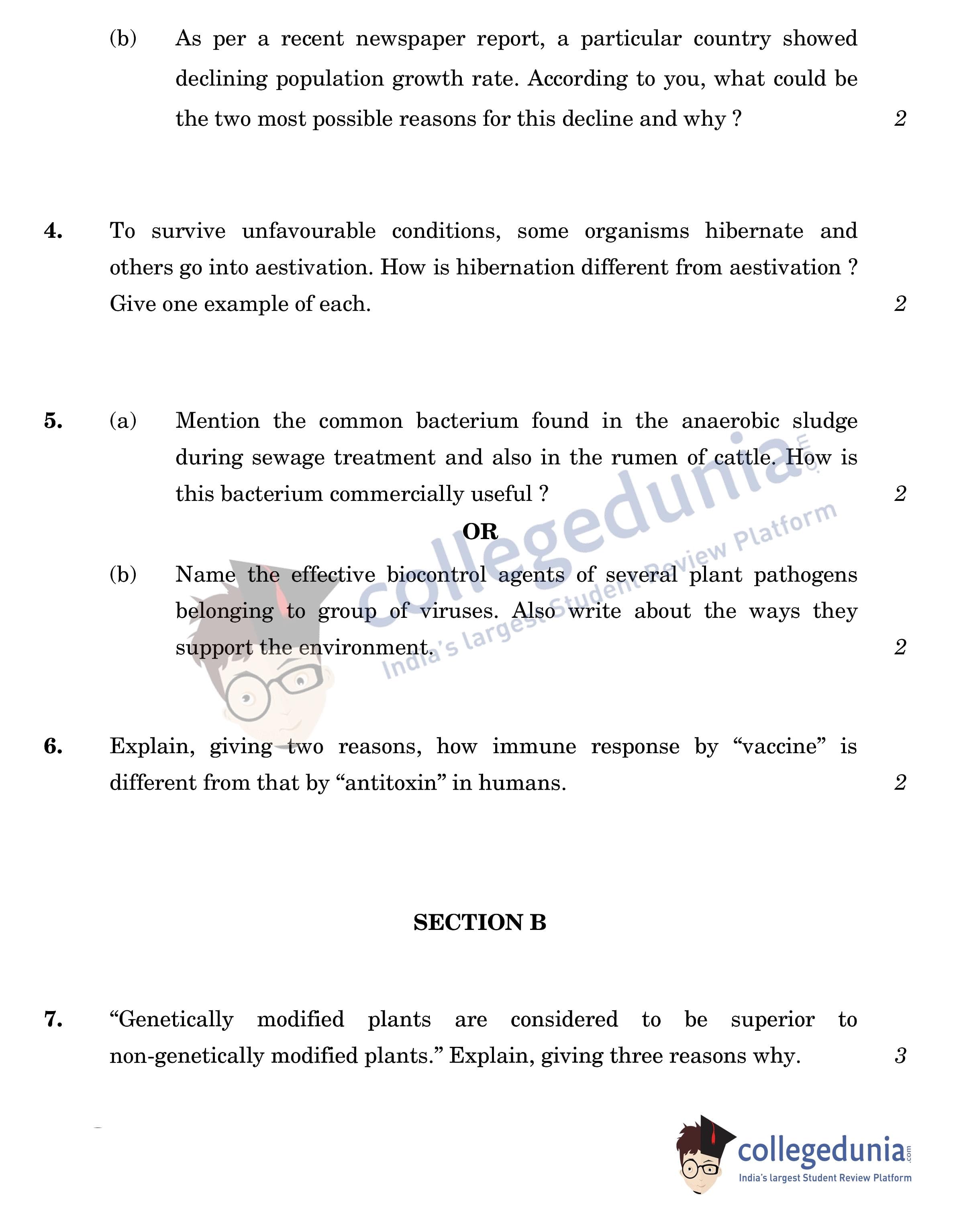 CBSE Class 12 Biology Question Paper 2022 with Answer Key (May 30, Set 2 - 57/4/2- Morning Session)