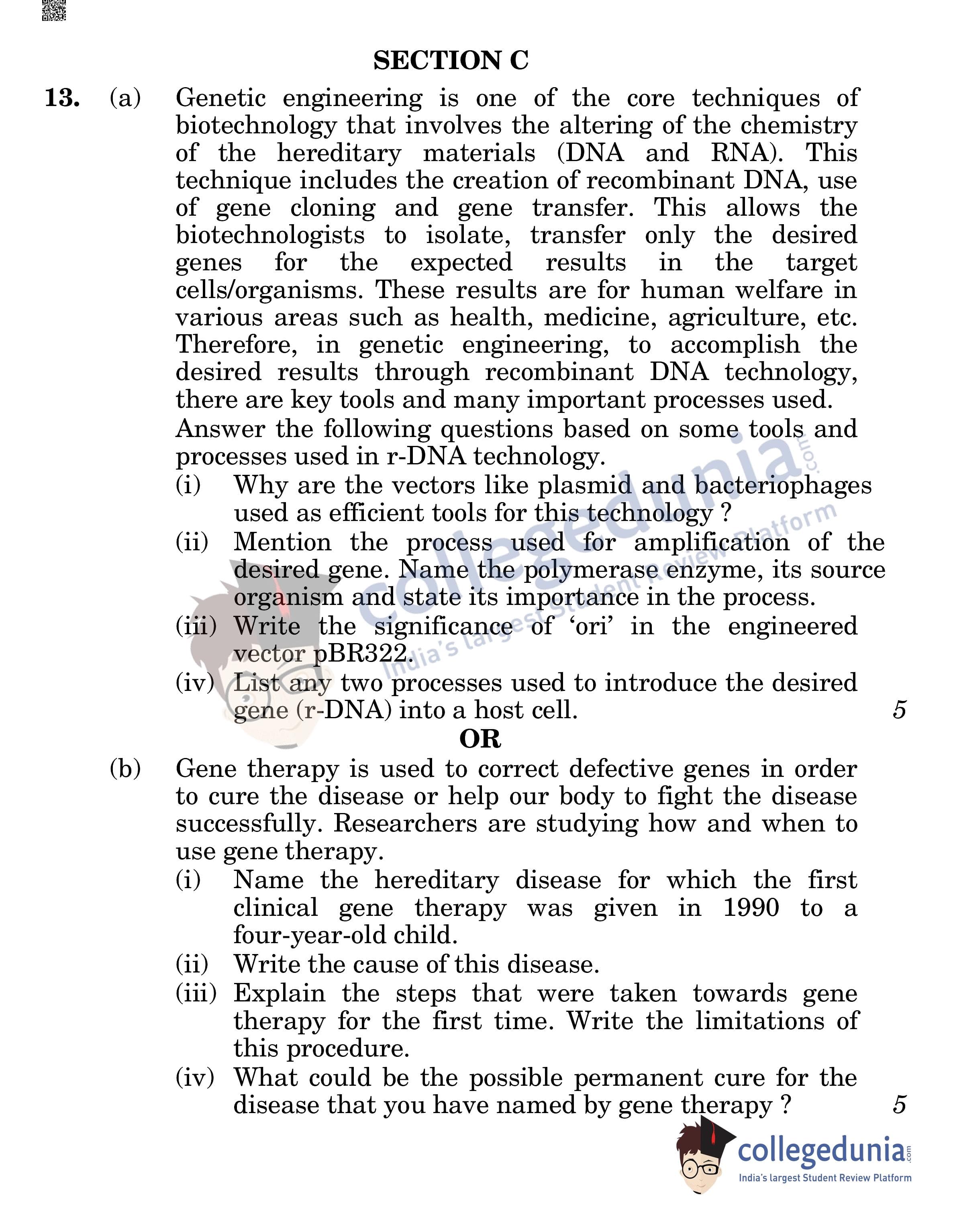 CBSE Class 12 Biology(Visually Impaired) Question Paper 2022 with Answer Key (May 30, Set 5 - 57/B/5- Morning Session)