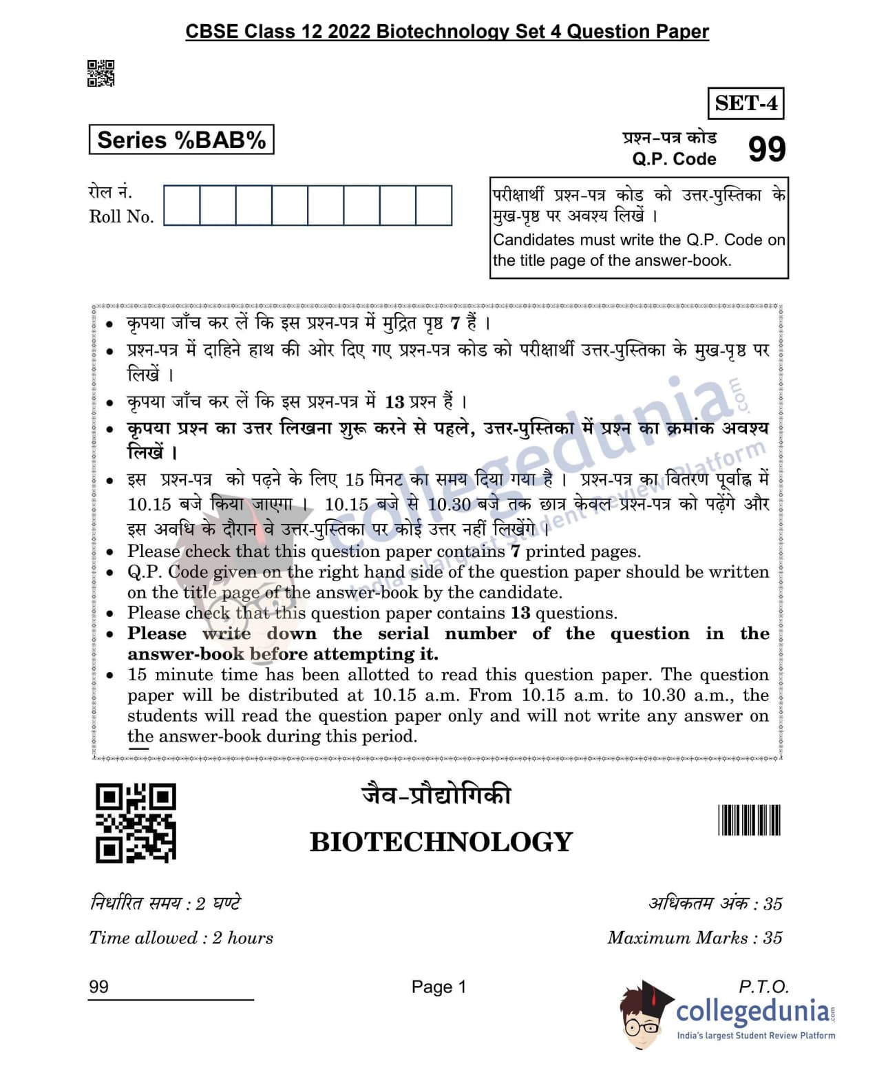 | CBSE Class 12 2022 Biotechnology Question Paper PDF | CBSE Class 12 2022 Biotechnology Answer Key PDF |