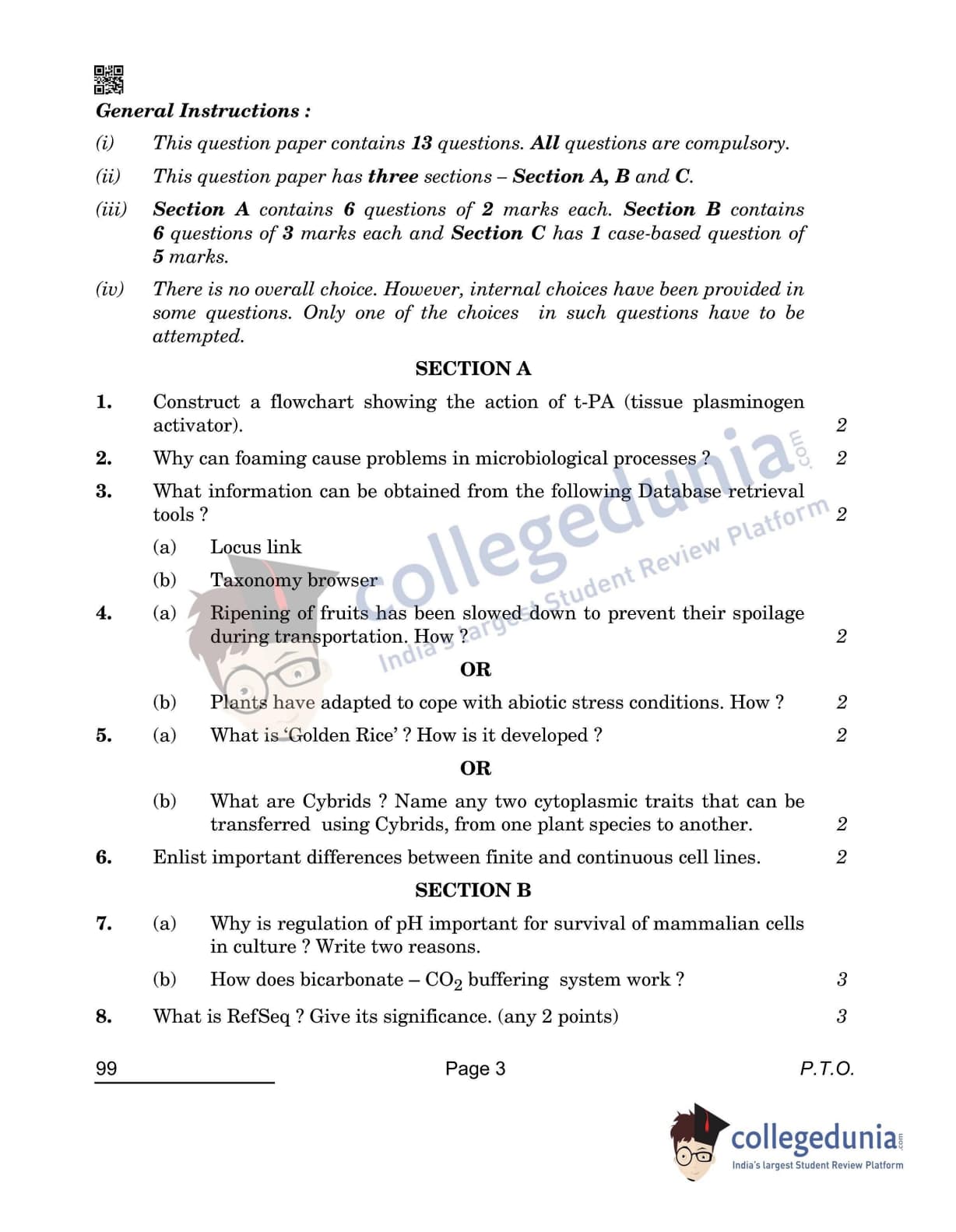 CBSE Class 12 2022 Biotechnology Question Paper Set 4 with Answer Key pdf is available for download. The exam was conducted by Central Board of Secondary Education on April 28, 2022 in the Morning Session 10:30 AM to 12:30 PM. The medium of paper was English & Hindi. The question paper comprised a total of 13 questions divided among 3 sections.