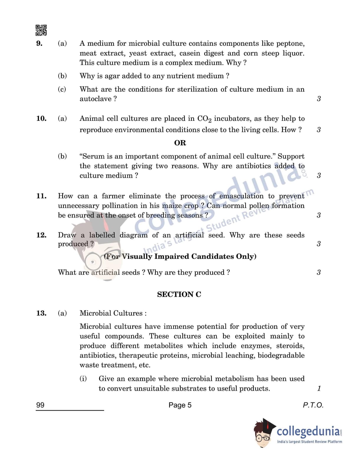 CBSE Class 12 Biotechnology Question Paper 2022 with Answer Key (April 28, Set 4- Morning Session)