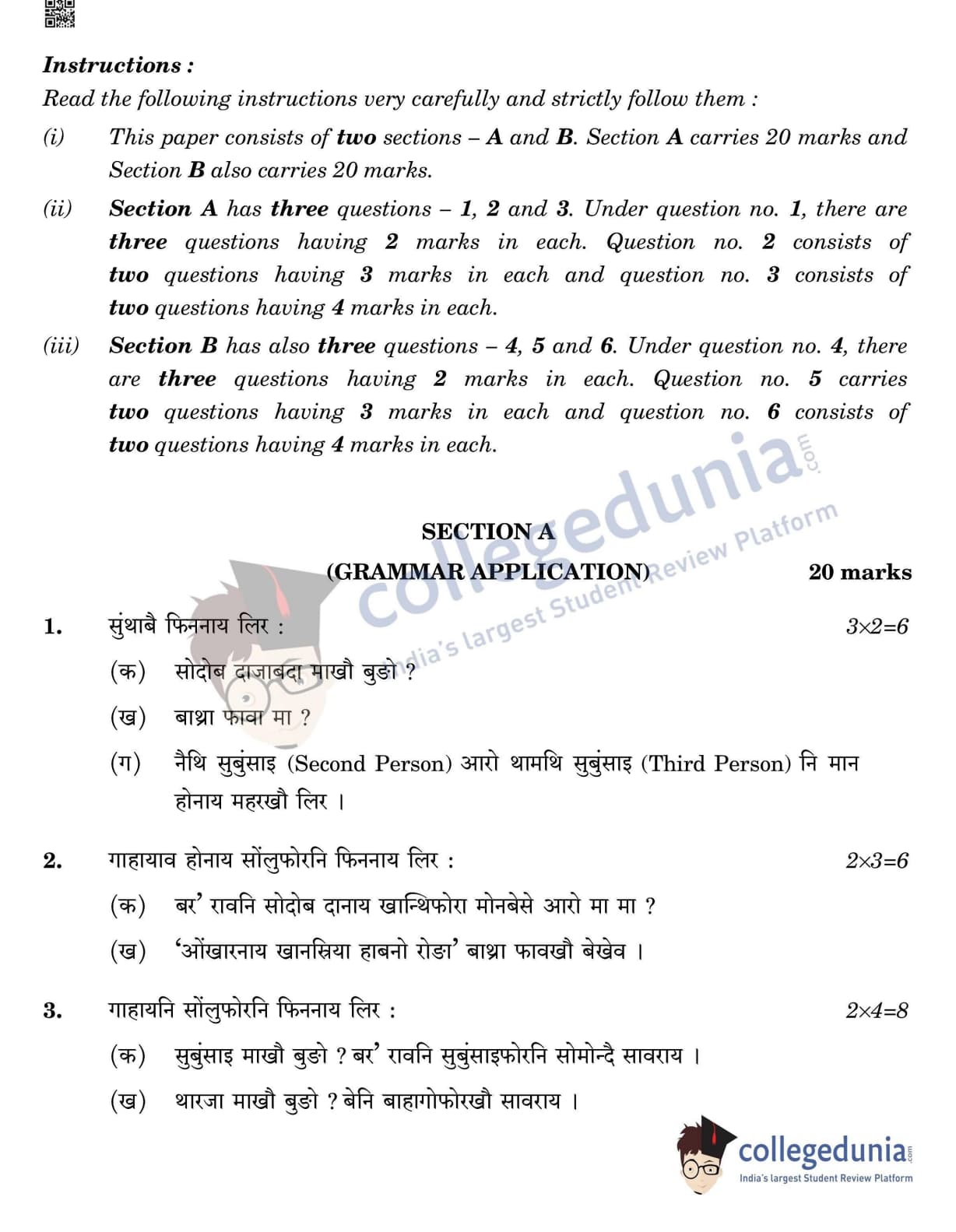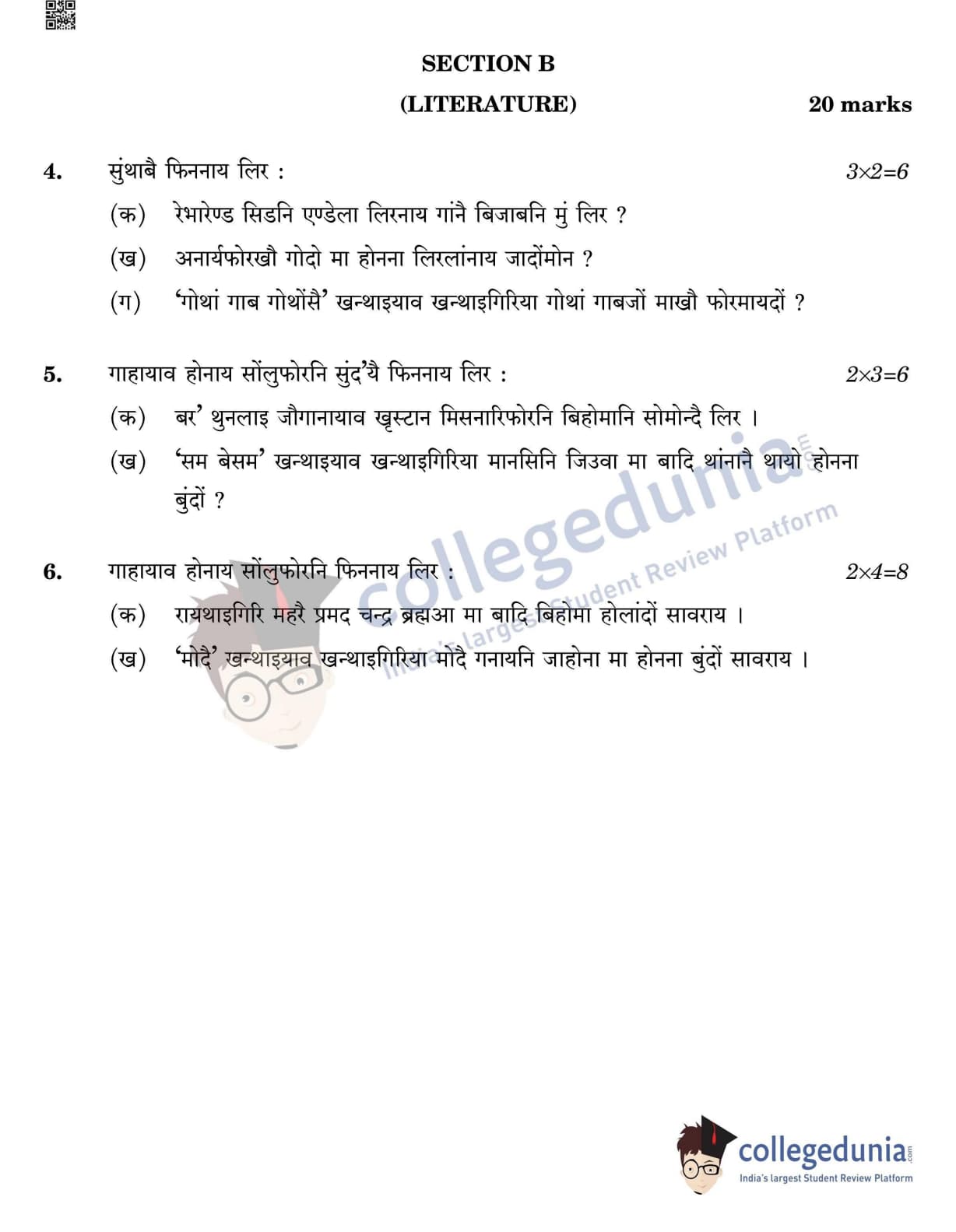 CBSE Class 12 Bodo Question Paper 2022 with Answer Key (May 11, Set 4- Morning Session)