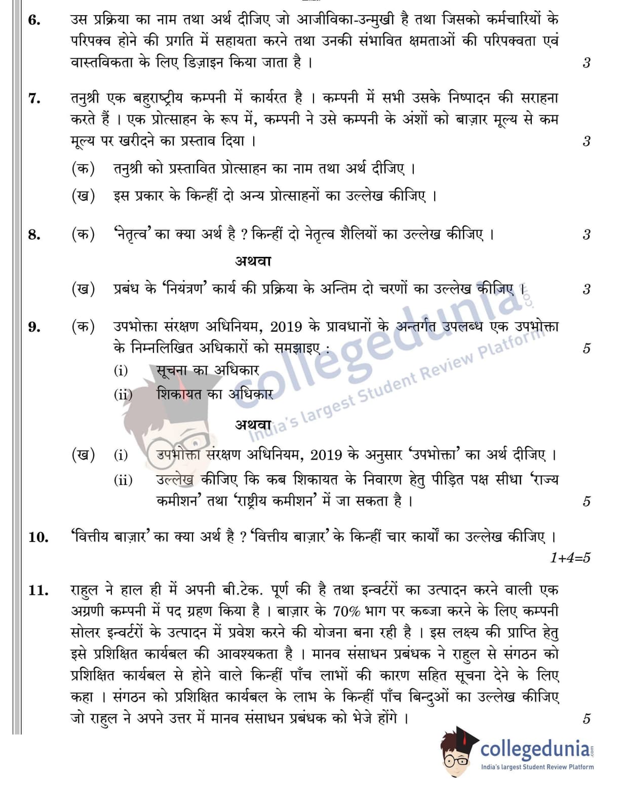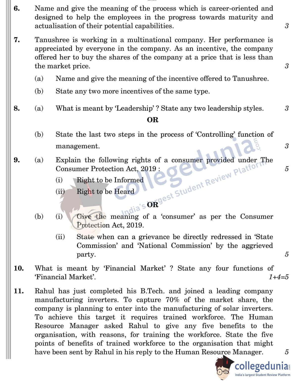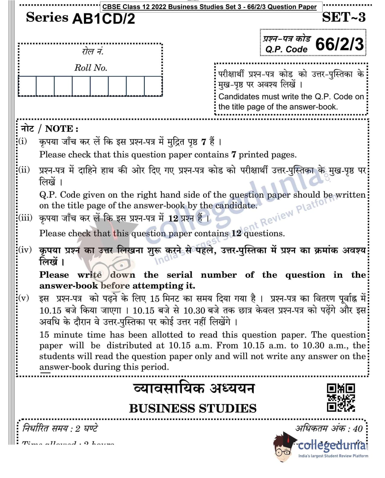 CBSE Class 12 Business Studies Question Paper 2022 with Answer Key (May 17, Set 3 - 66/2/3- Morning Session)
