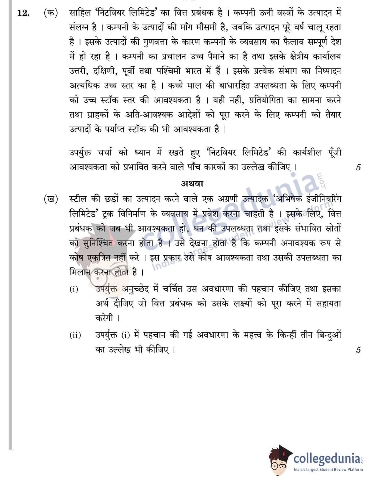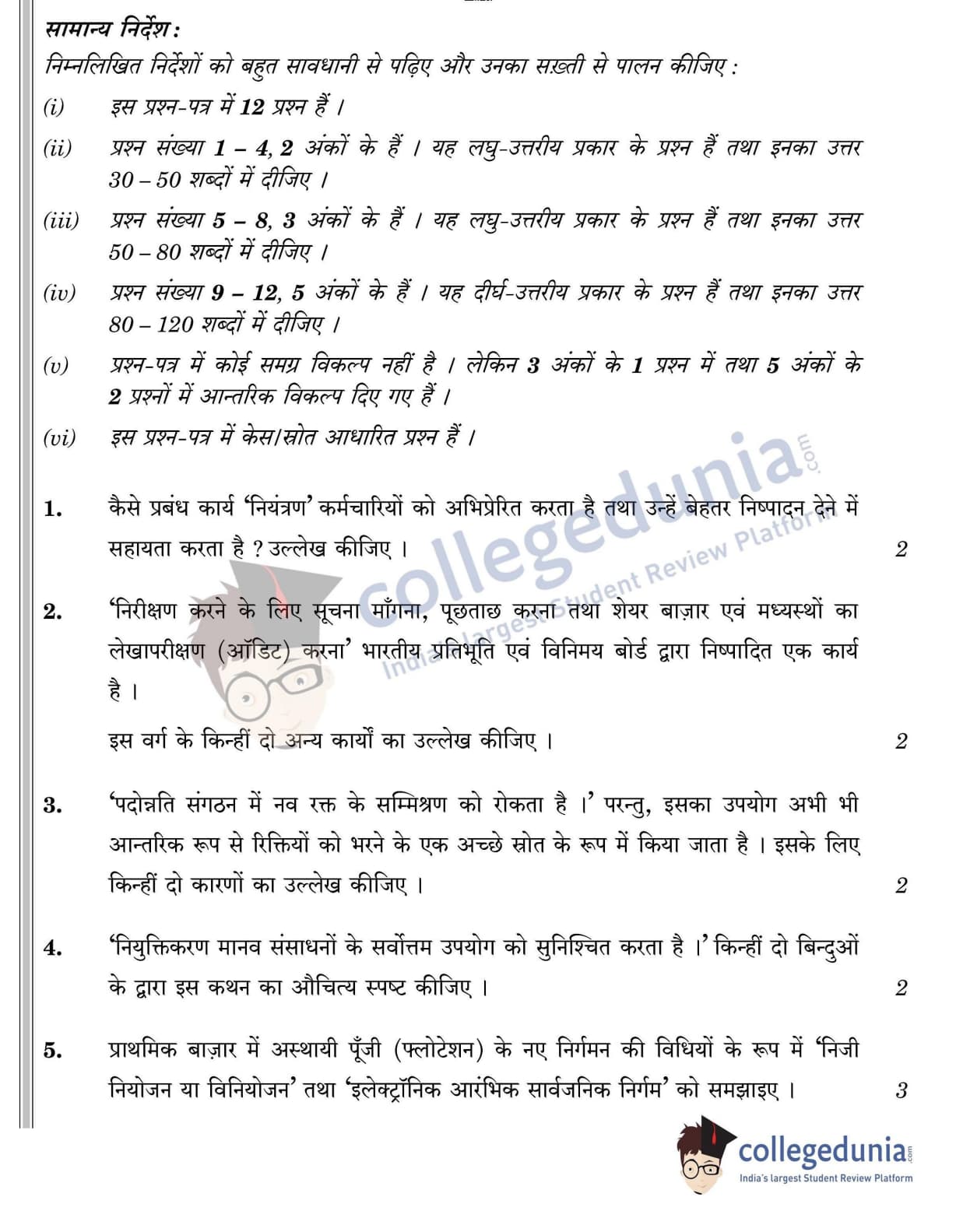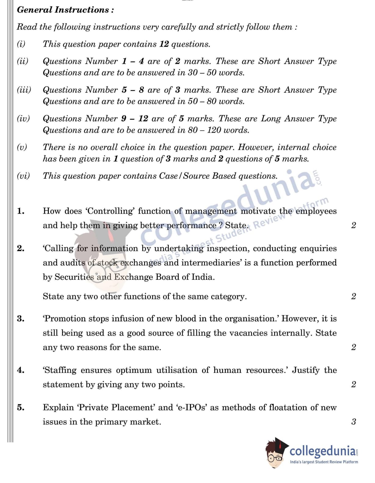 CBSE Class 12 Business Studies Question Paper 2022 with Answer Key (May 17, Set 3 - 66/2/3- Morning Session)