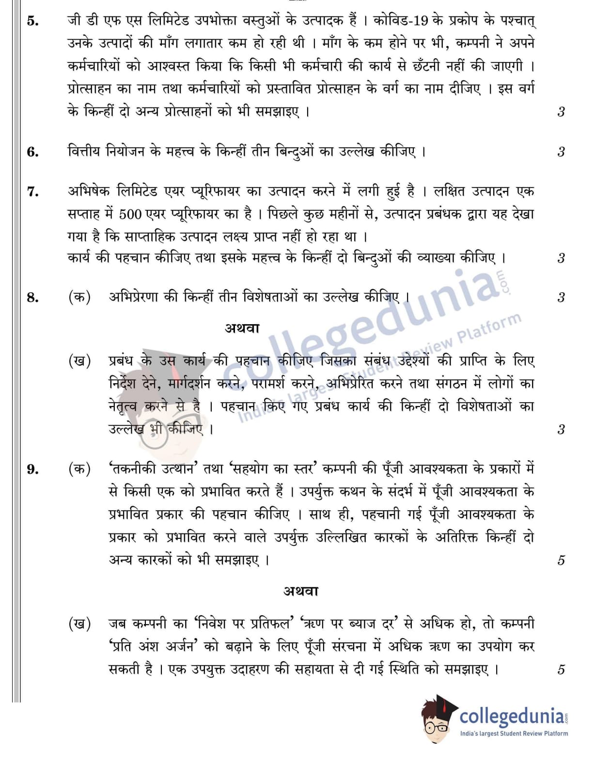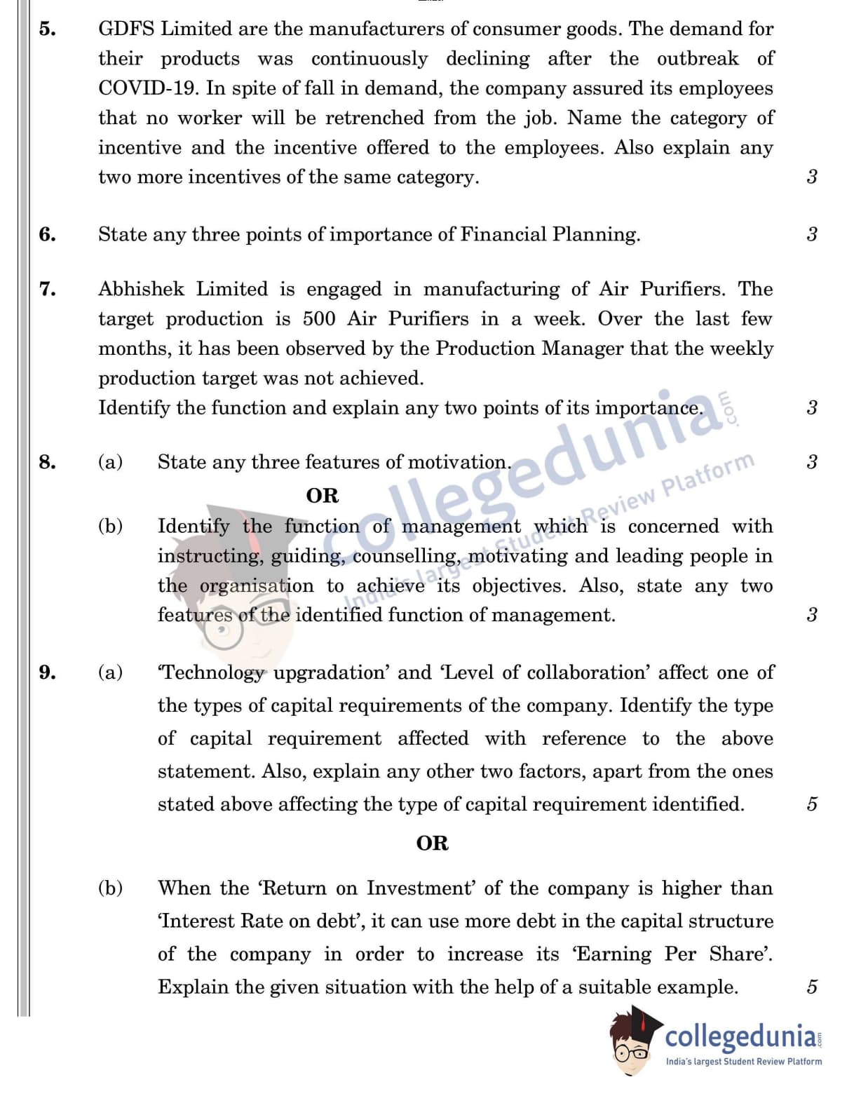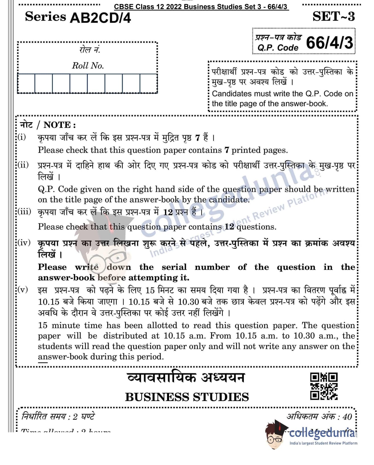 CBSE Class 12 Business Studies Question Paper 2022 with Answer Key (May 17, Set 3 - 66/4/3- Morning Session)
