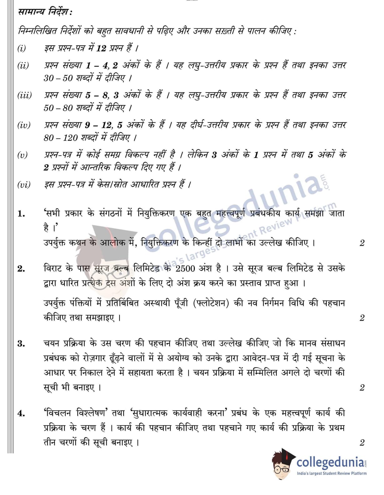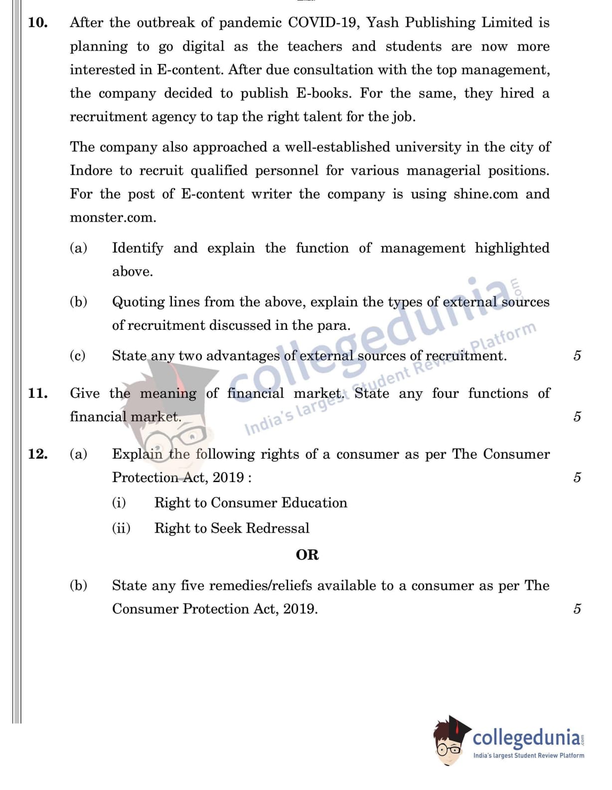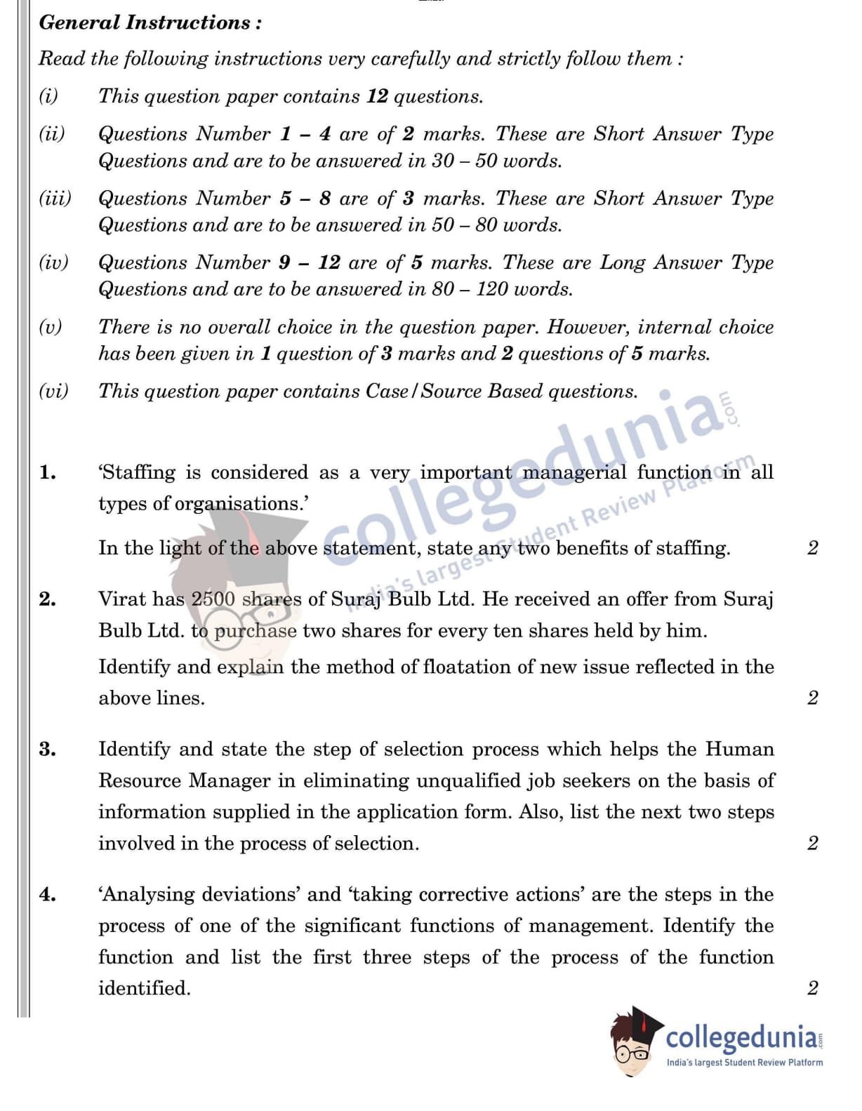 CBSE Class 12 Business Studies Question Paper 2022 with Answer Key (May 17, Set 3 - 66/4/3- Morning Session)