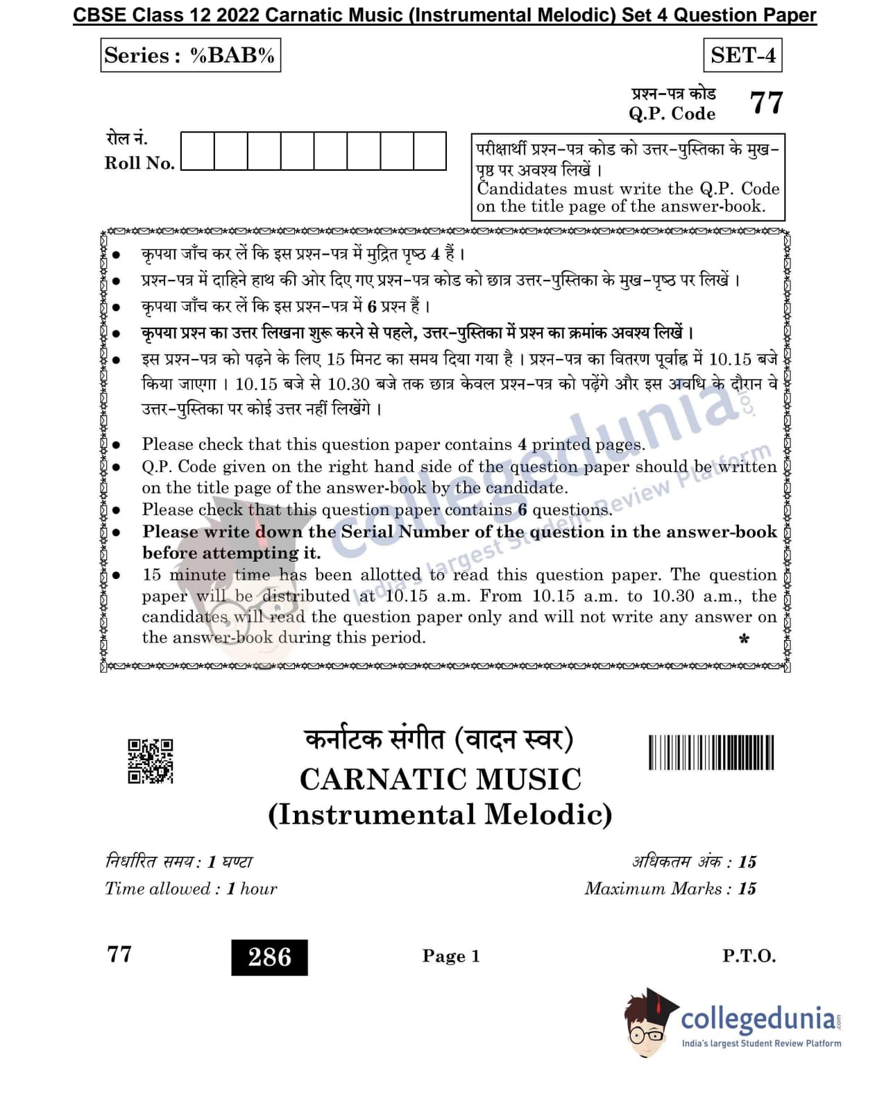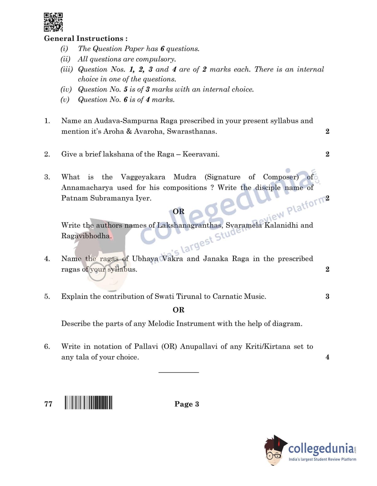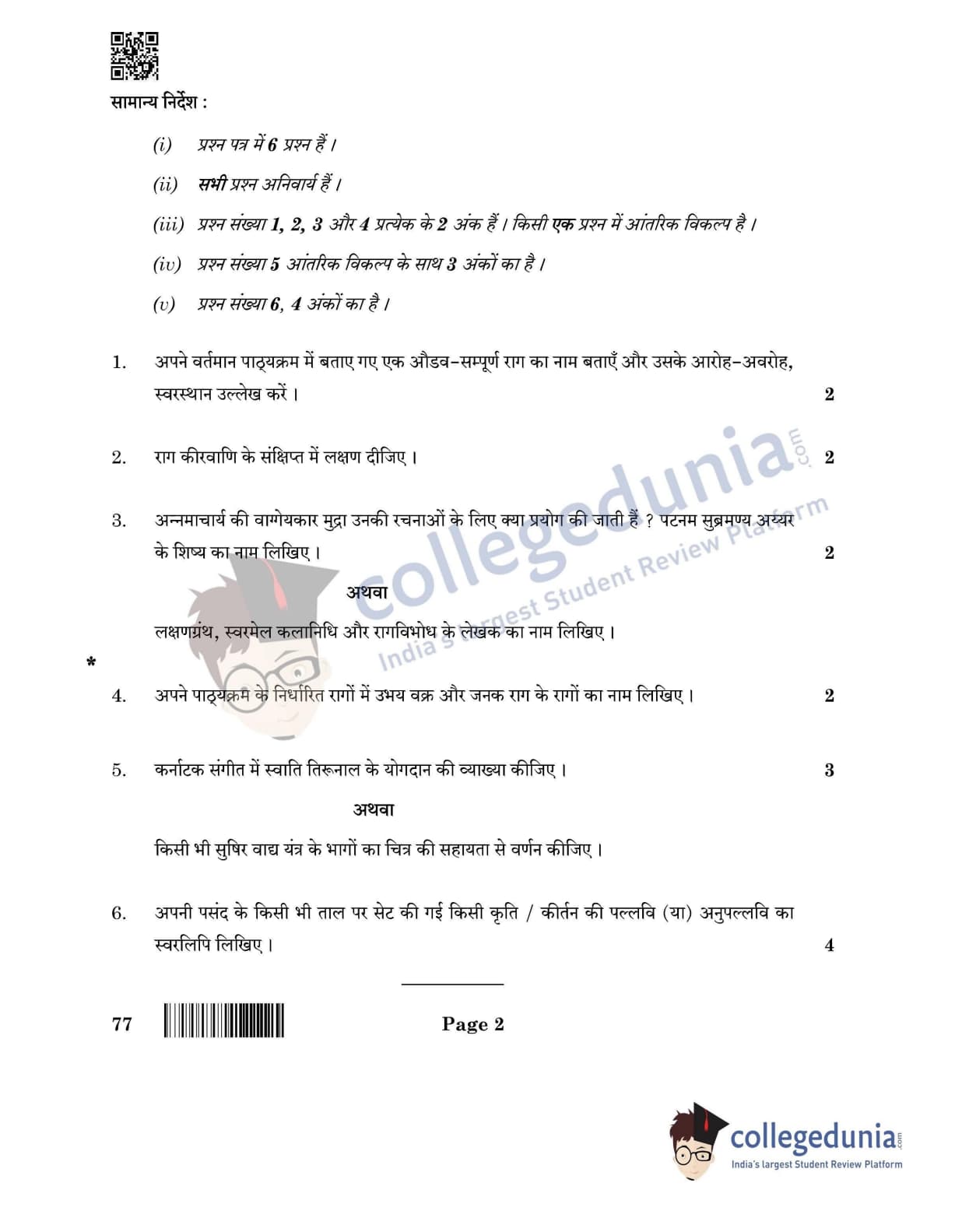 CBSE Class 12 Carnatic Music (Instrumental Melodic) Question Paper 2022 with Answer Key (May 31, Set 4- Morning Session)