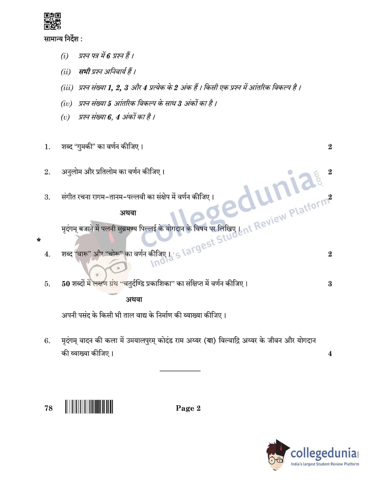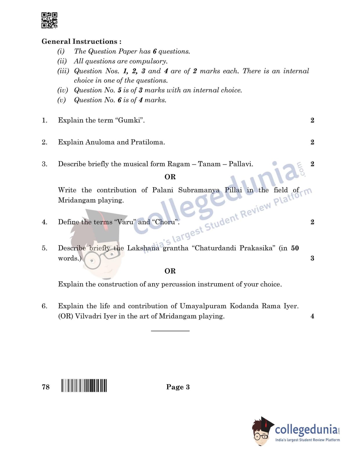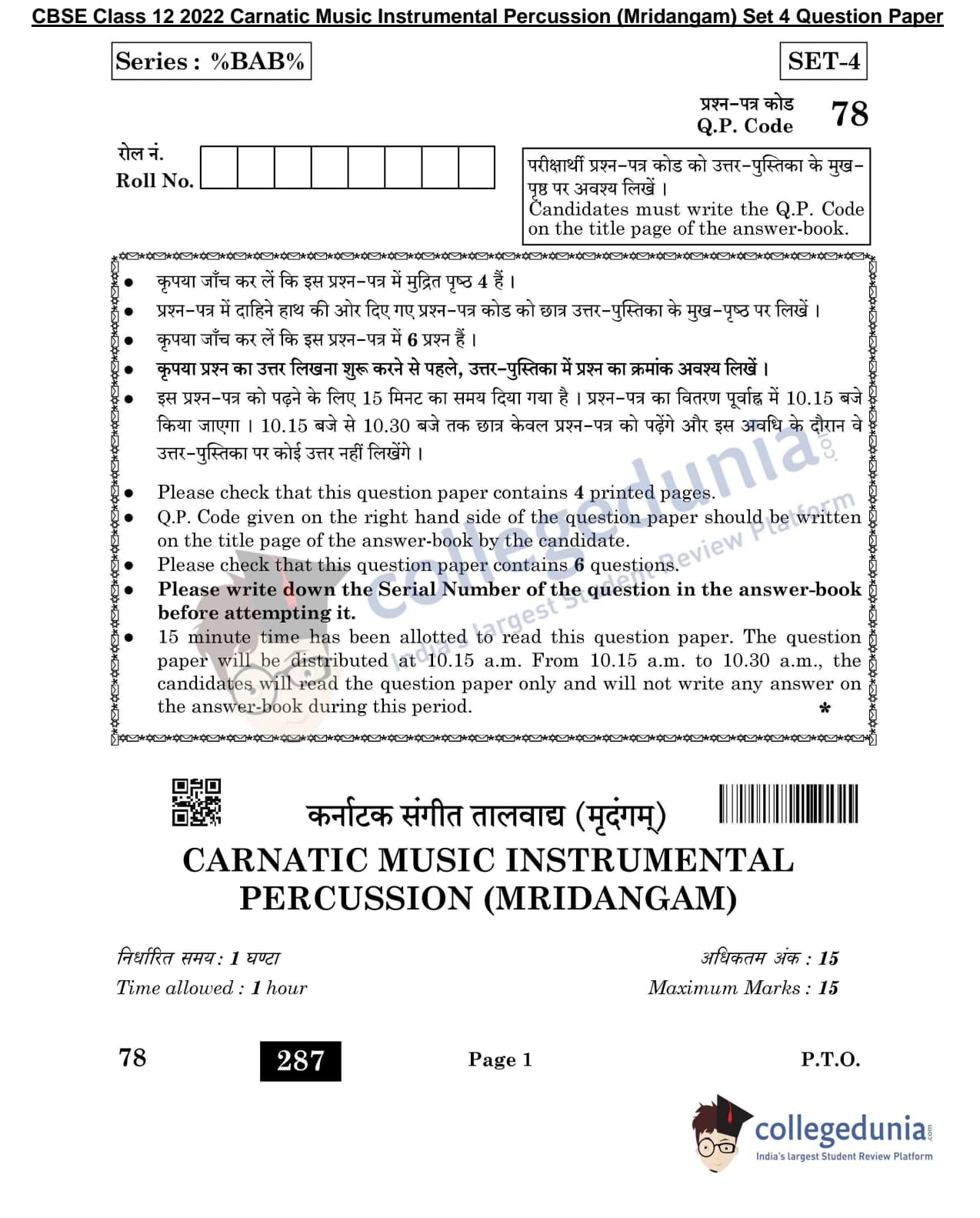 CBSE Class 12 Carnatic Music Instrumental Percussion (Mridangam) Question Paper 2022 with Answer Key (May 31, Set 4- Morning Session)