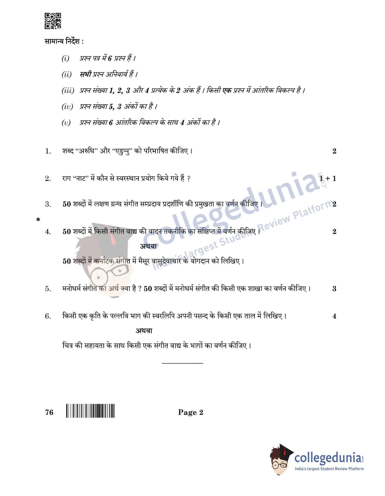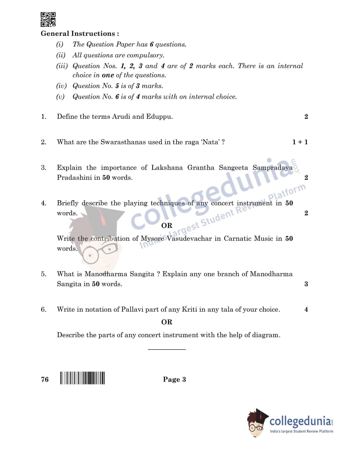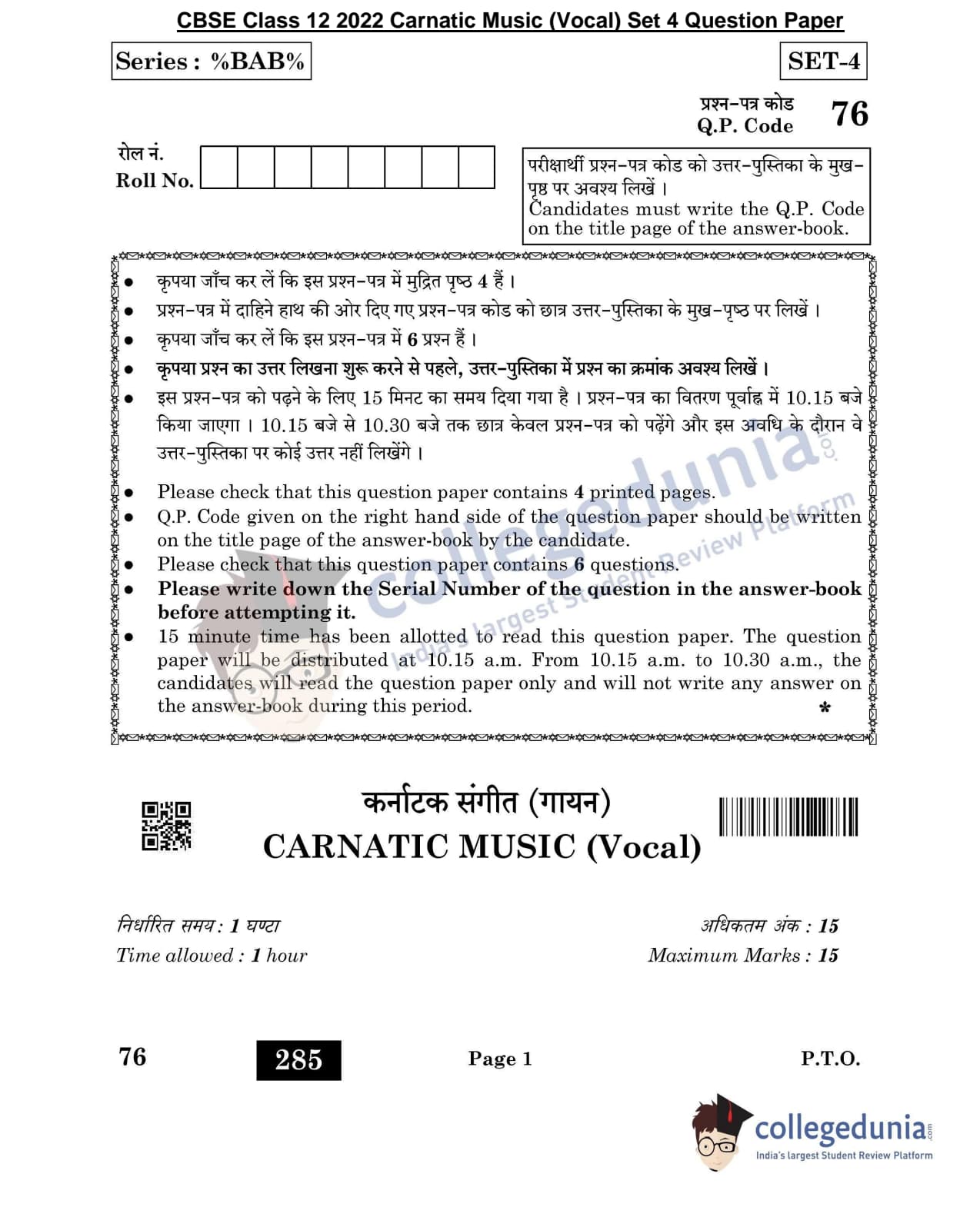 CBSE Class 12 Carnatic Music Vocal Question Paper 2022 with Answer Key (May 31, Set 4- Morning Session)