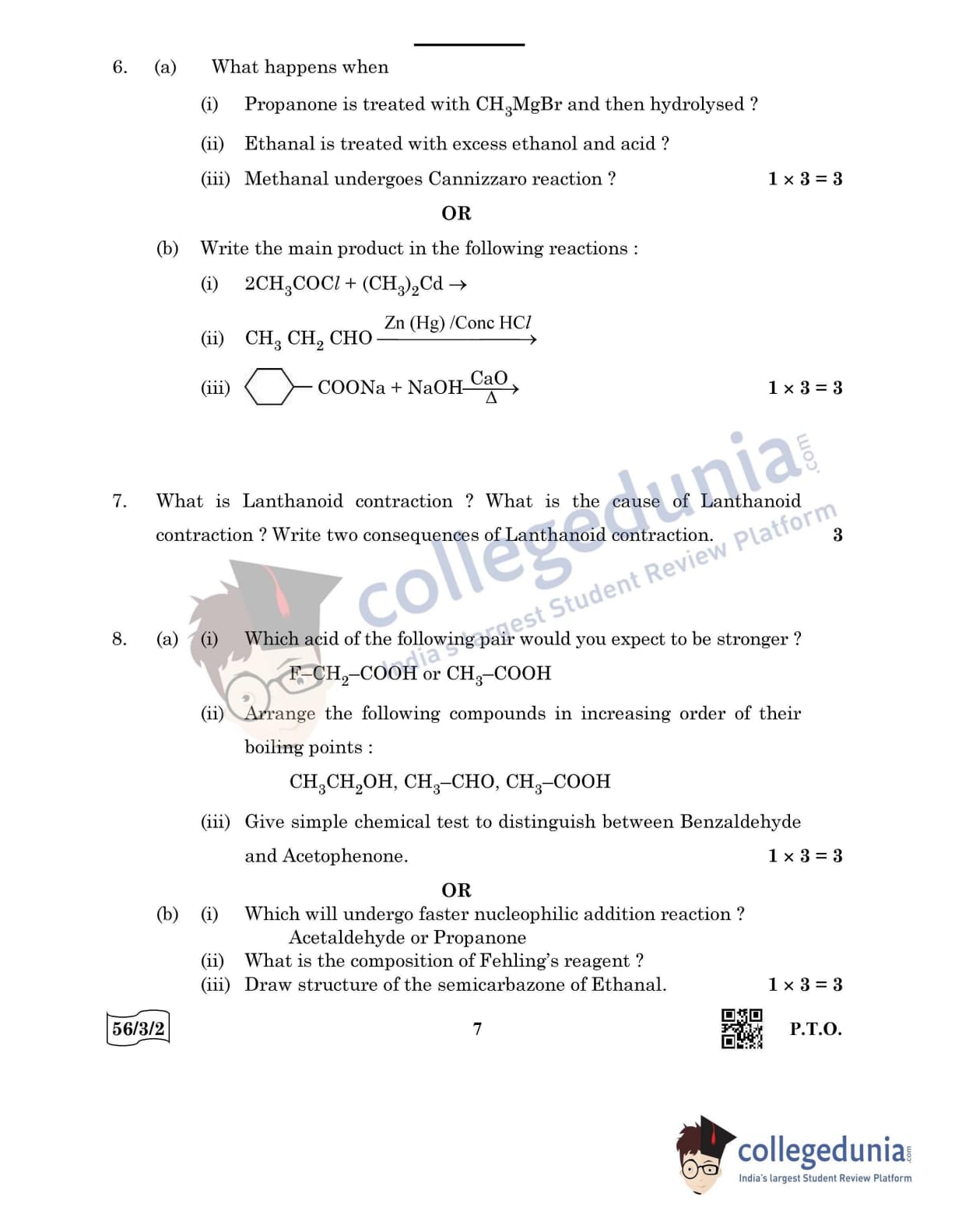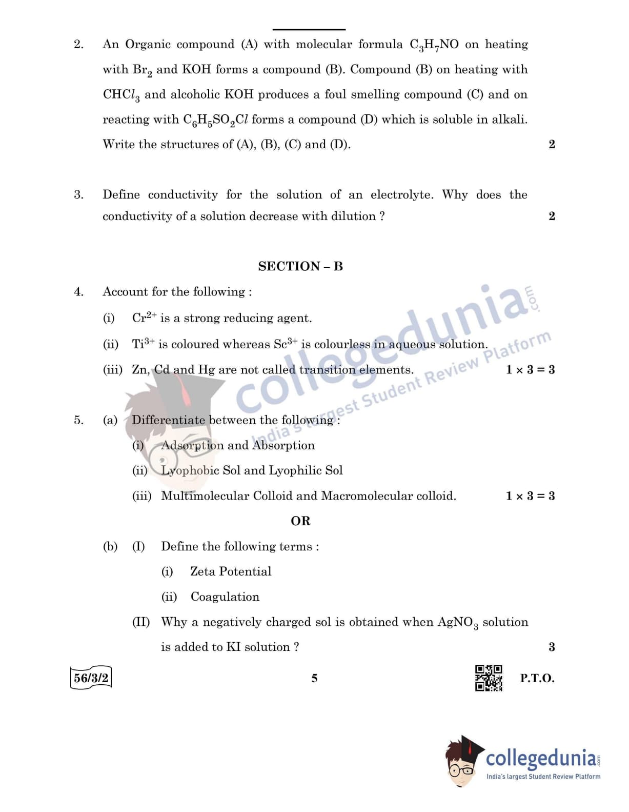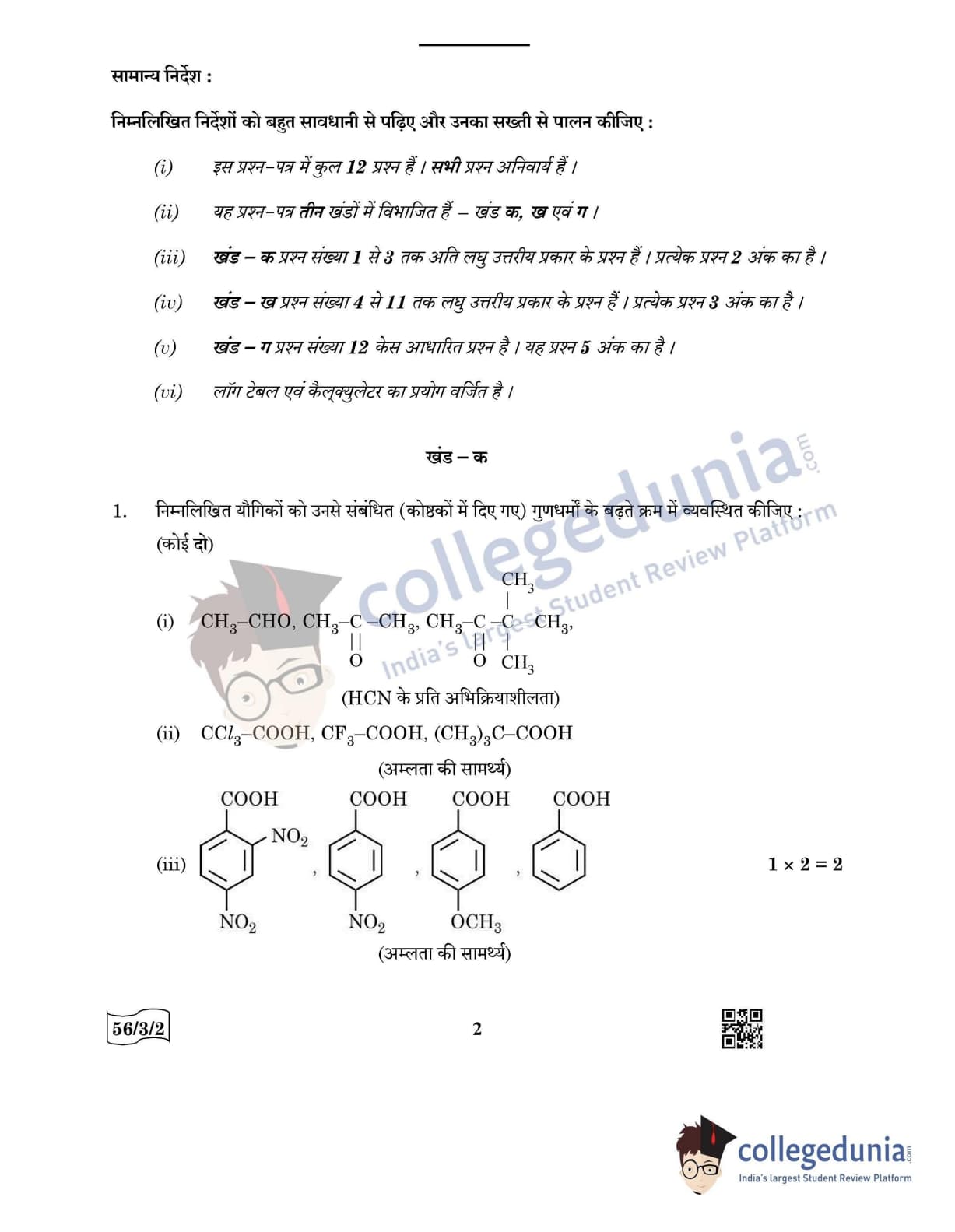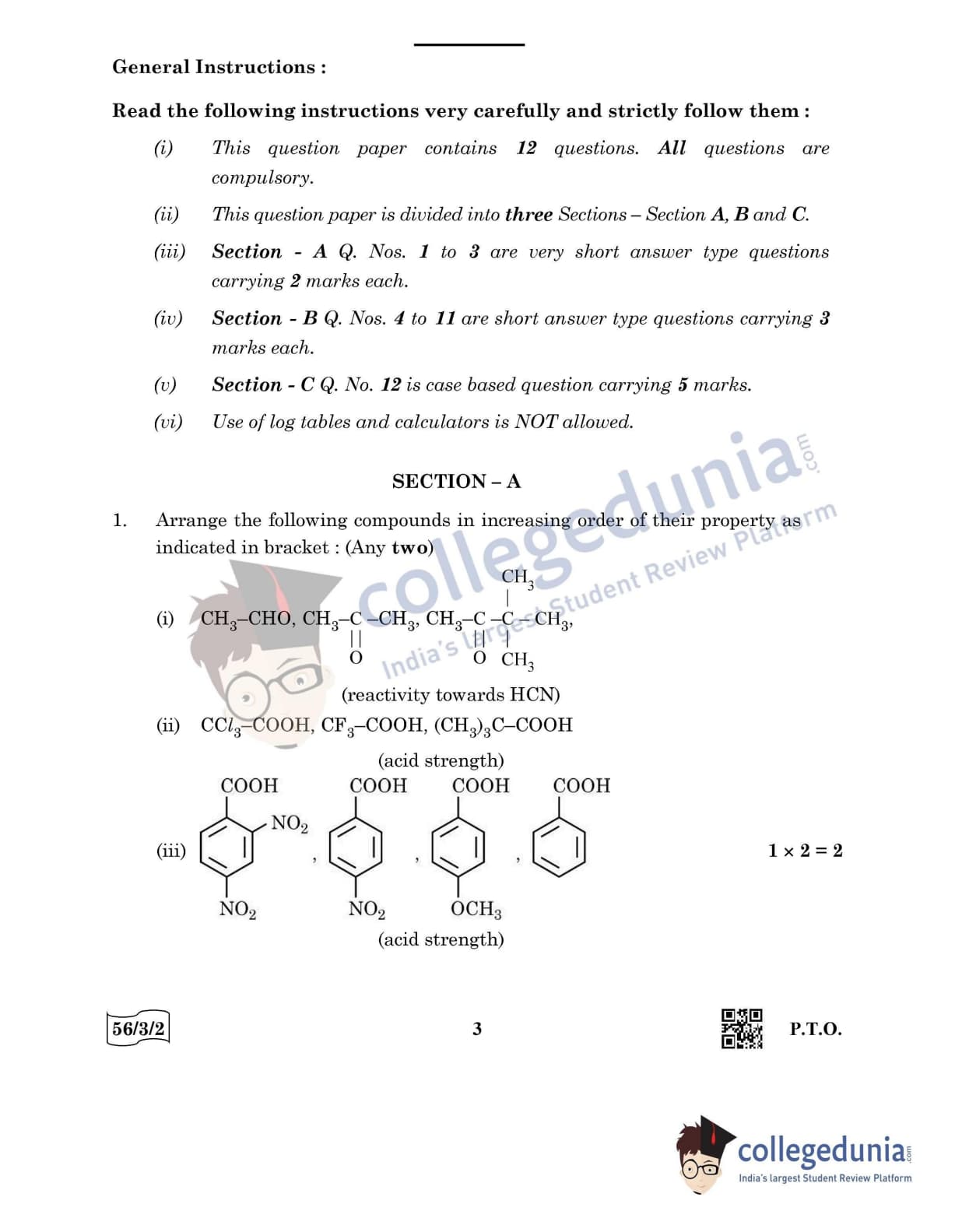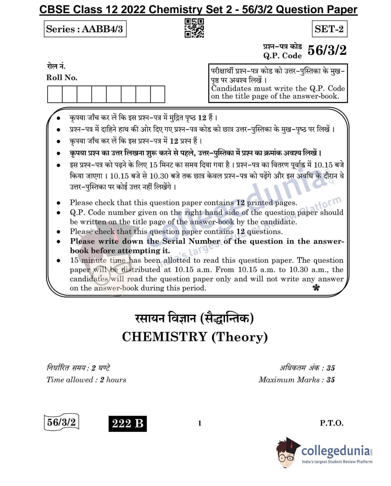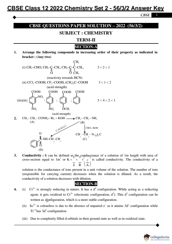 CBSE Class 12 Chemistry Question Paper 2022 with Answer Key (May 7, Set 2 - 56/3/2- Morning Session)