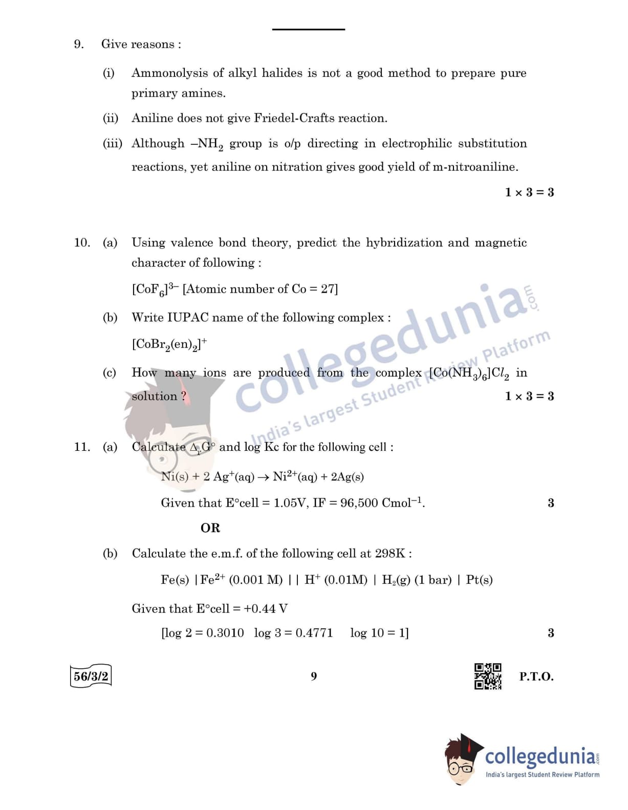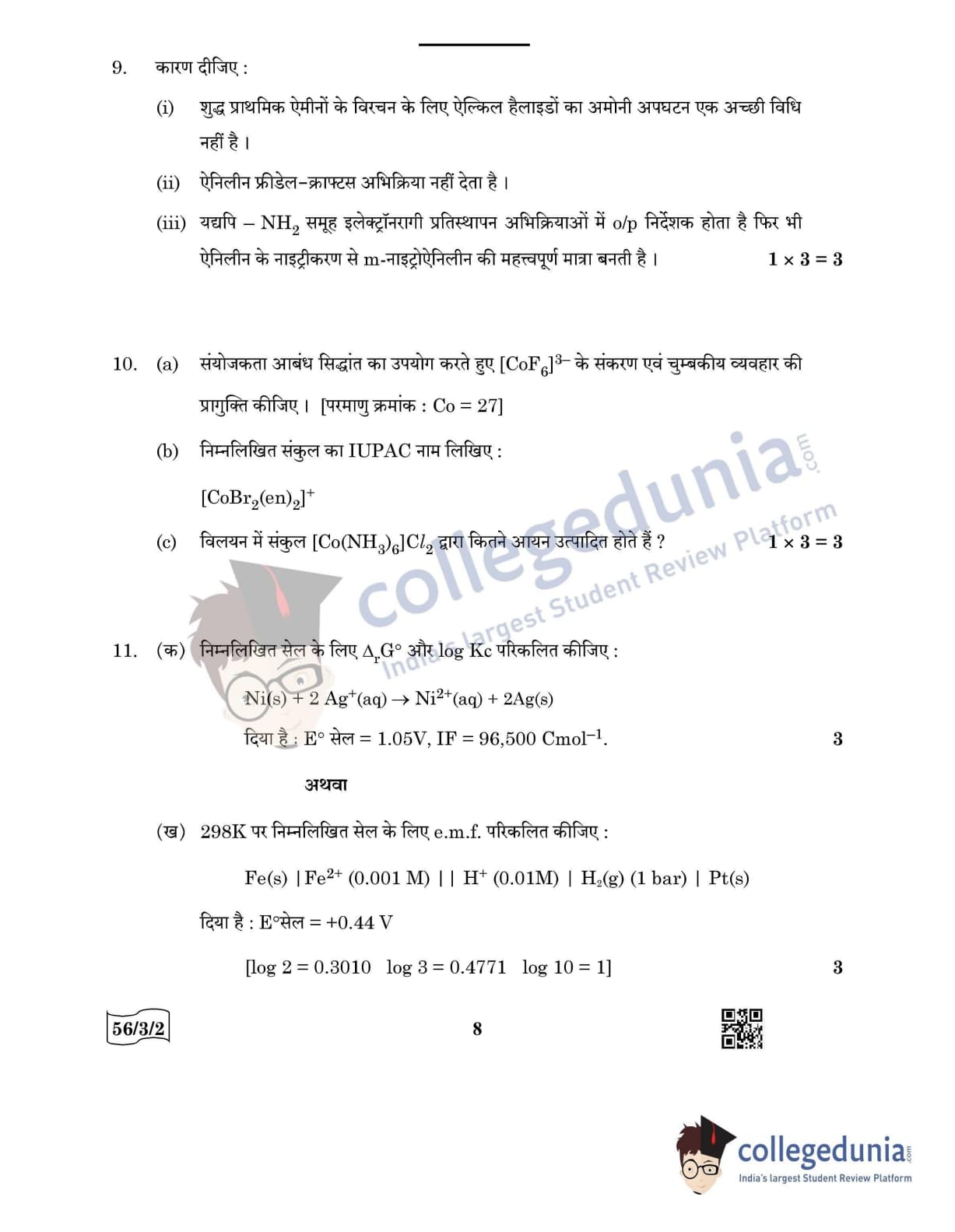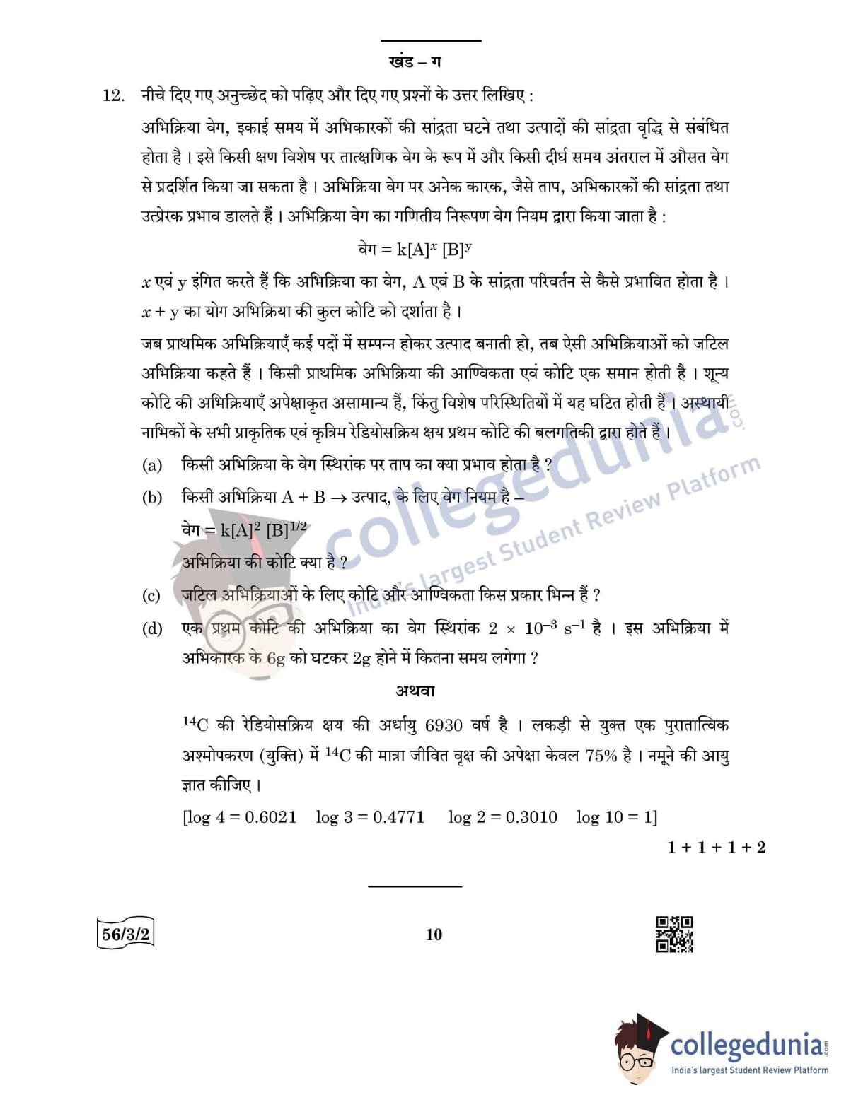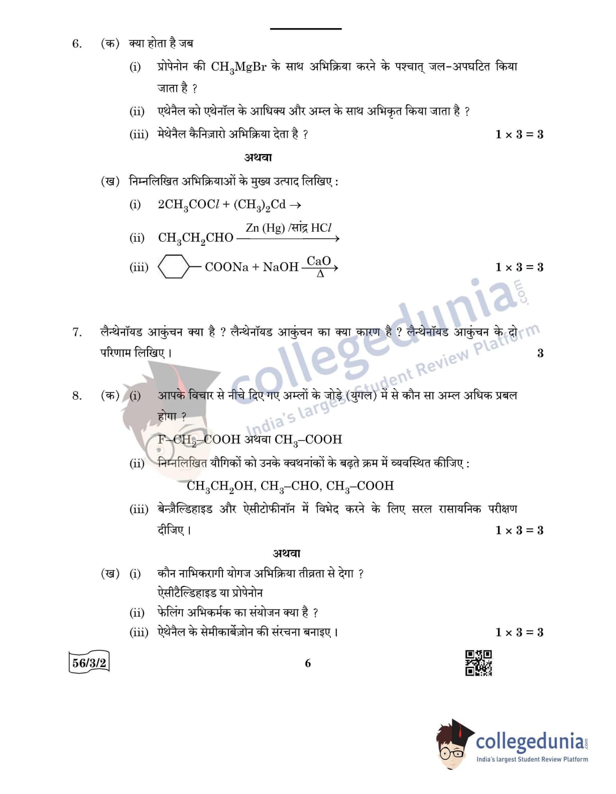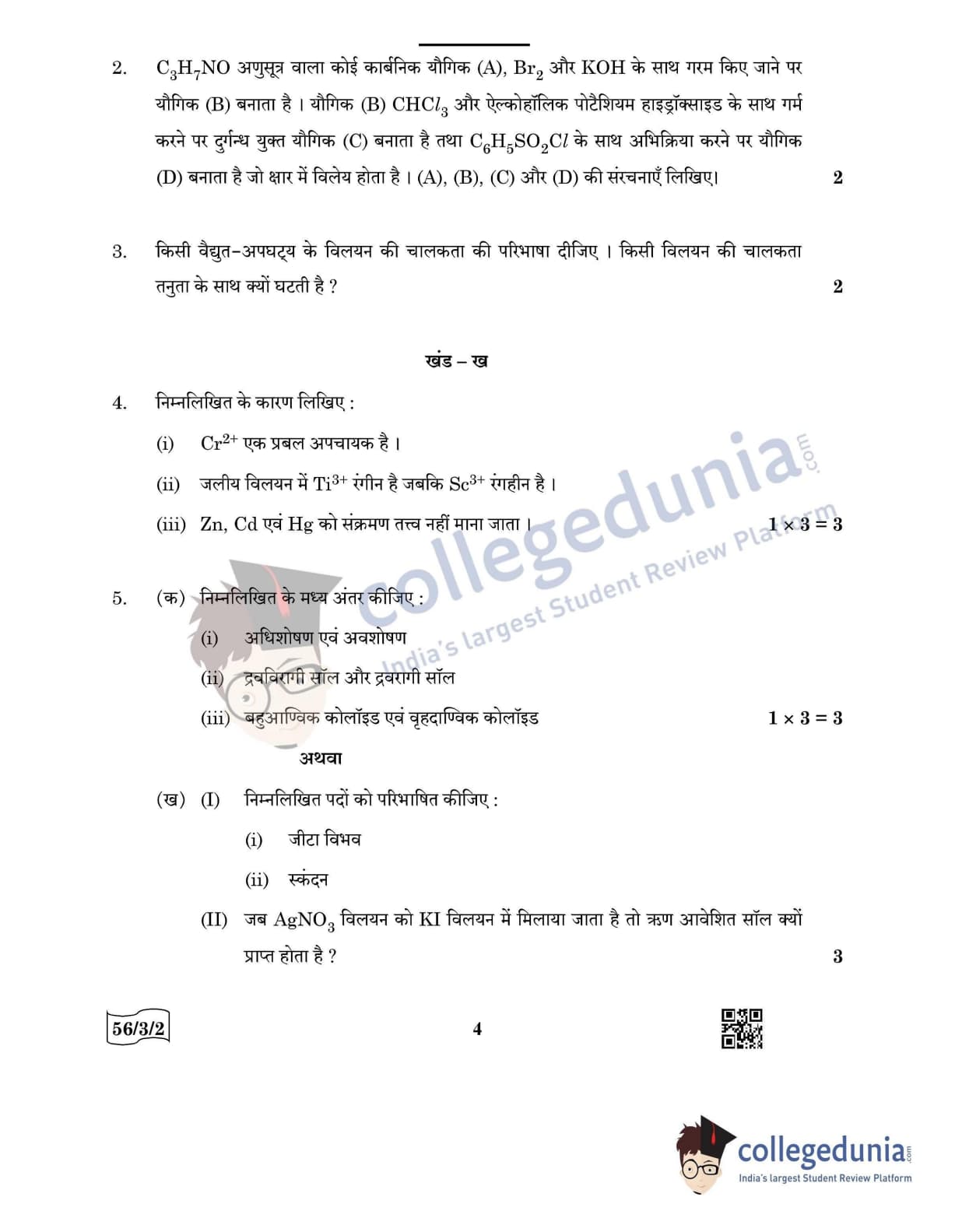 CBSE Class 12 Chemistry Question Paper 2022 with Answer Key (May 7, Set 2 - 56/3/2- Morning Session)