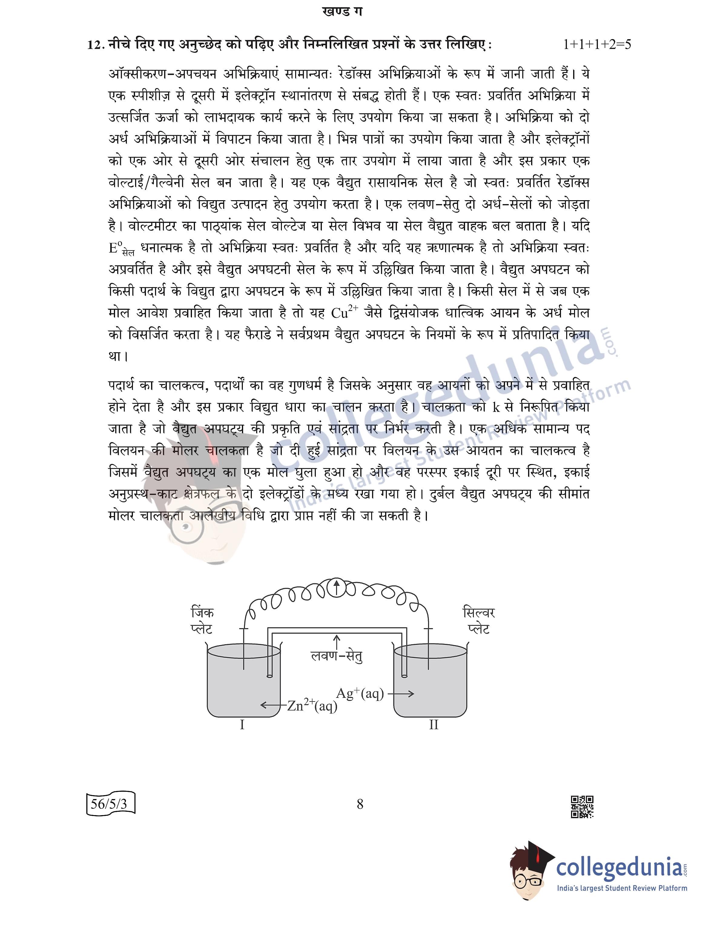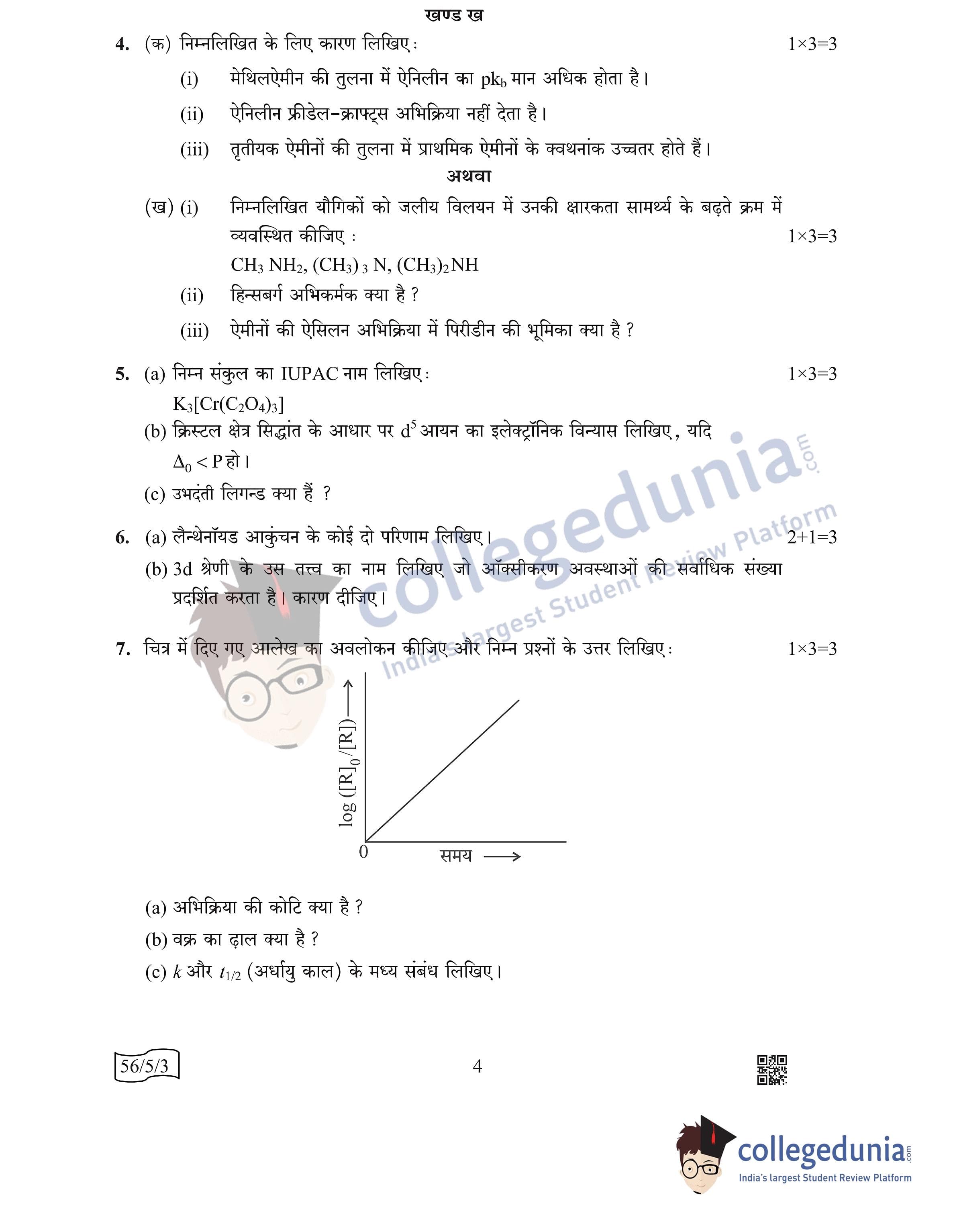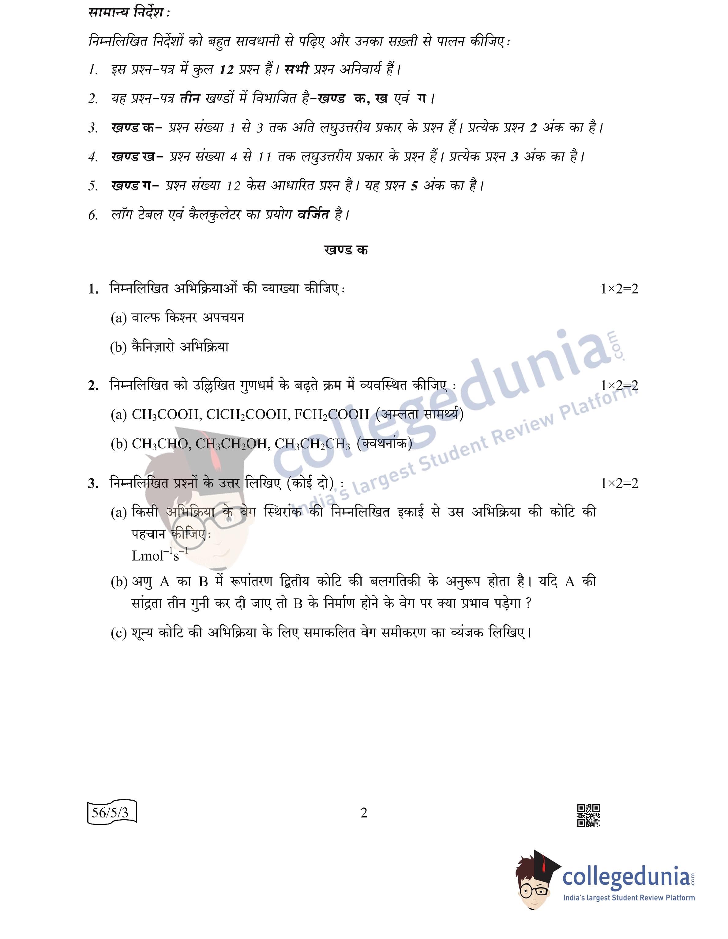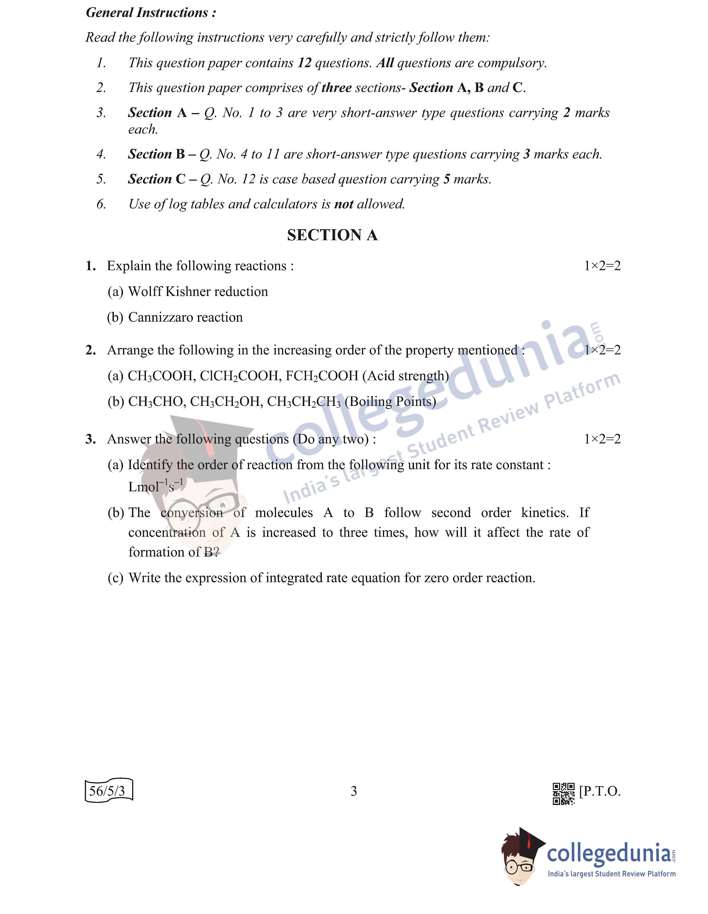 CBSE Class 12 Chemistry Question Paper 2022 with Answer Key (May 7, Set 3 - 56/5/3- Morning Session)