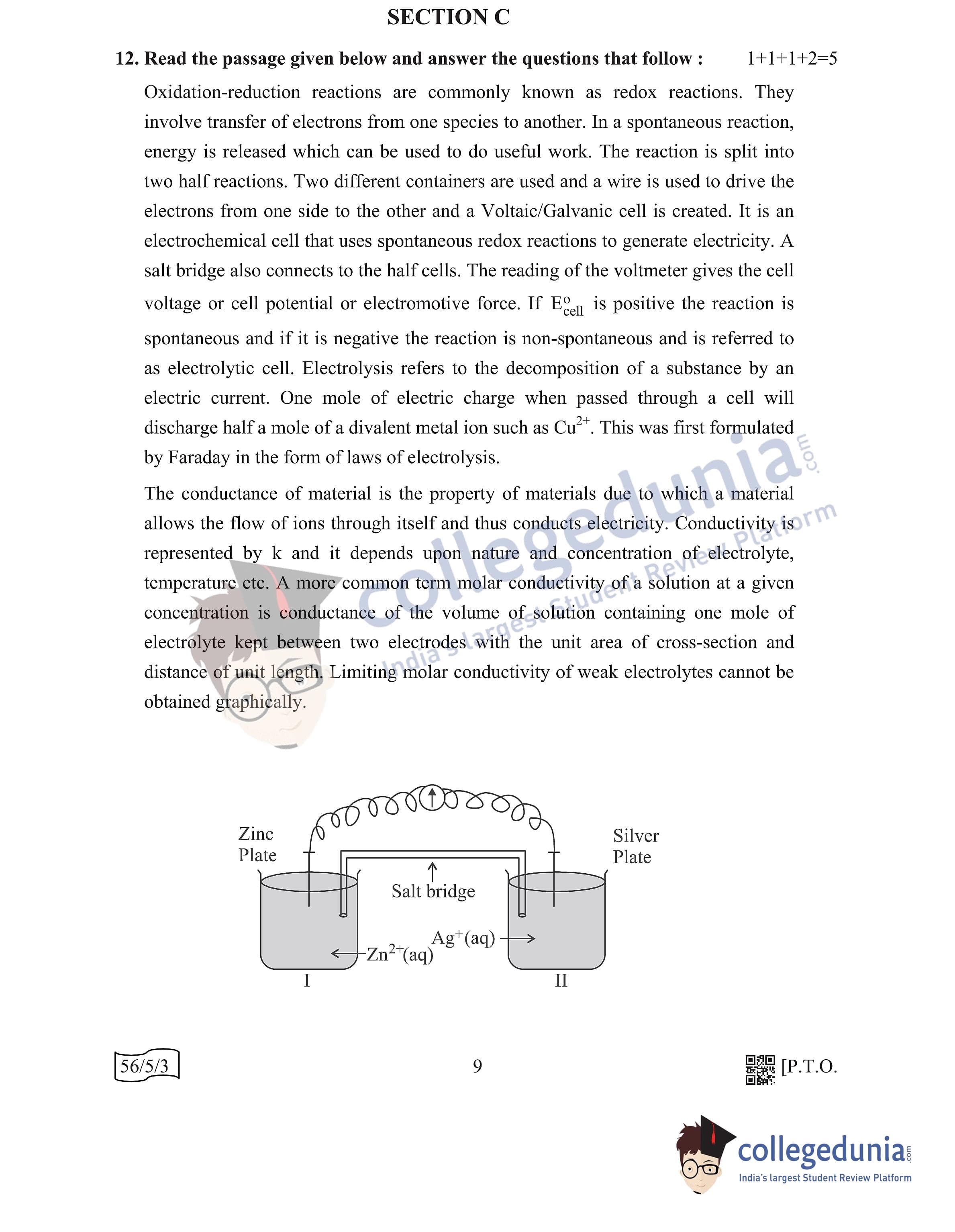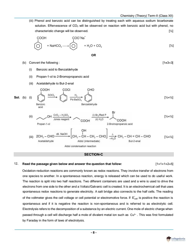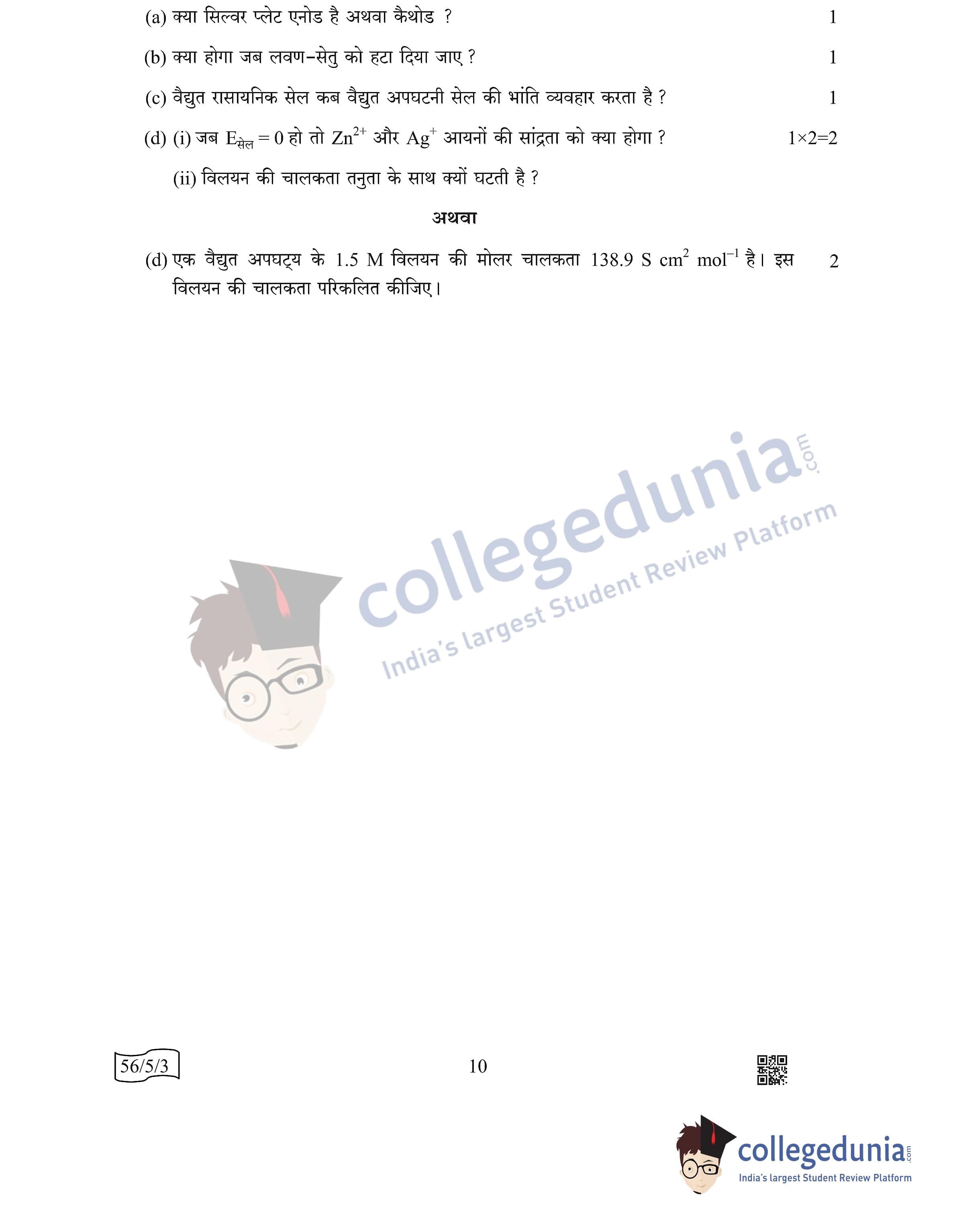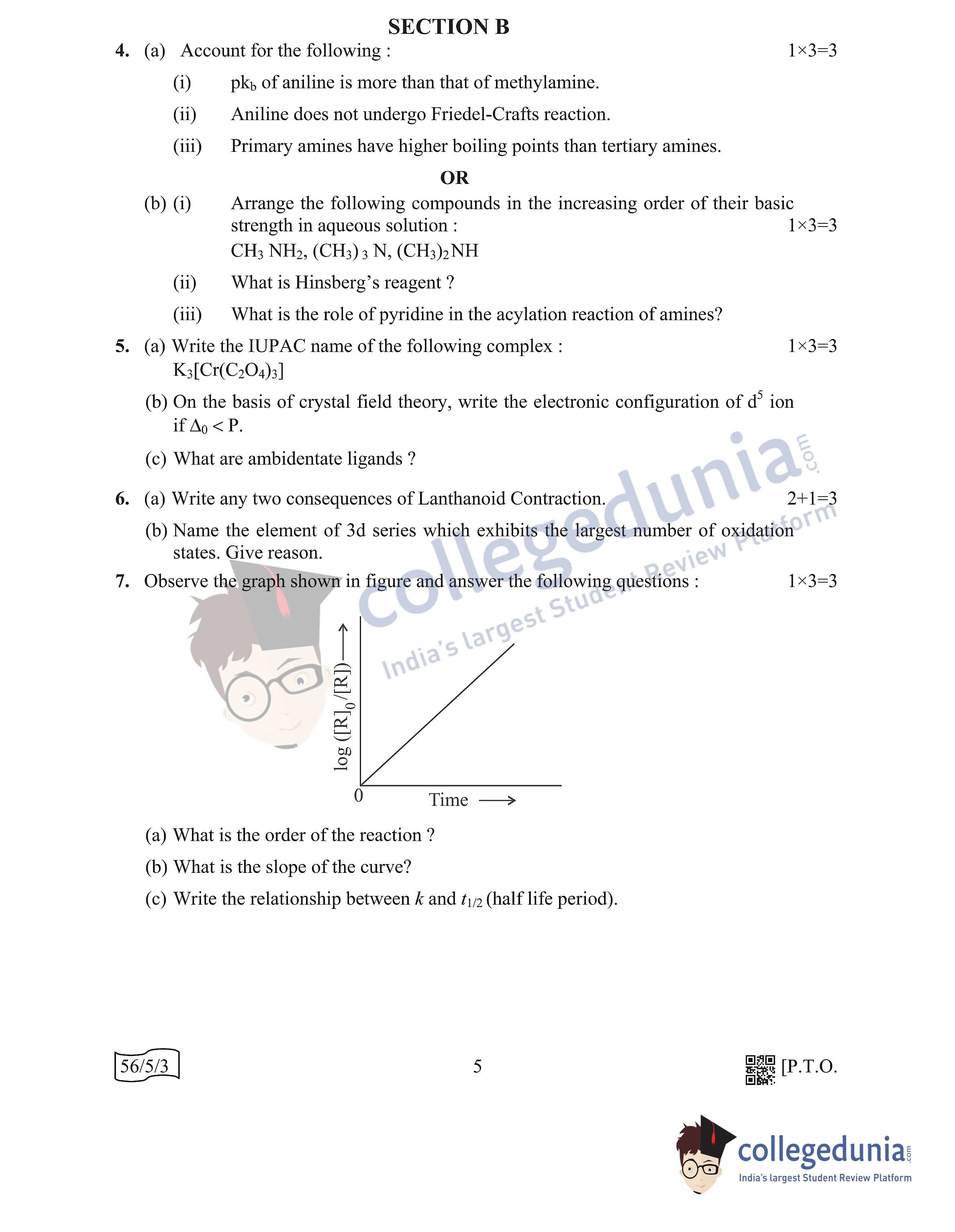 CBSE Class 12 Chemistry Question Paper 2022 with Answer Key (May 7, Set 3 - 56/5/3- Morning Session)