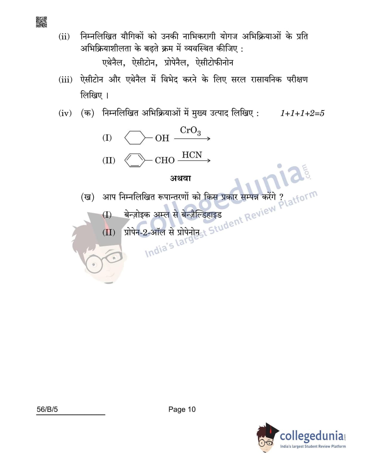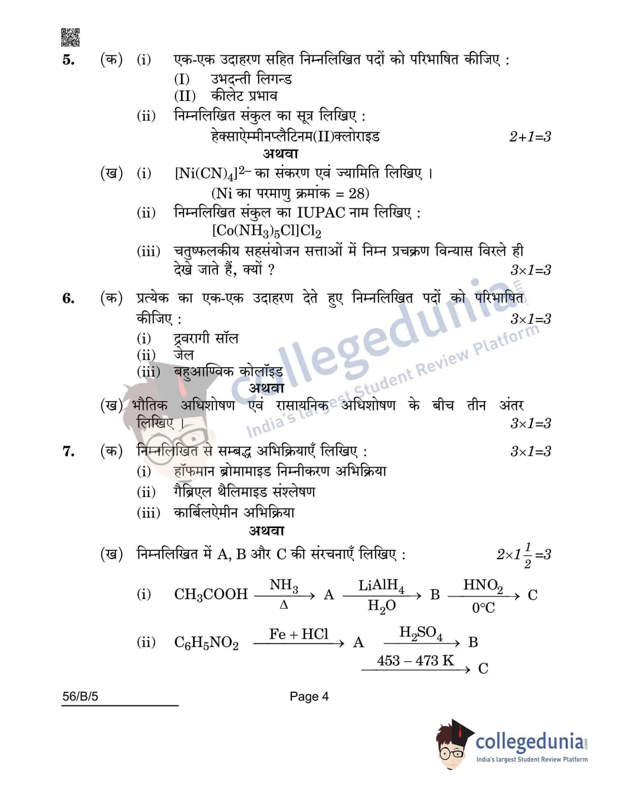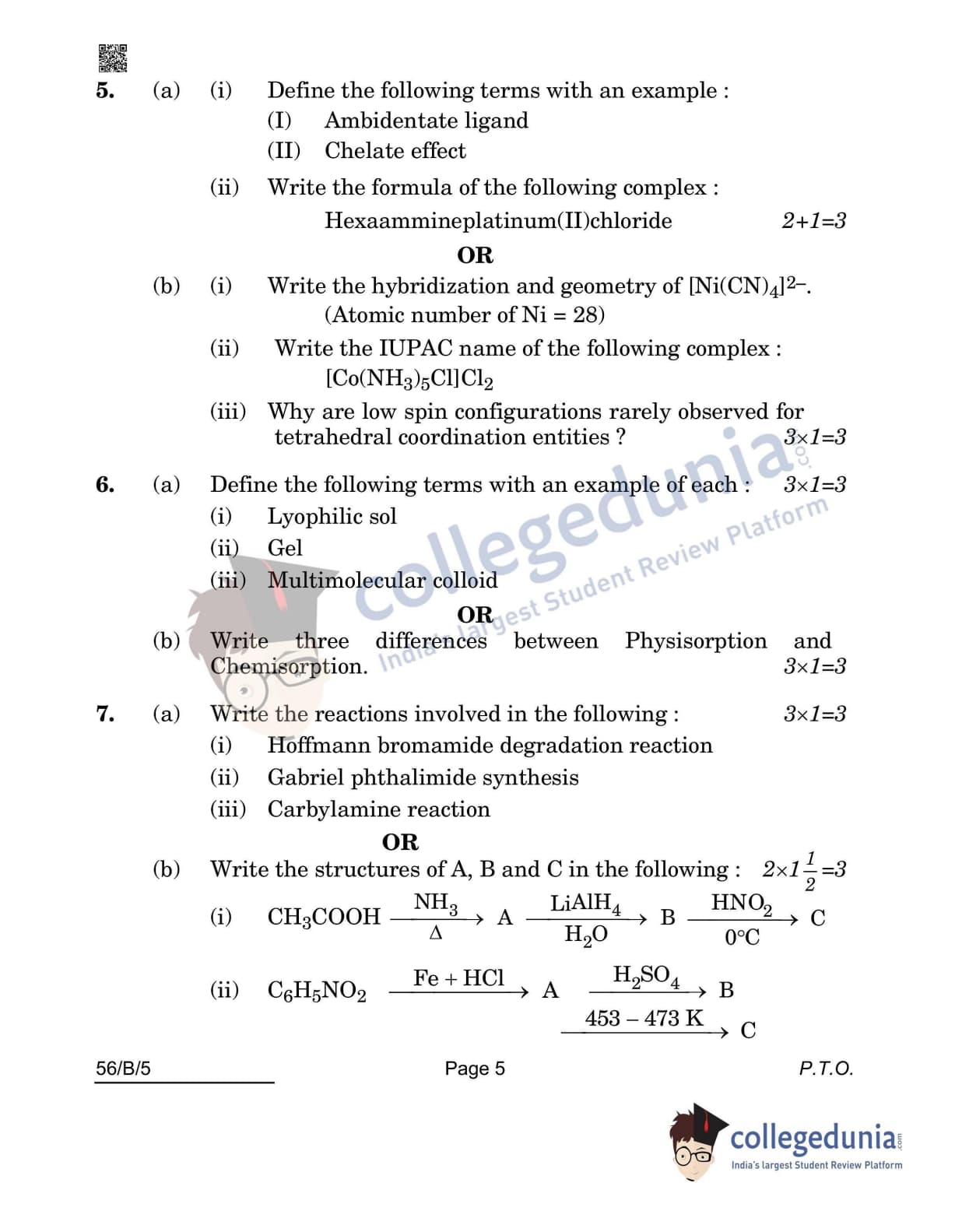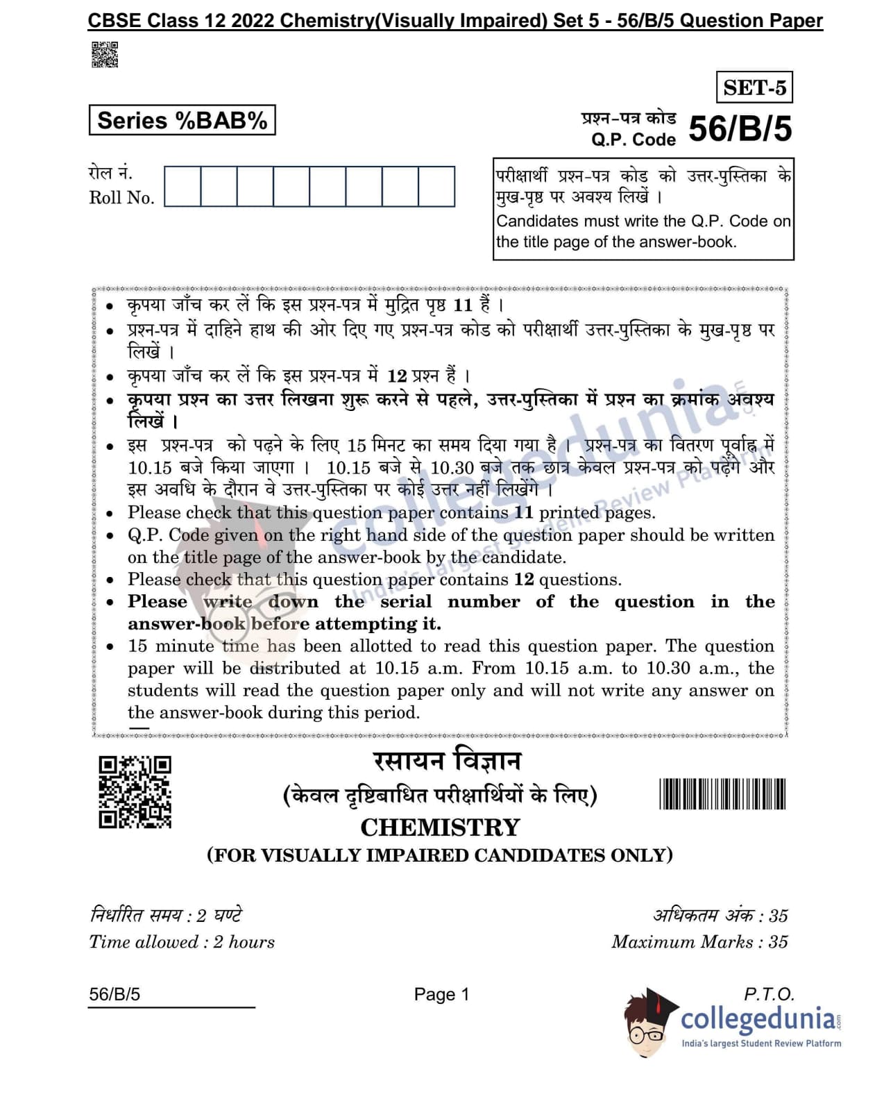 CBSE Class 12 Chemistry(Visually Impaired) Question Paper 2022 with Answer Key (May 7, Set 5 - 56/B/5- Morning Session)