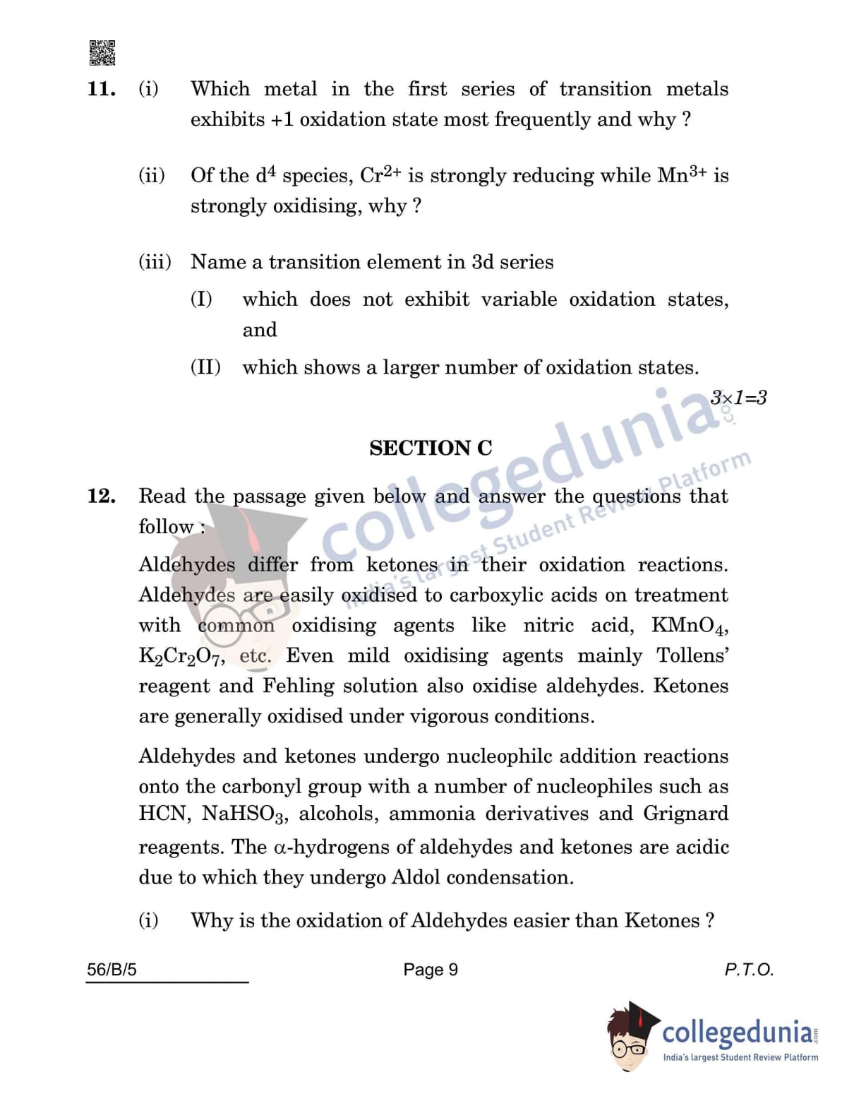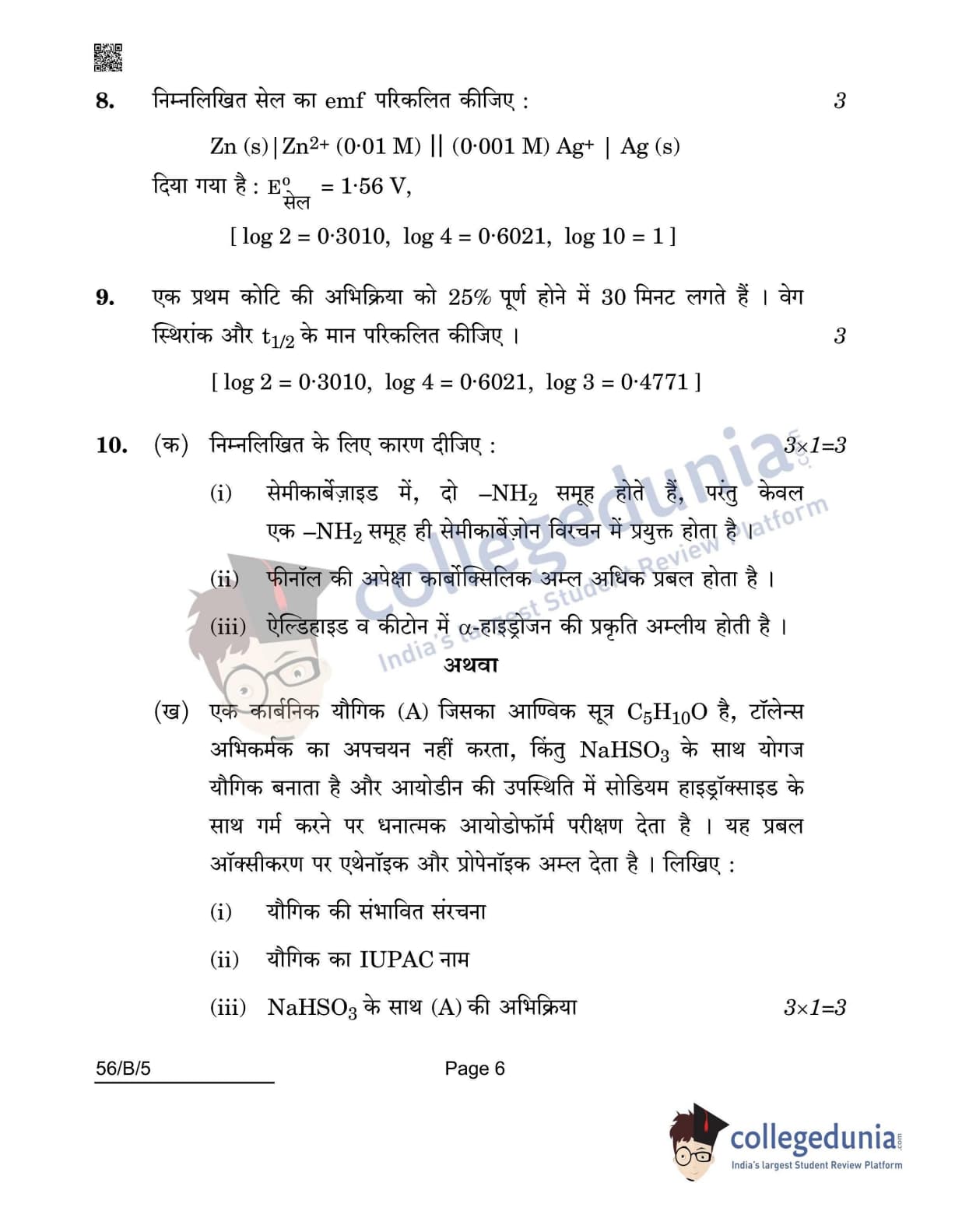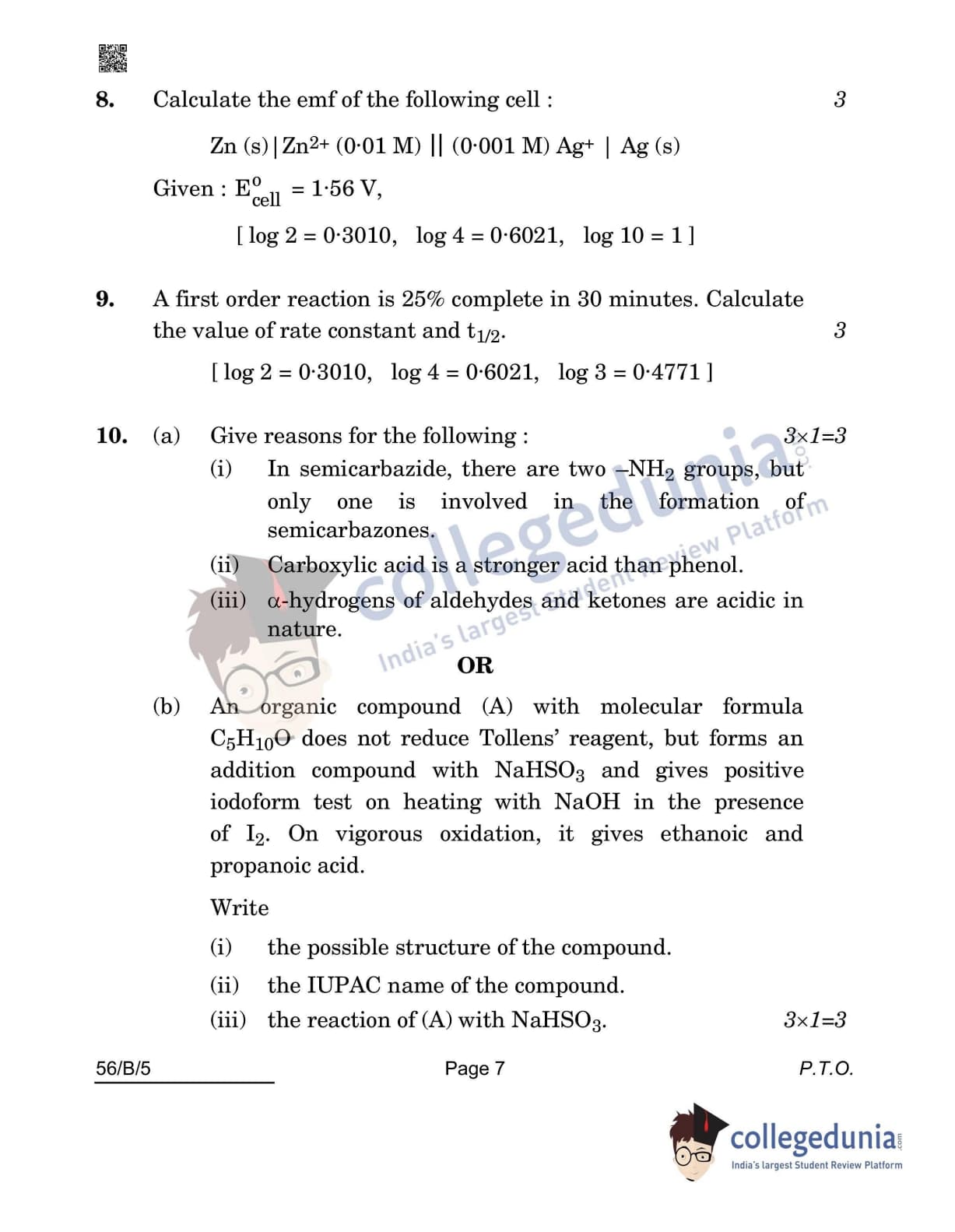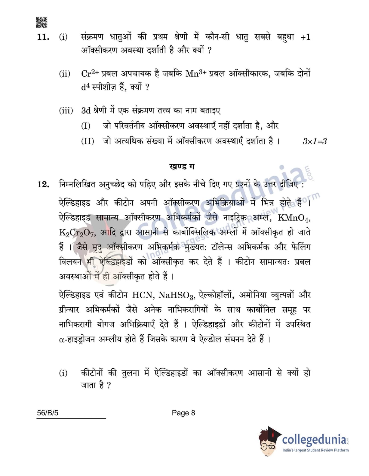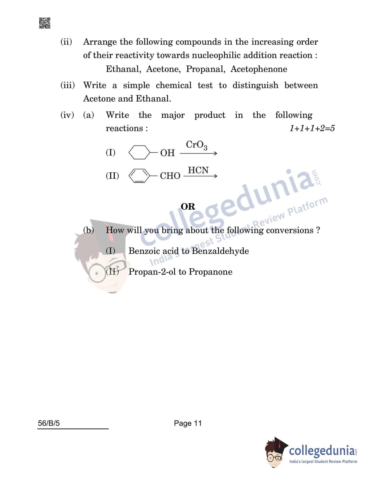 CBSE Class 12 Chemistry(Visually Impaired) Question Paper 2022 with Answer Key (May 7, Set 5 - 56/B/5- Morning Session)