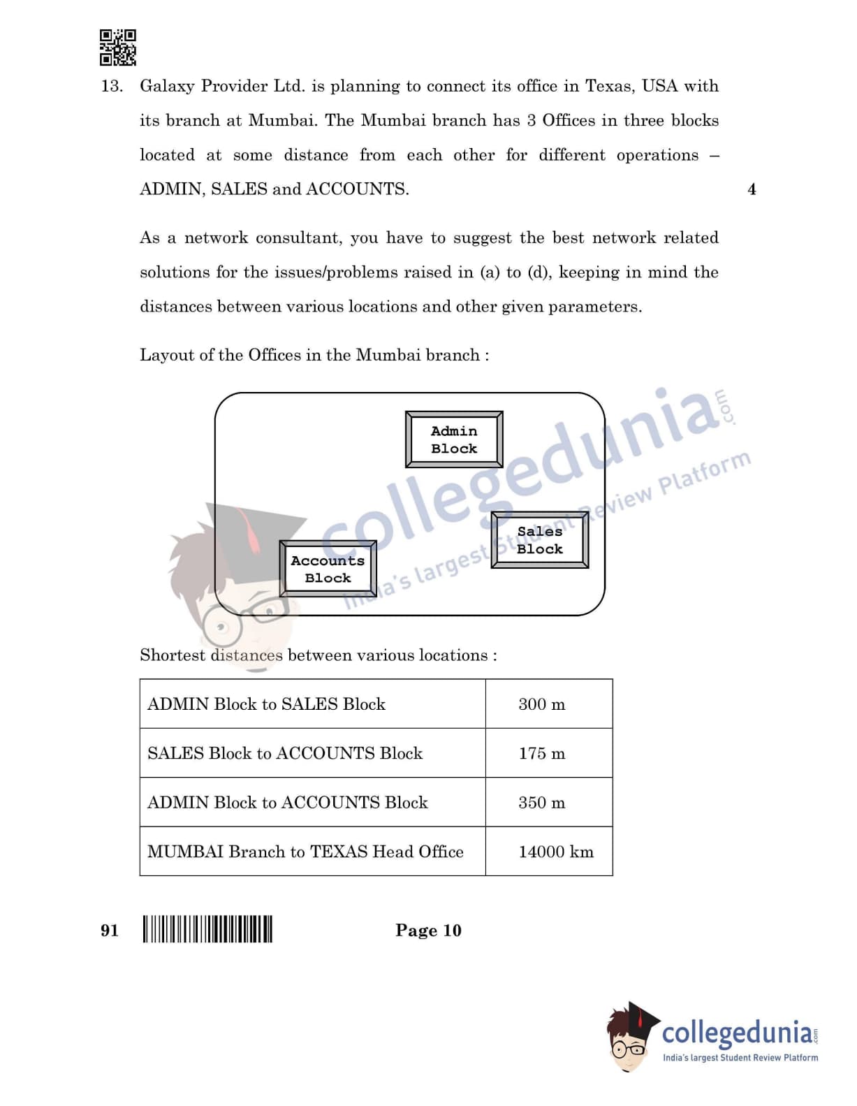 CBSE Class 12 Computer Science Question Paper 2022 with Answer Key (June 13, Set 4- Morning Session)