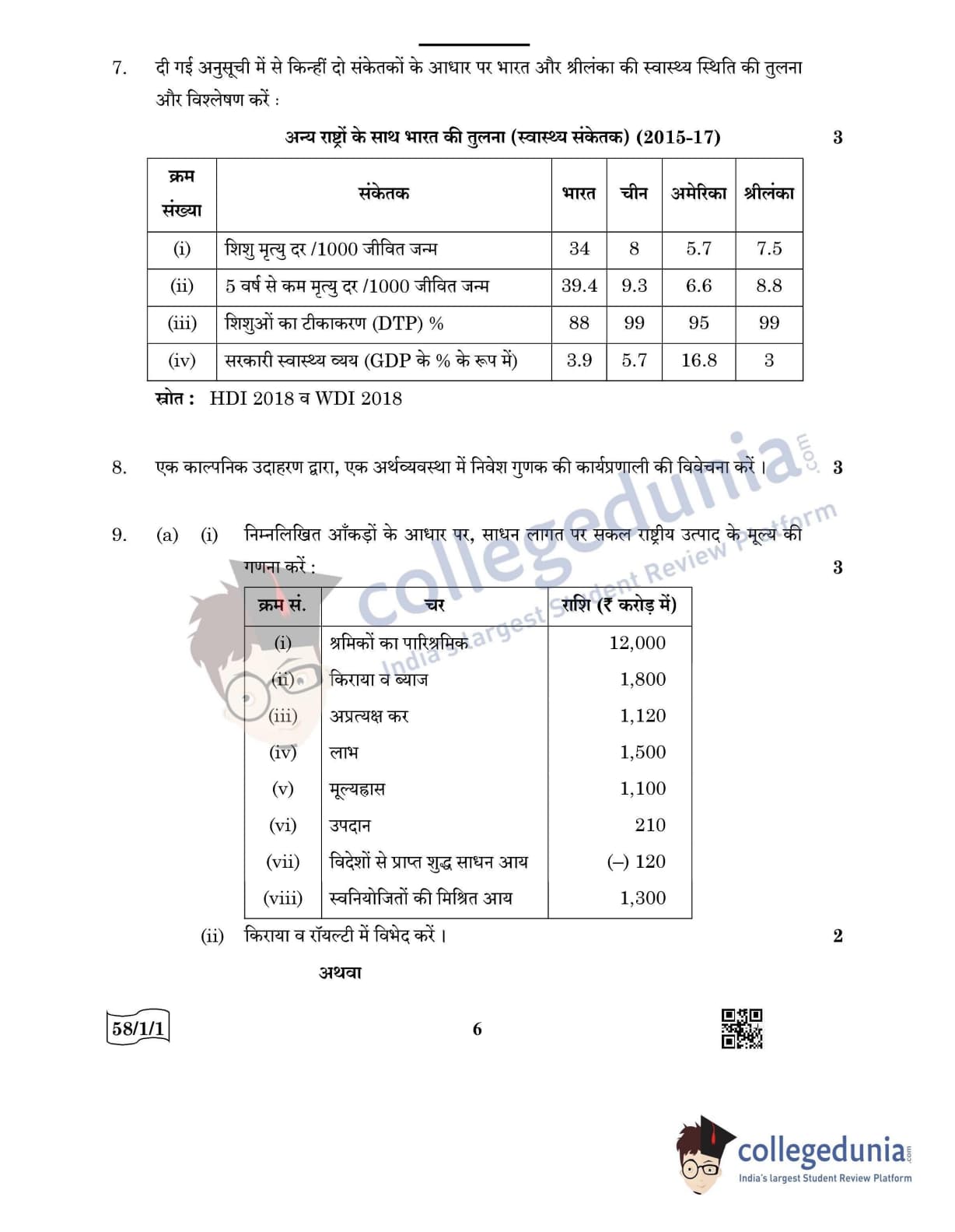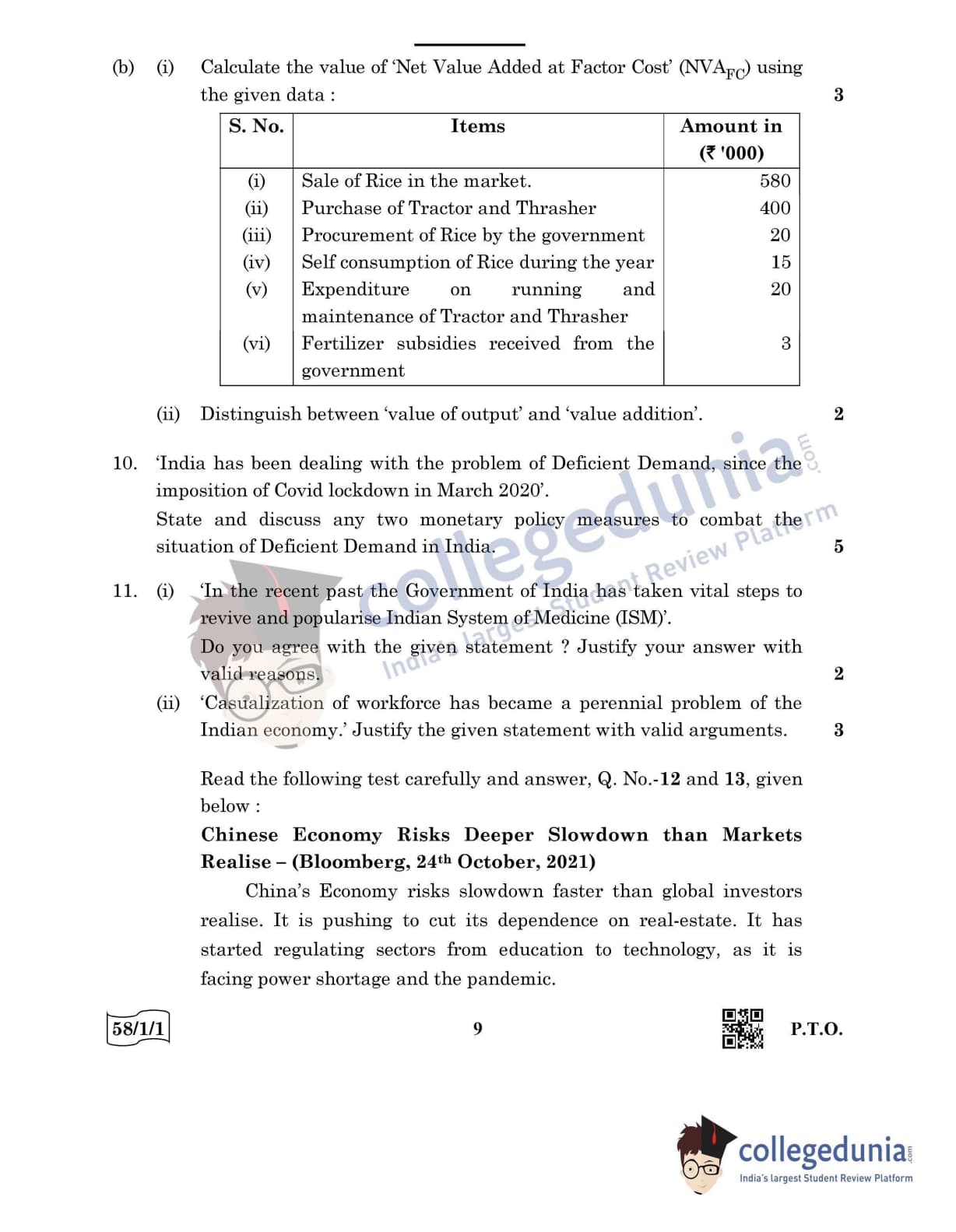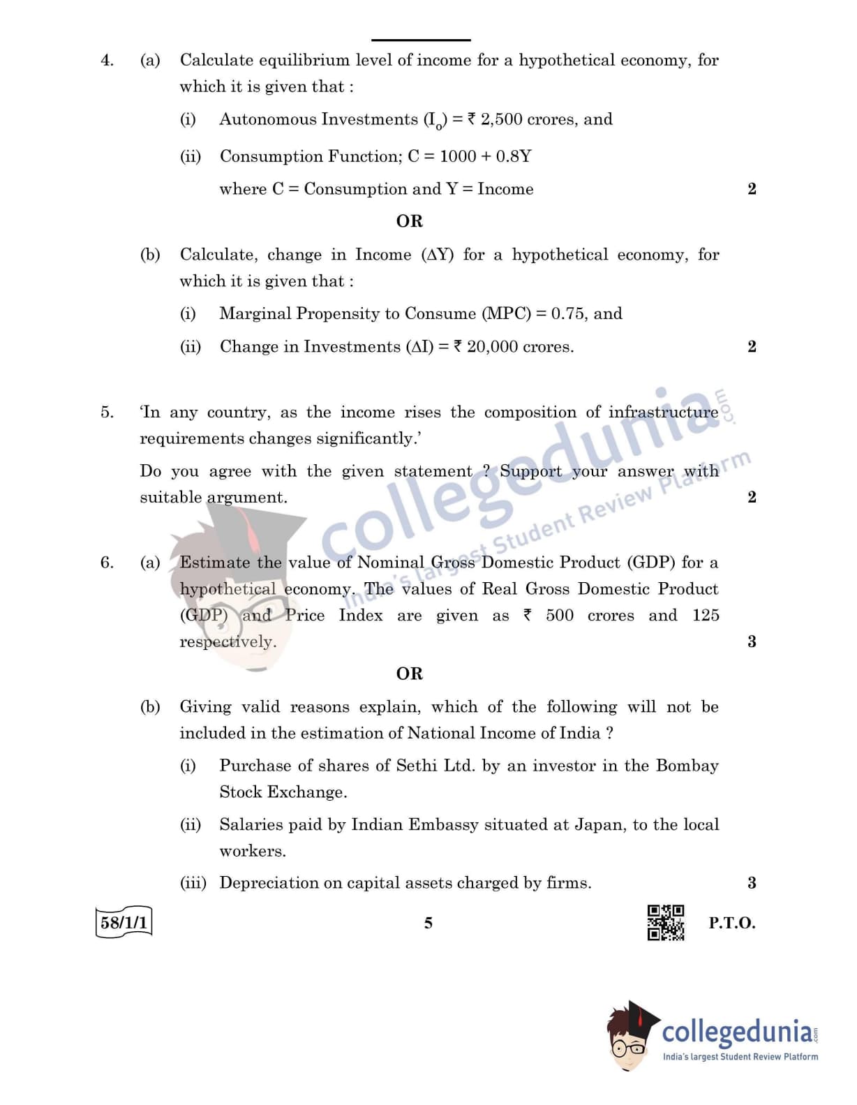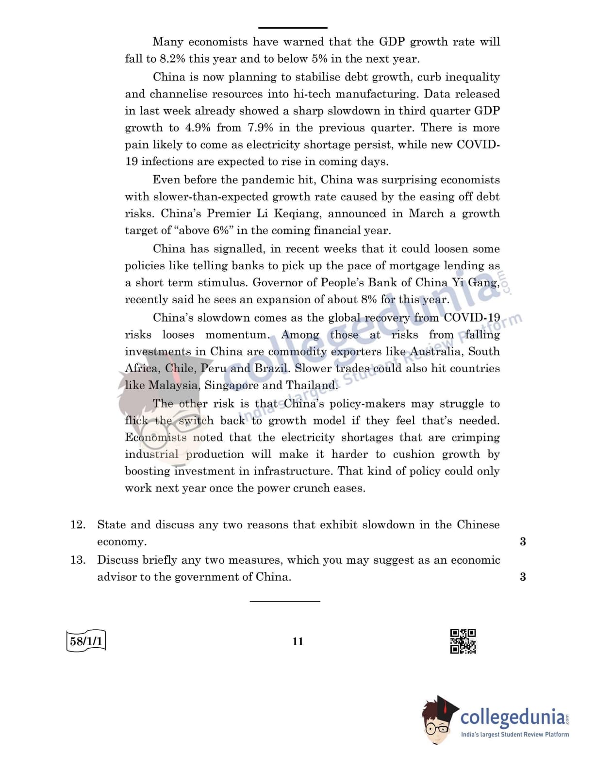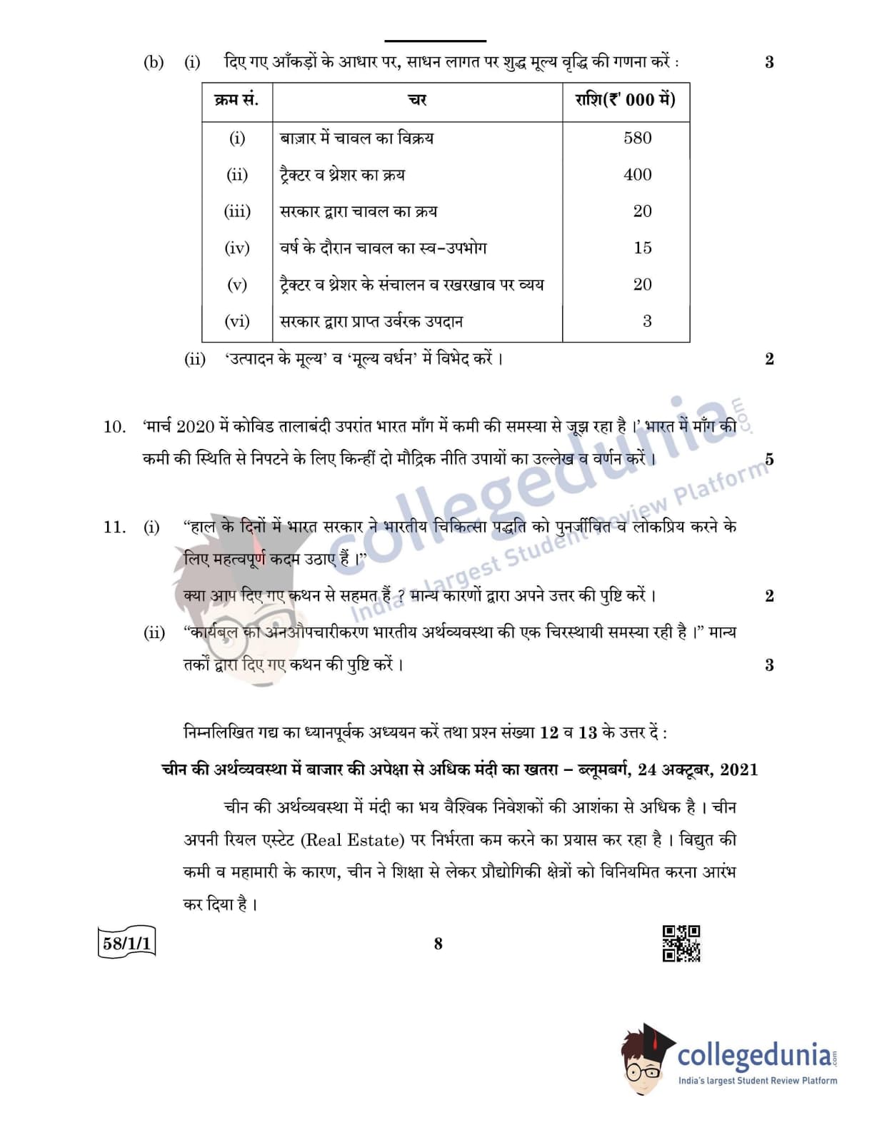 CBSE Class 12 Economics Question Paper 2022 with Answer Key (May 28, Set 1 - 58/1/1- Morning Session)