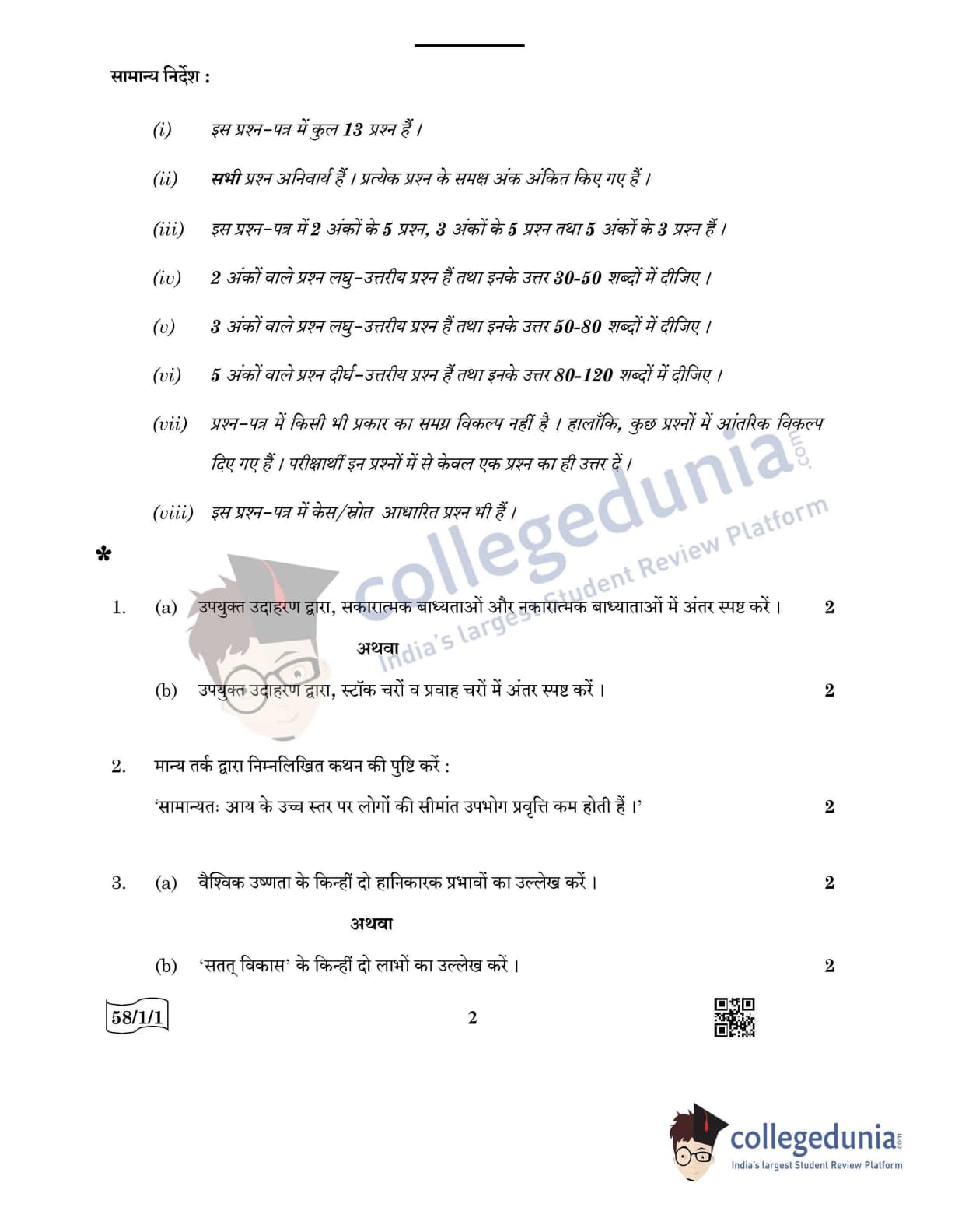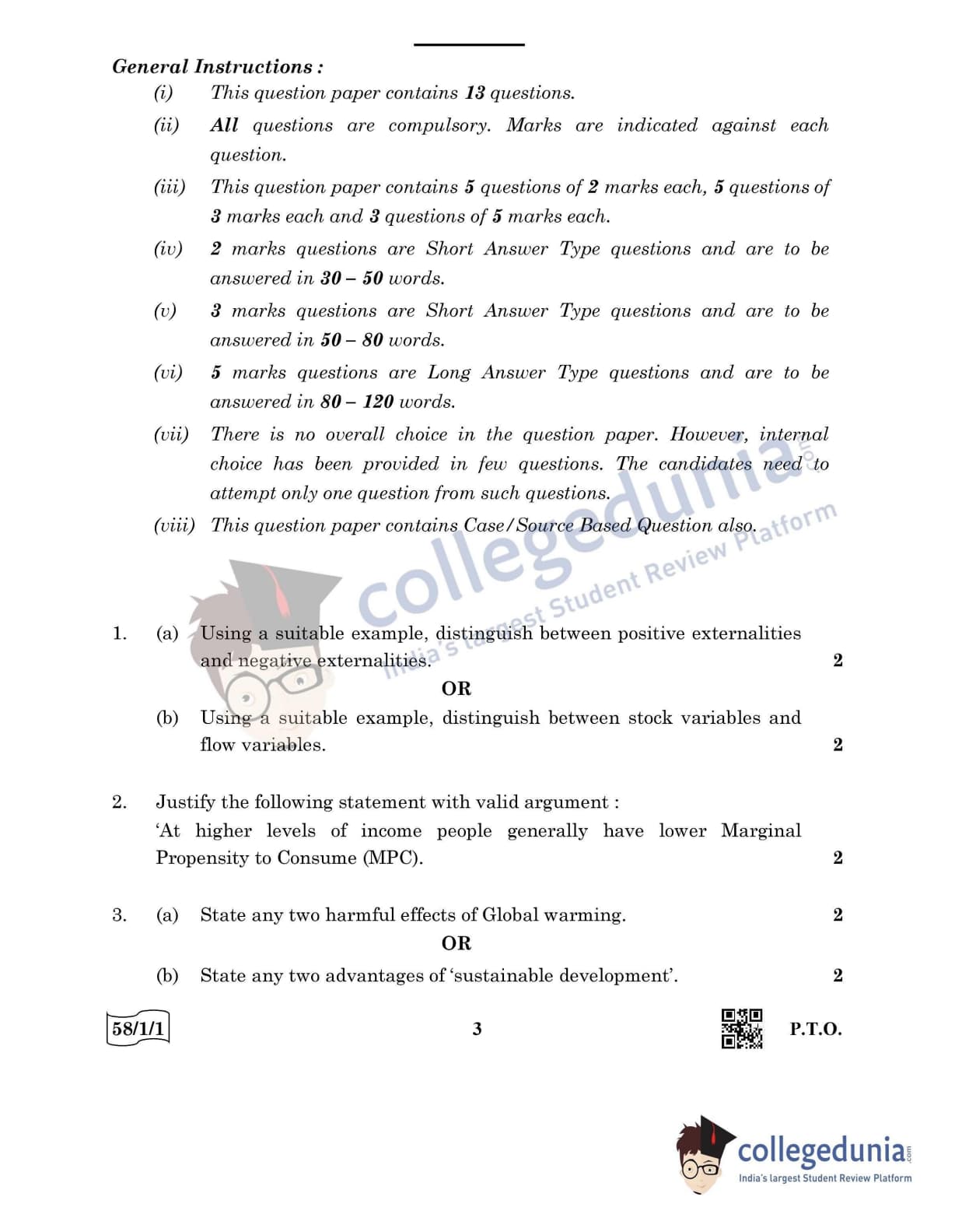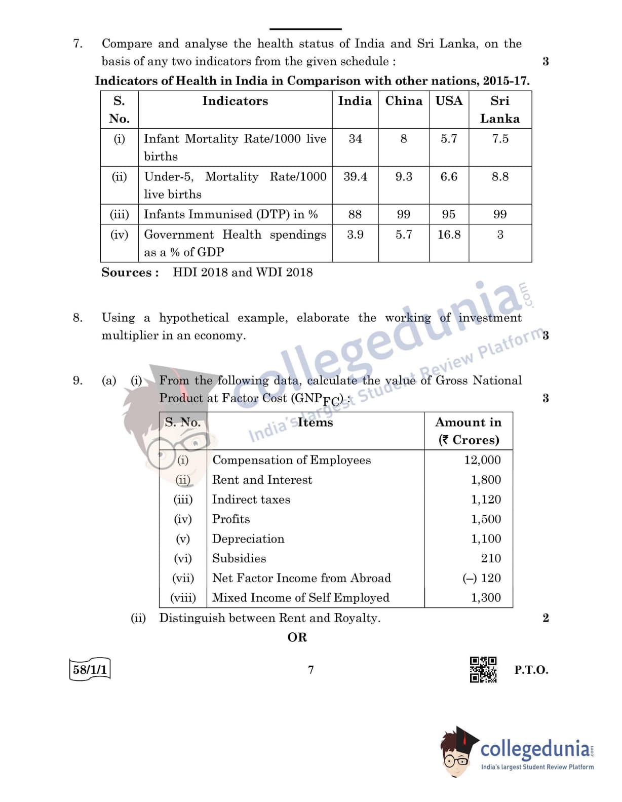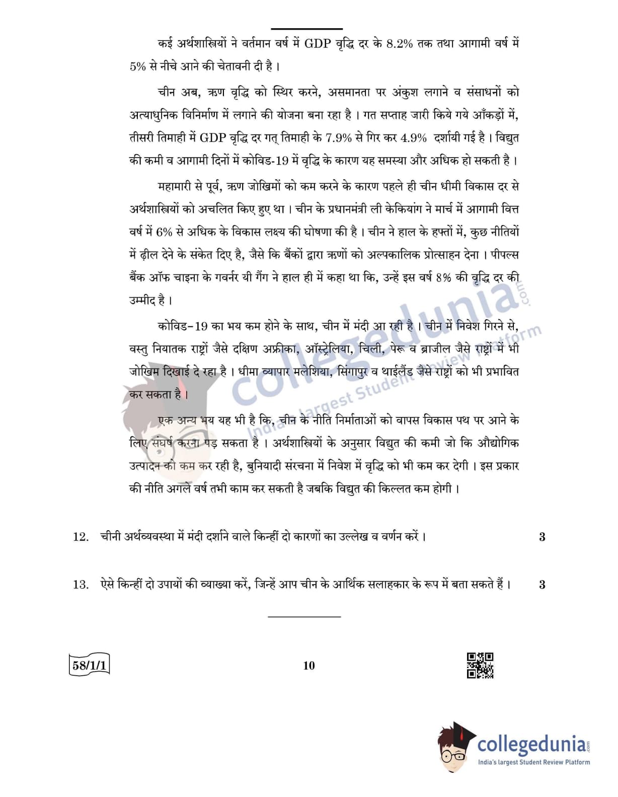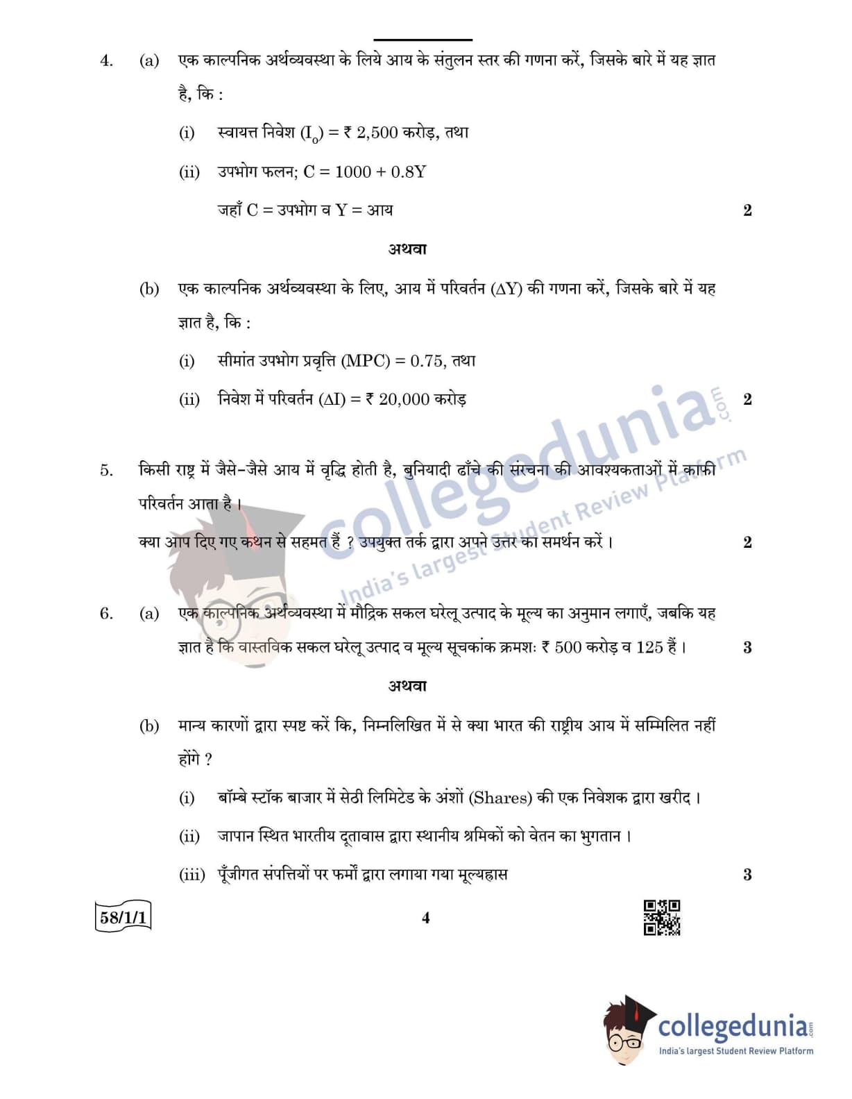 CBSE Class 12 Economics Question Paper 2022 with Answer Key (May 28, Set 1 - 58/1/1- Morning Session)