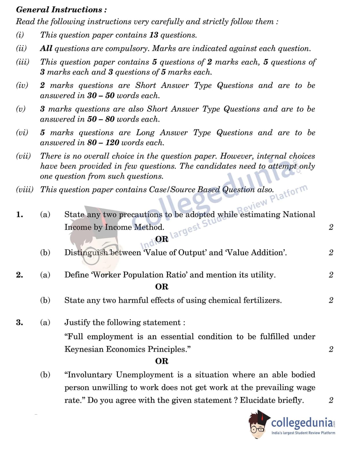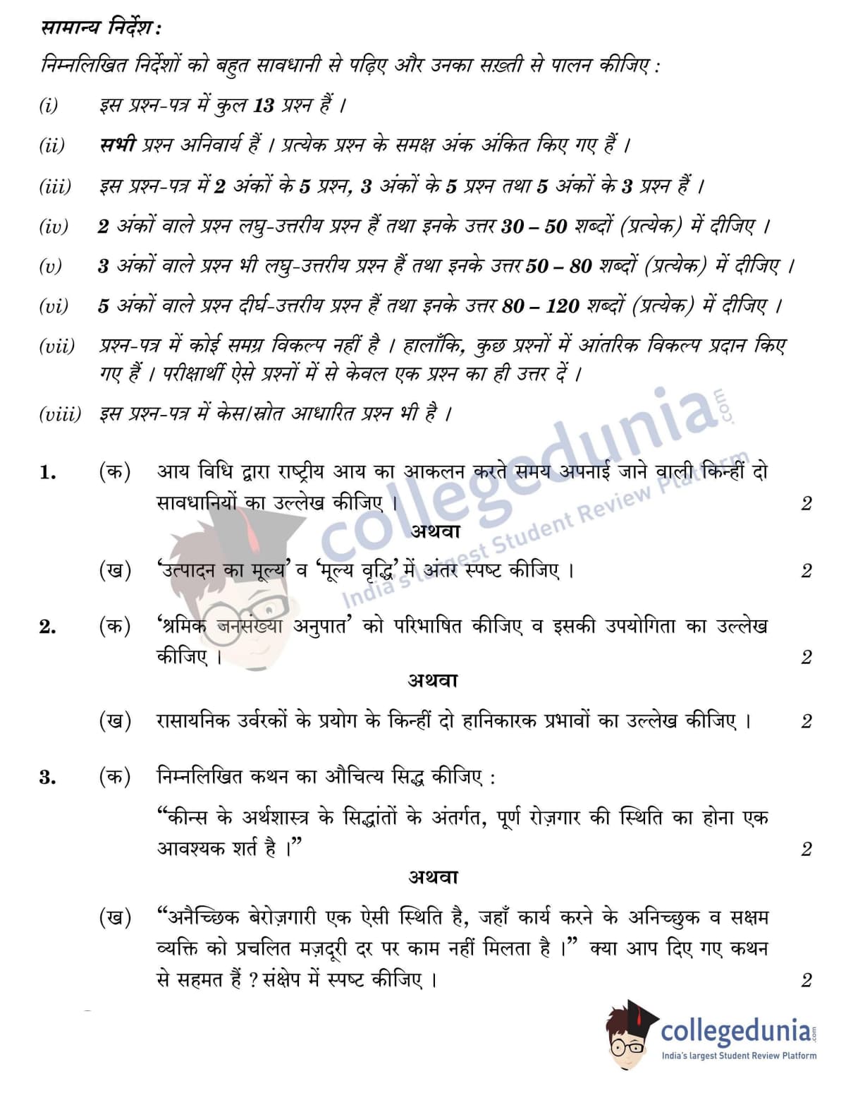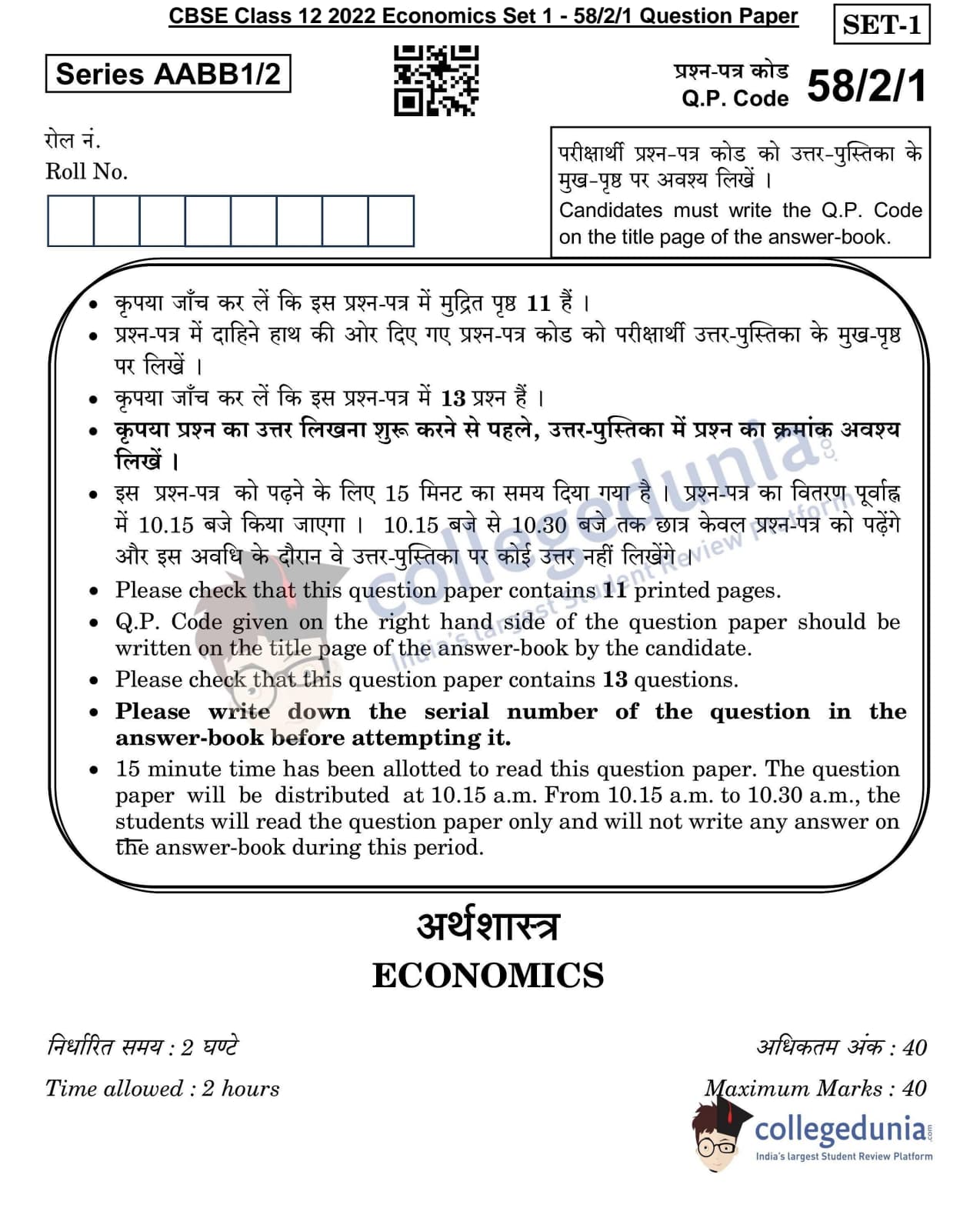 CBSE Class 12 Economics Question Paper 2022 with Answer Key (May 28, Set 1 - 58/2/1- Morning Session)