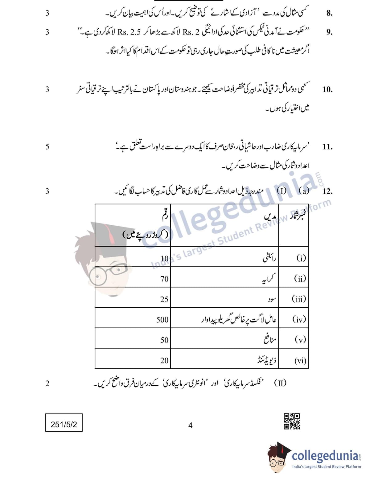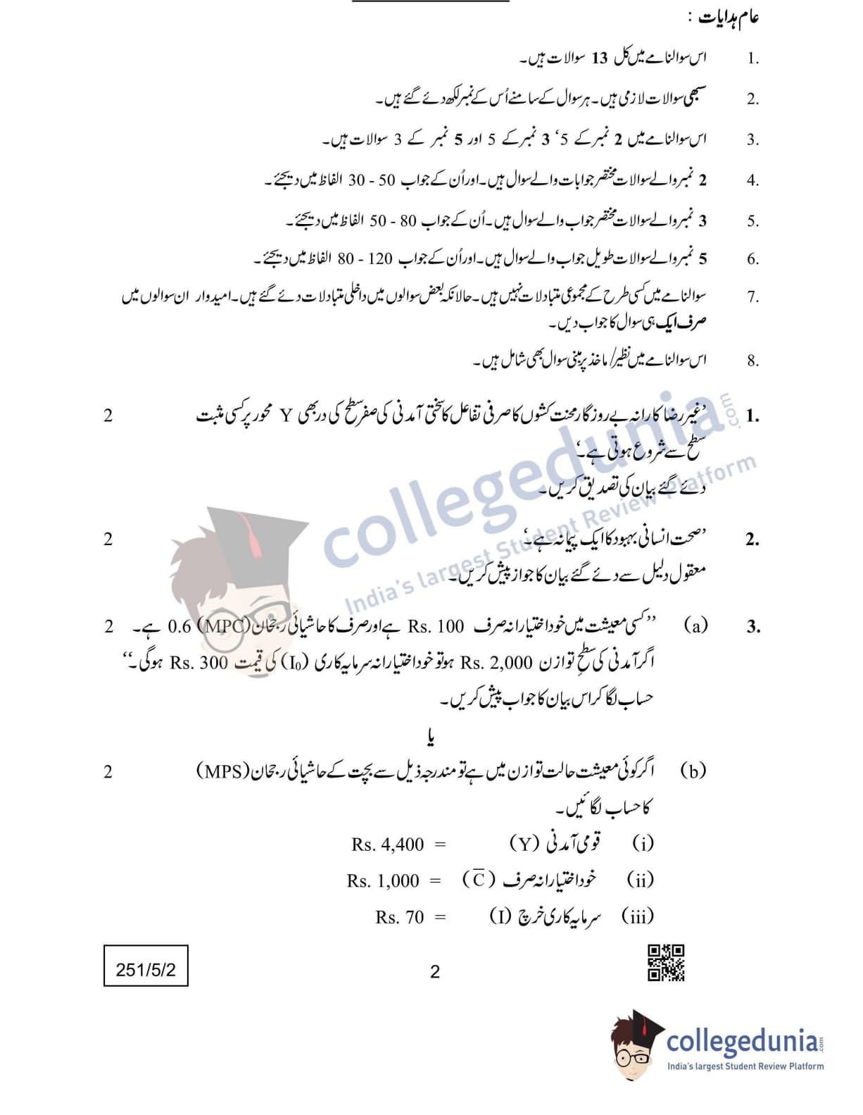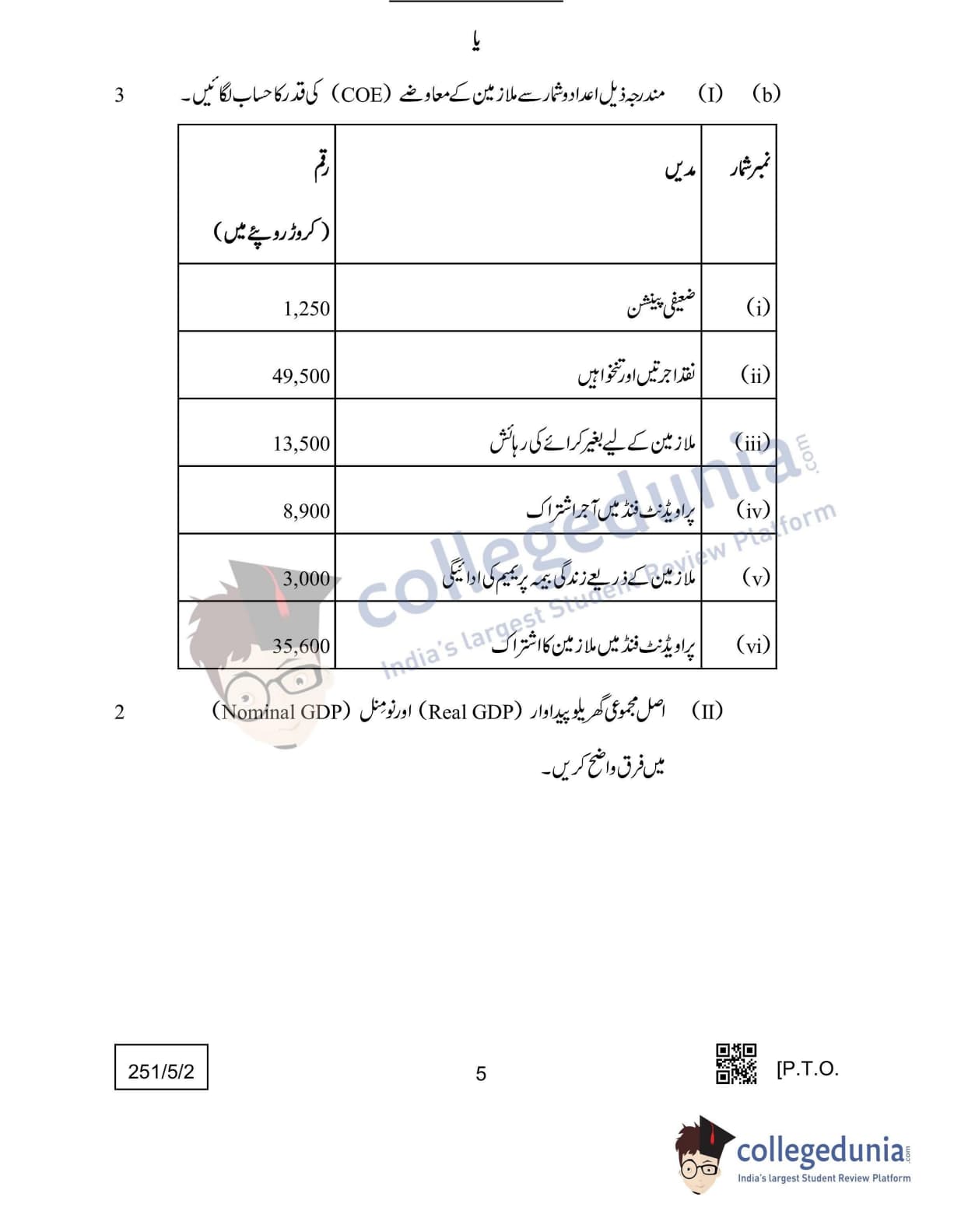 CBSE Class 12 Economics Question Paper 2022 with Answer Key (May 28, Set 2 - 251/5/2- Morning Session)