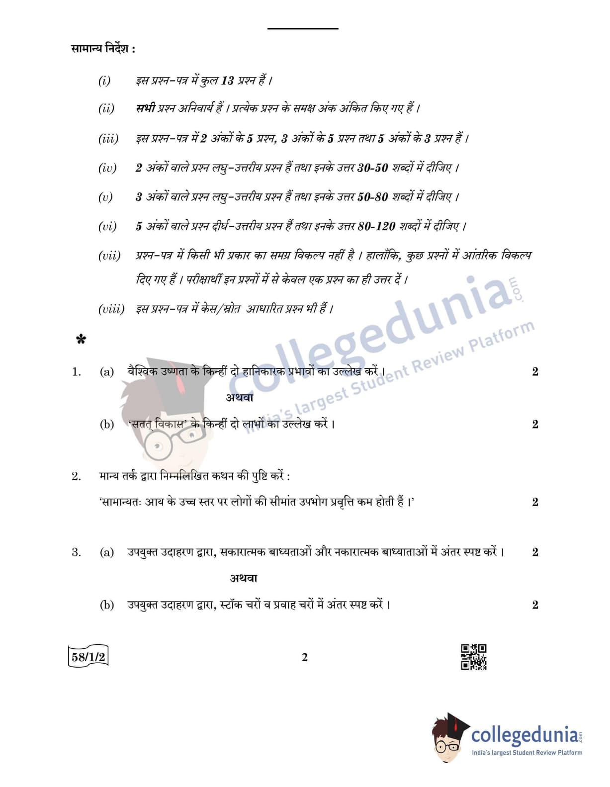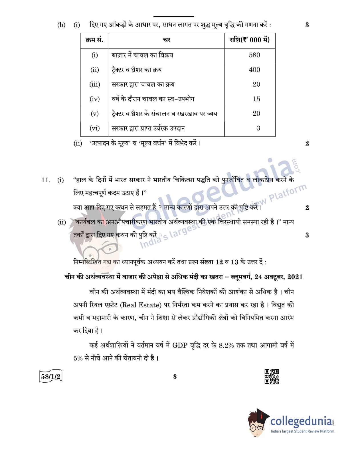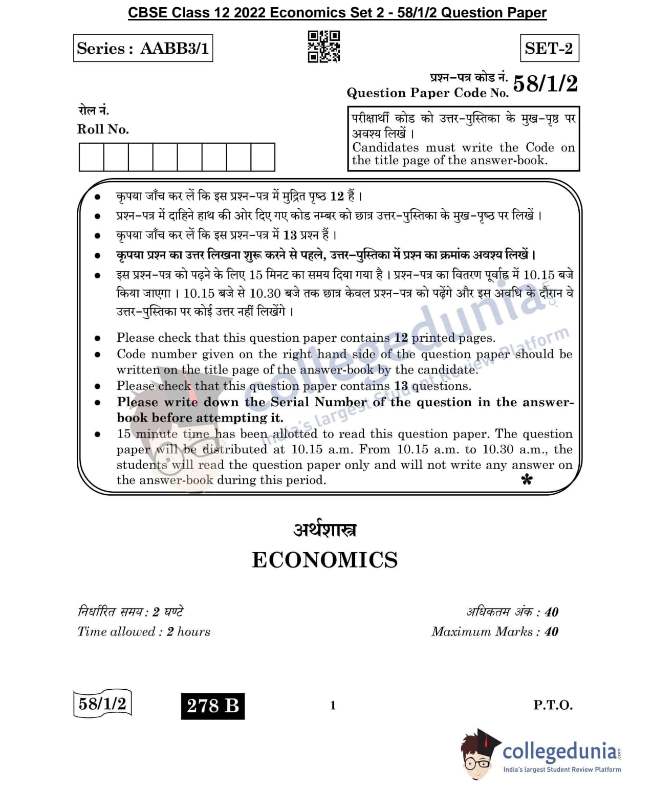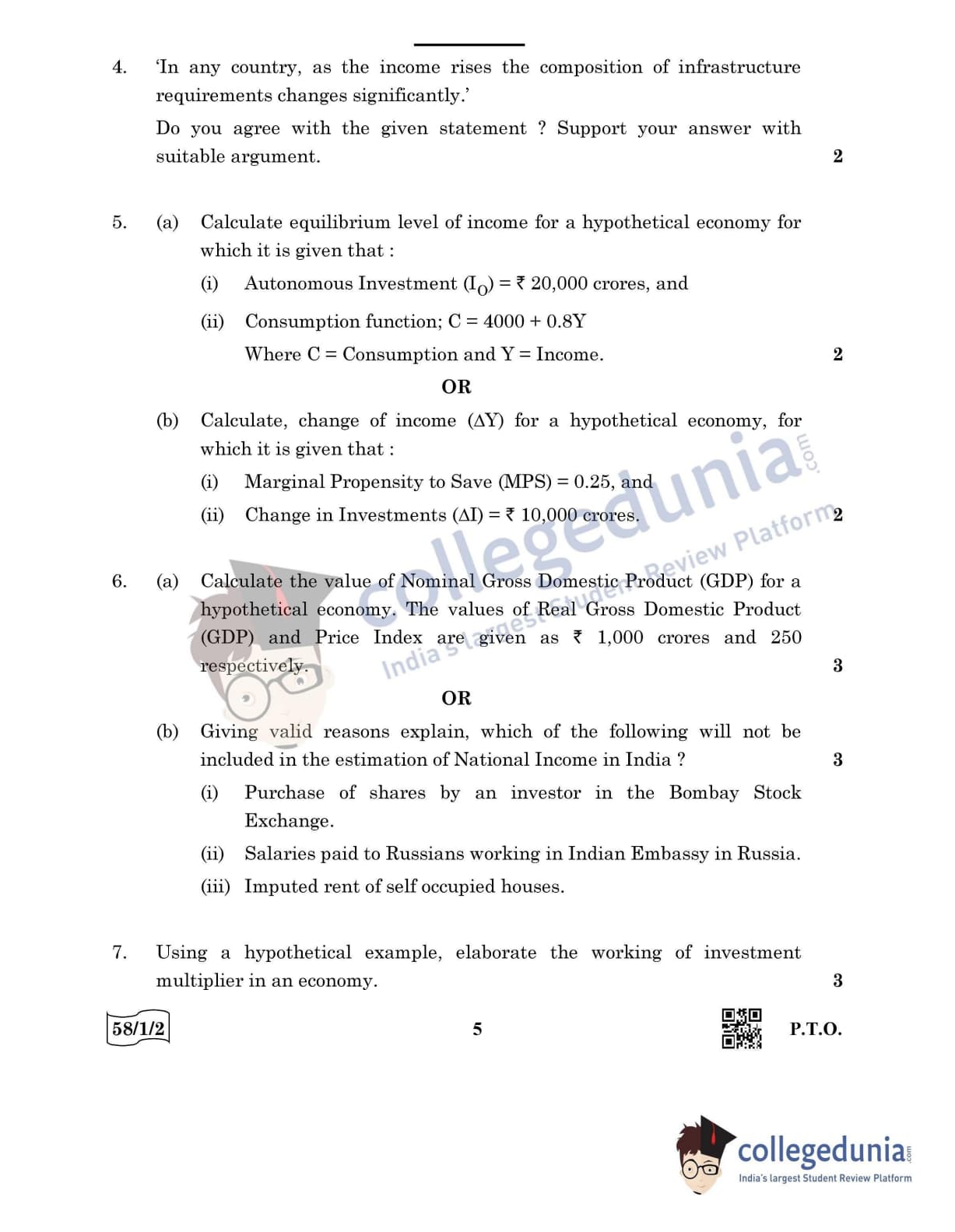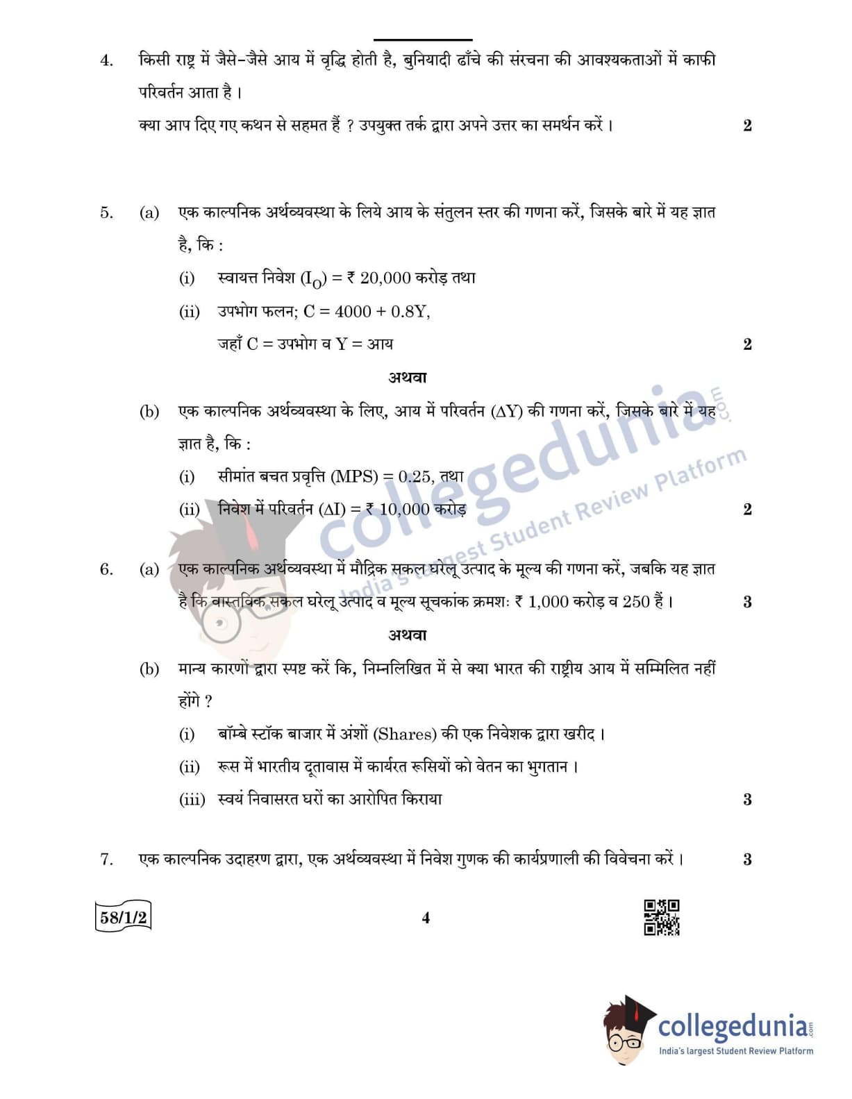 CBSE Class 12 Economics Question Paper 2022 with Answer Key (May 28, Set 2 - 58/1/2- Morning Session)