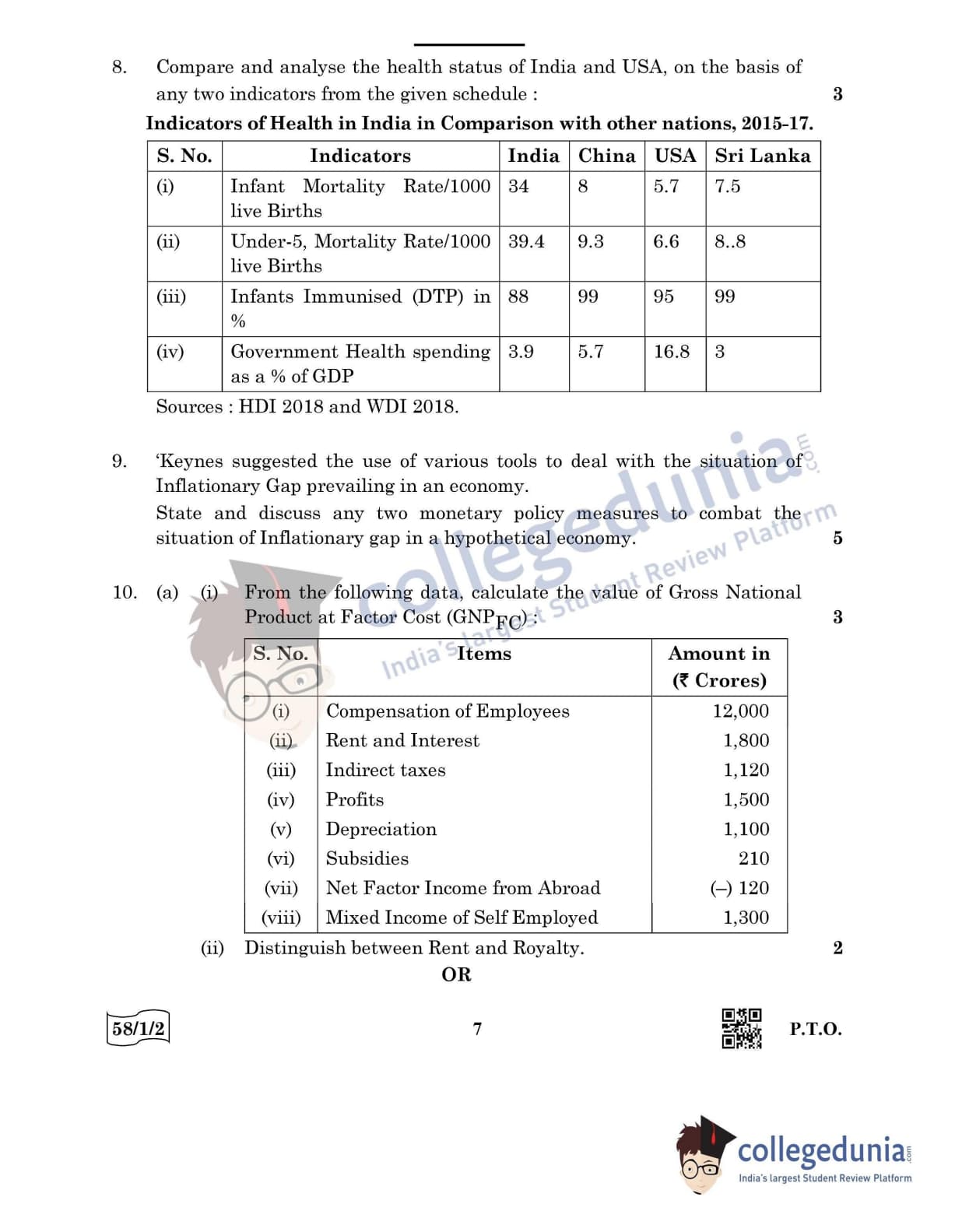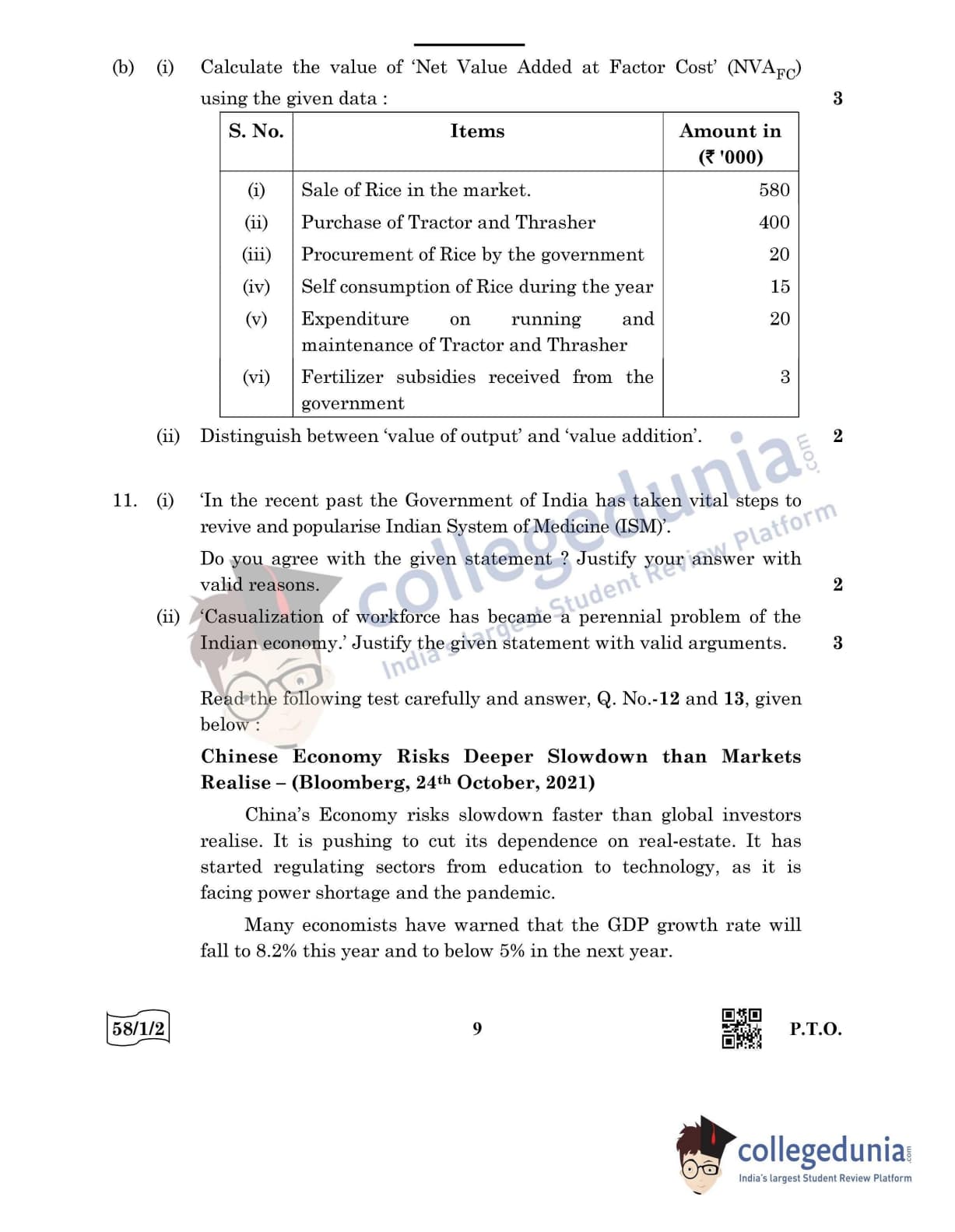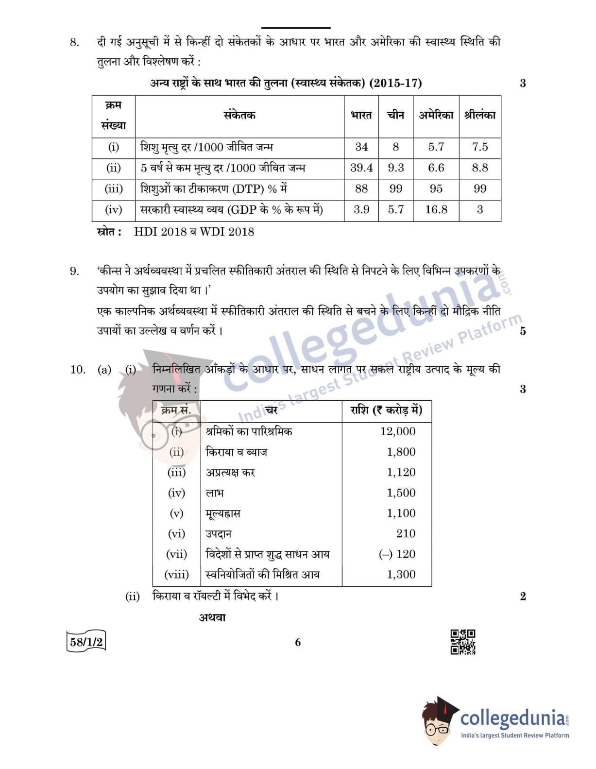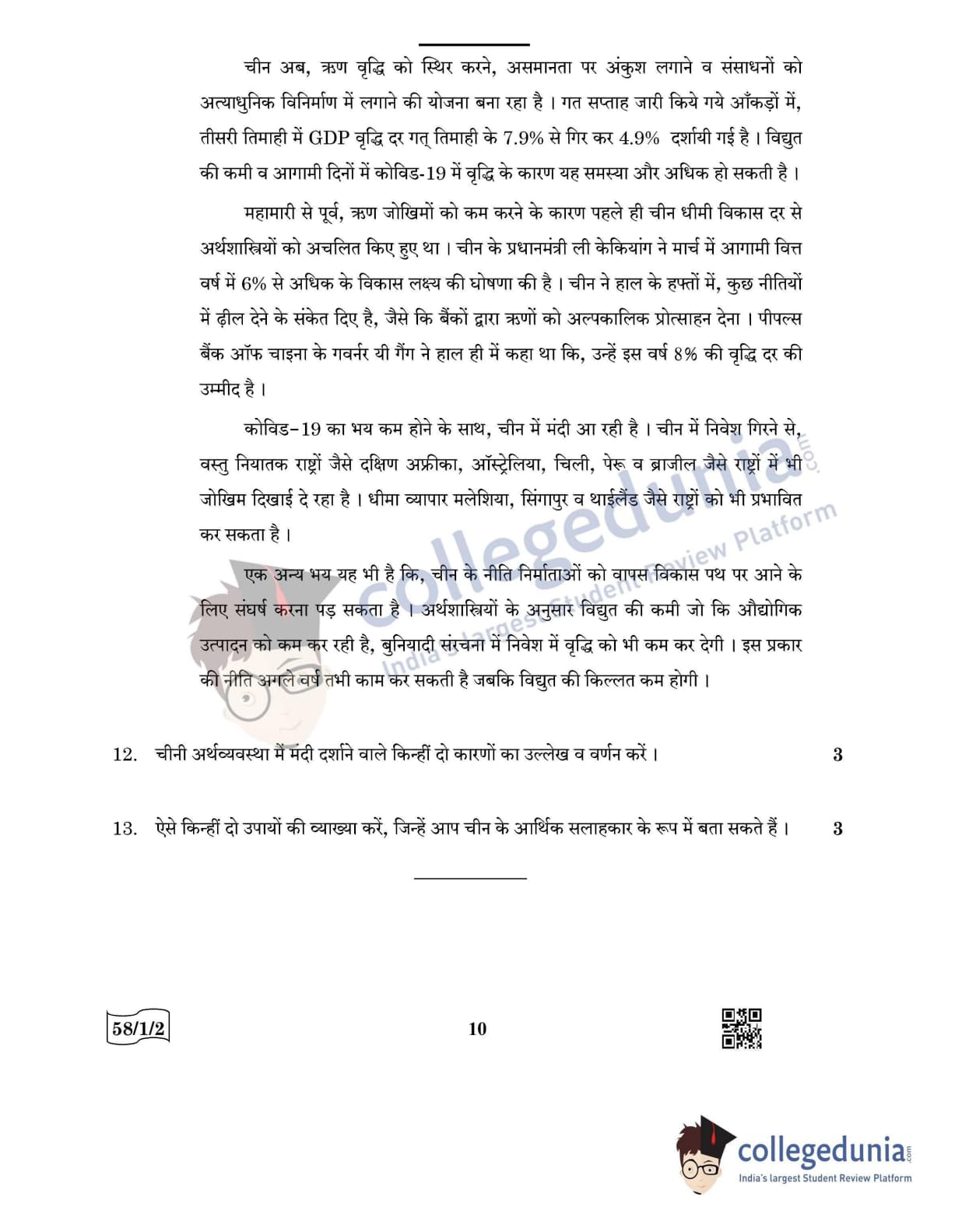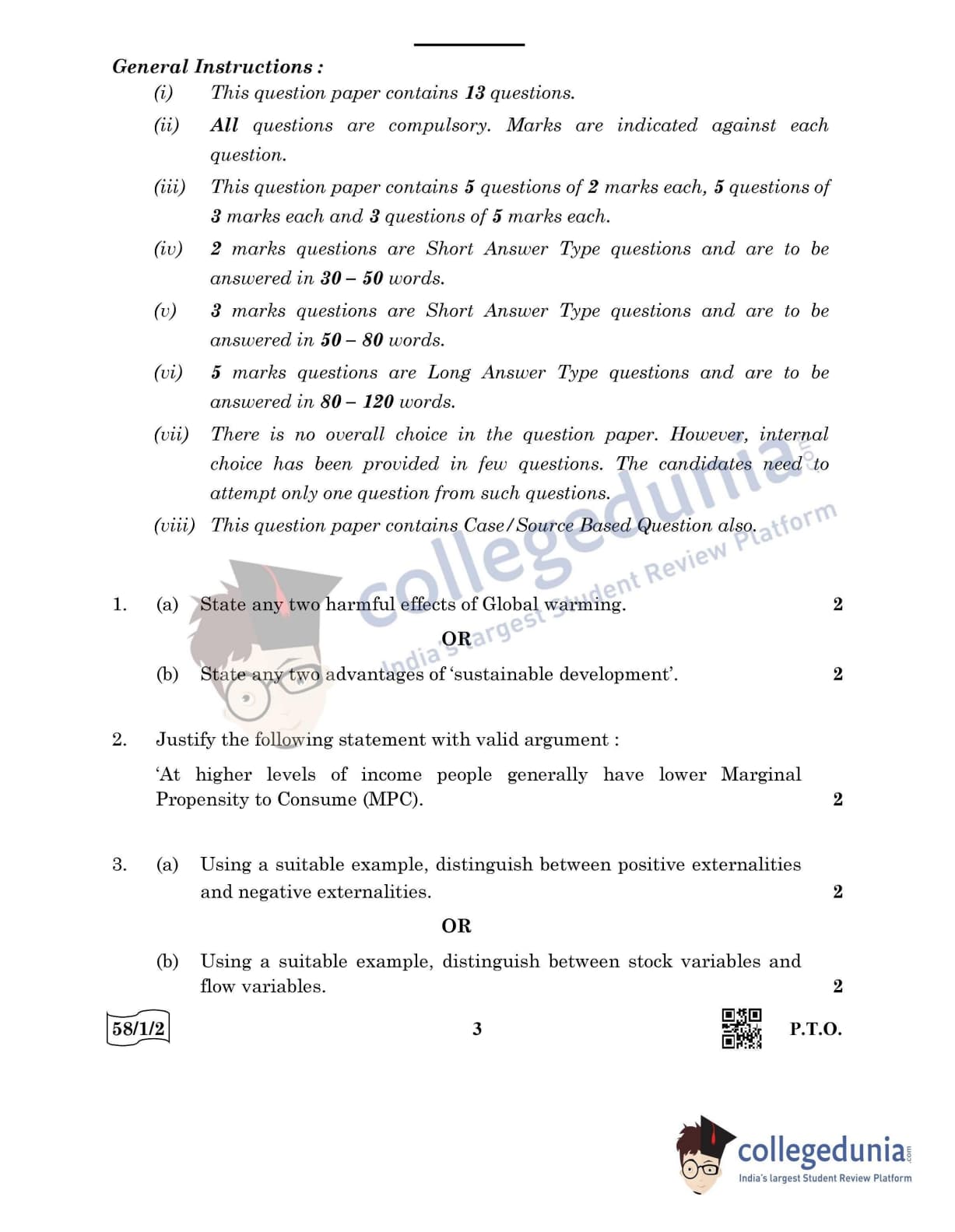 CBSE Class 12 Economics Question Paper 2022 with Answer Key (May 28, Set 2 - 58/1/2- Morning Session)