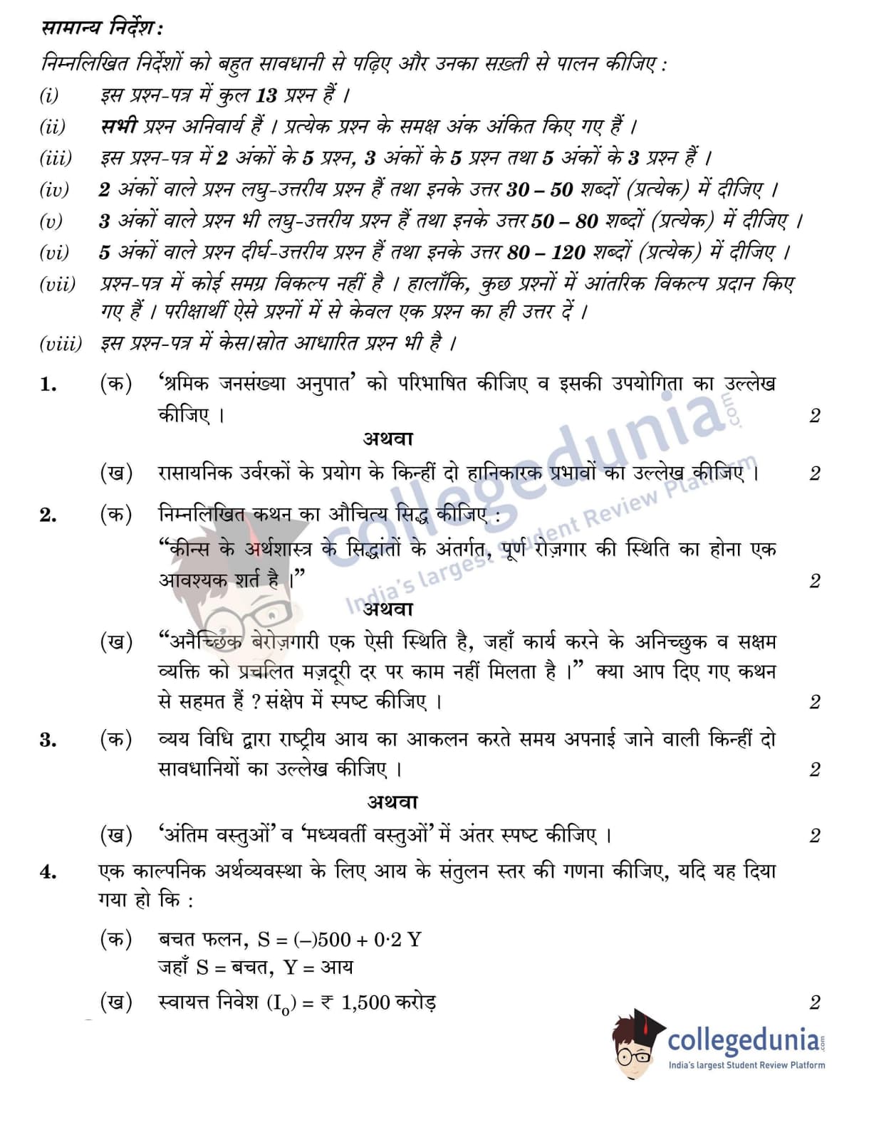 CBSE Class 12 2022 Economics Question Paper Set 2 - 58/2/2 with Answer Key pdf is available for download. The exam was conducted by Central Board of Secondary Education on May 28, 2022 in the Morning Session 10:30 AM to 12:30 PM. The medium of paper was English & Hindi. In terms of difficulty level, CBSE Class 12 Economics paper was of Moderate level. The question paper comprised a total of 13 questions.