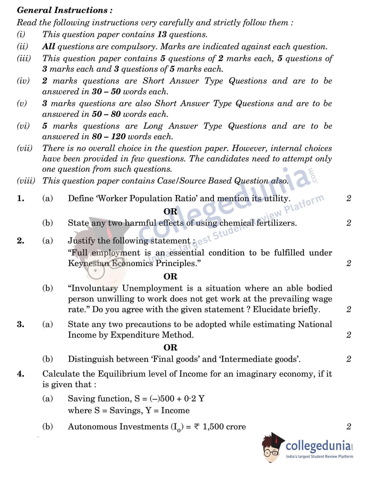CBSE Class 12 Economics Question Paper 2022 with Answer Key (May 28, Set 2 - 58/2/2- Morning Session)