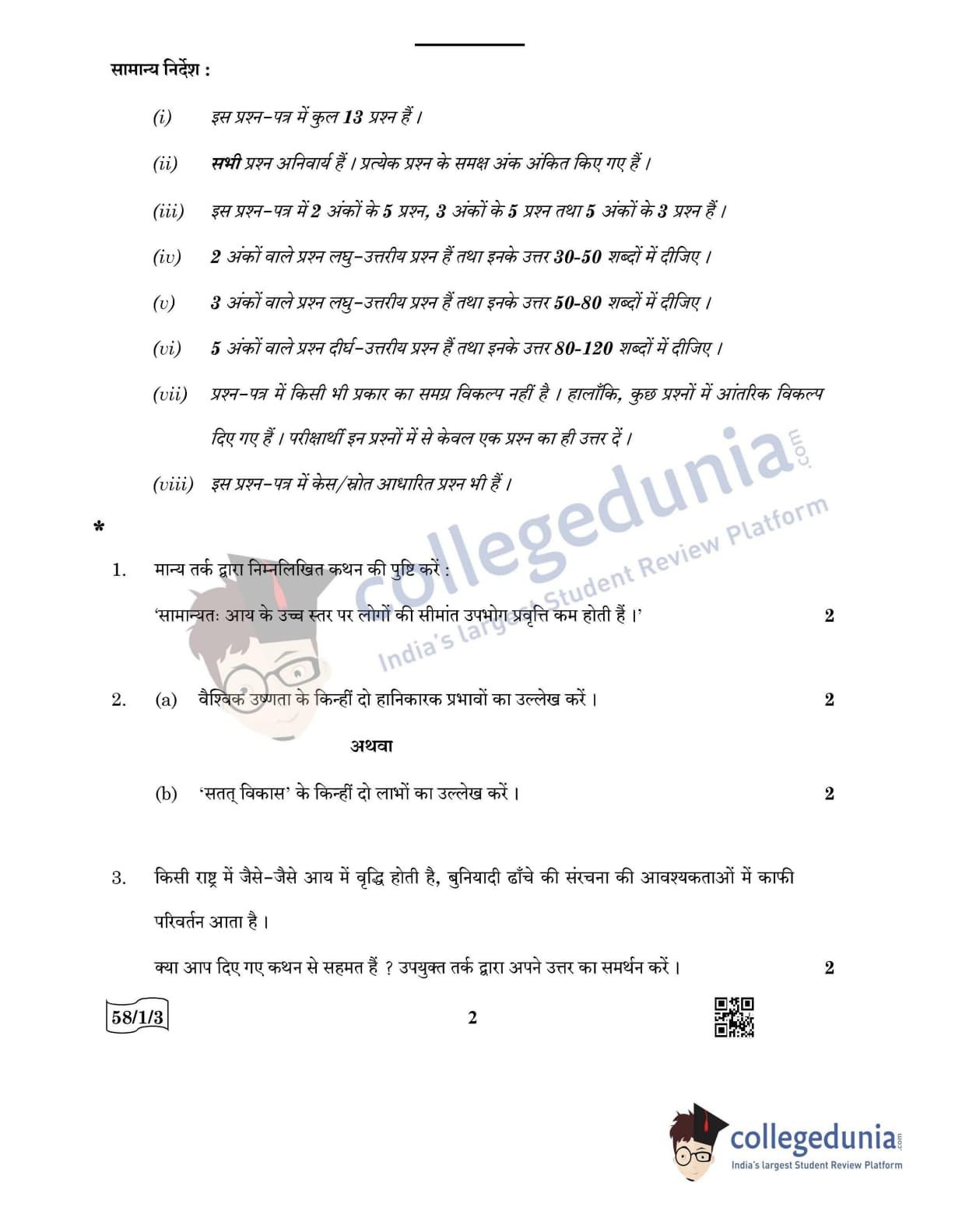 CBSE Class 12 2022 Economics Question Paper Set 3 - 58/1/3 with Answer Key pdf is available for download. The exam was conducted by Central Board of Secondary Education on May 28, 2022 in the Morning Session 10:30 AM to 12:30 PM. The medium of paper was English & Hindi. In terms of difficulty level, CBSE Class 12 Economics paper was of Moderate level. The question paper comprised a total of 13 questions.