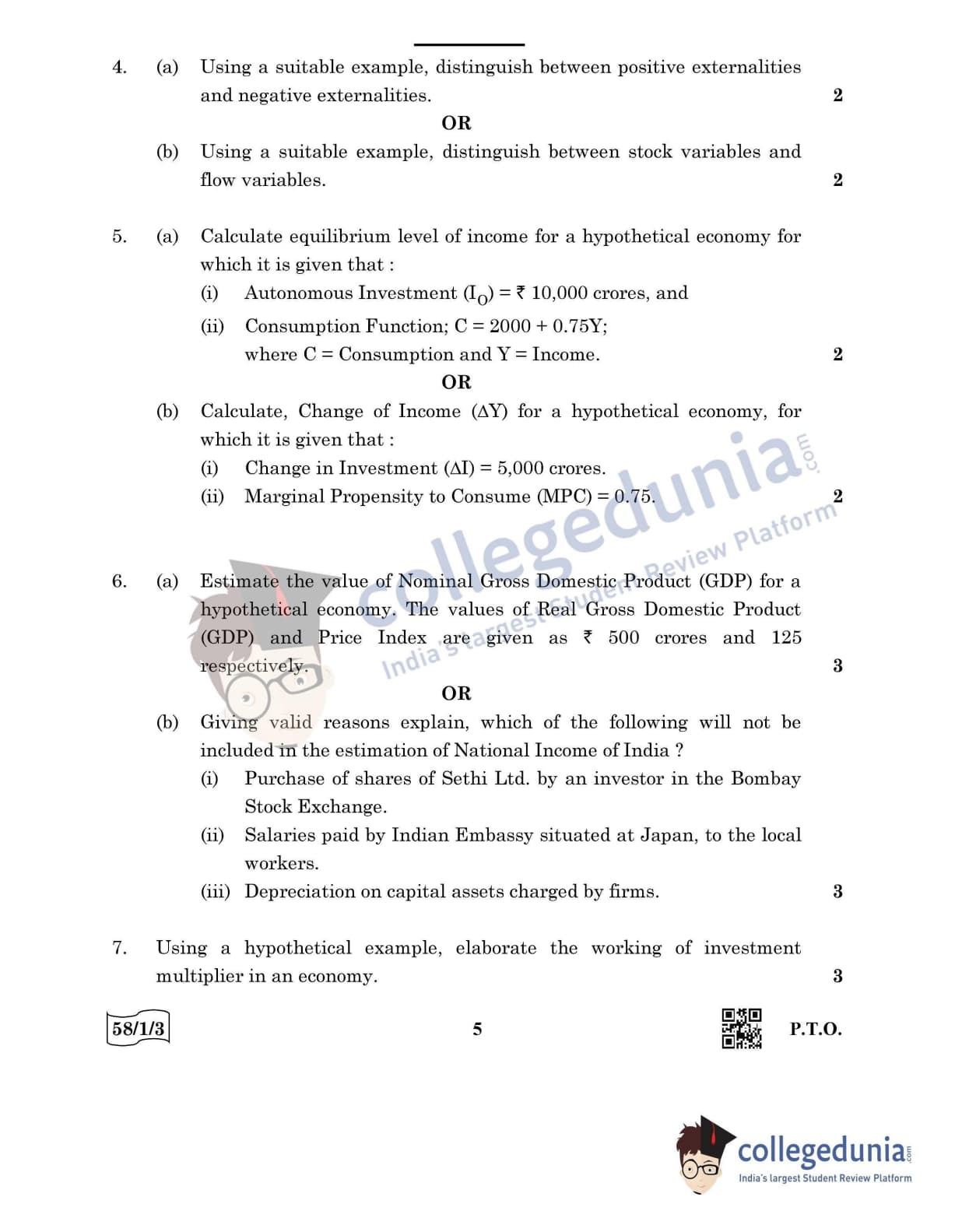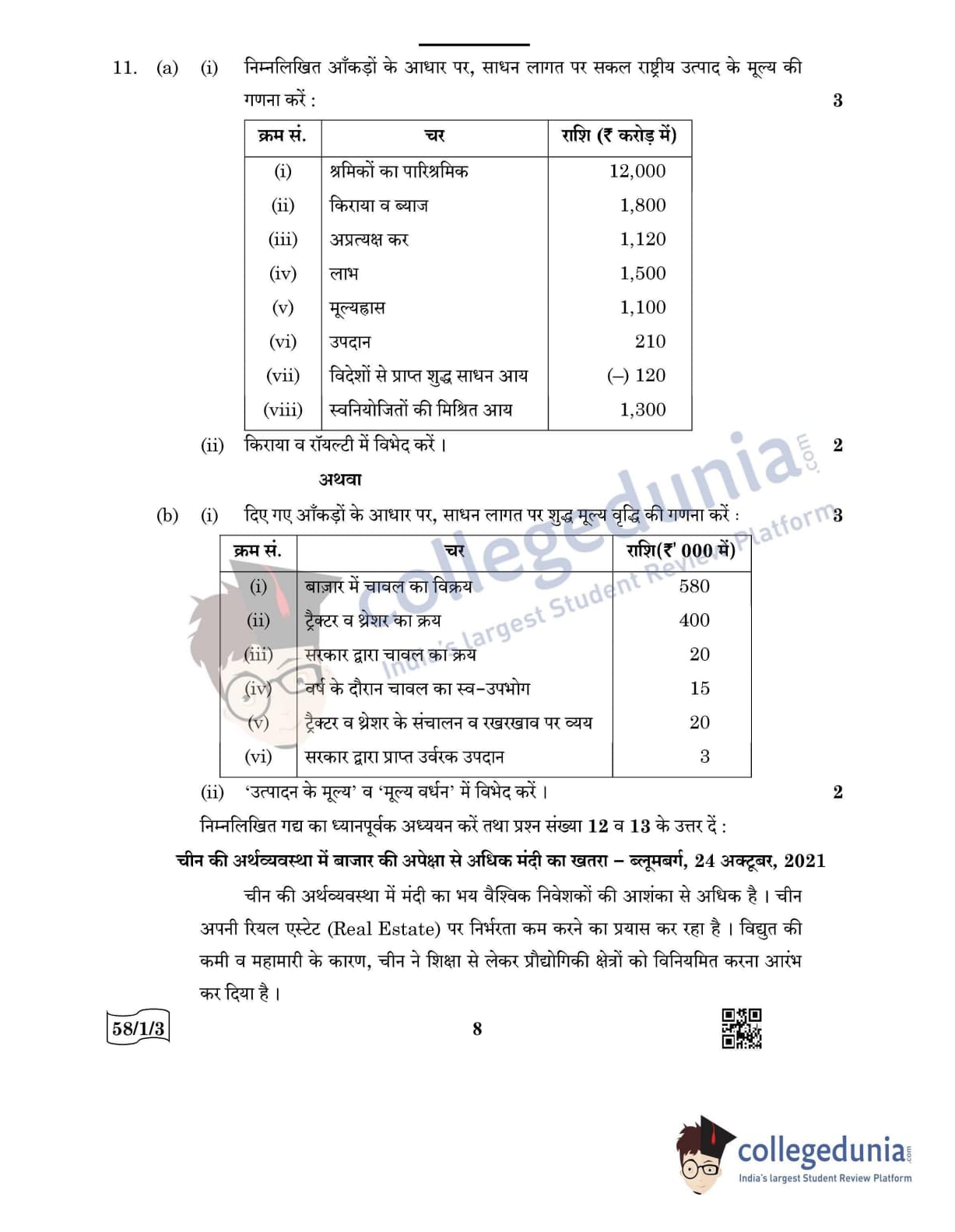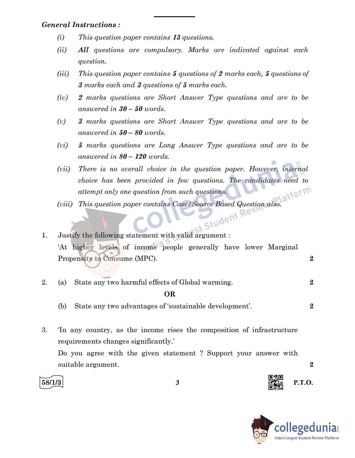 CBSE Class 12 Economics Question Paper 2022 with Answer Key (May 28, Set 3 - 58/1/3- Morning Session)