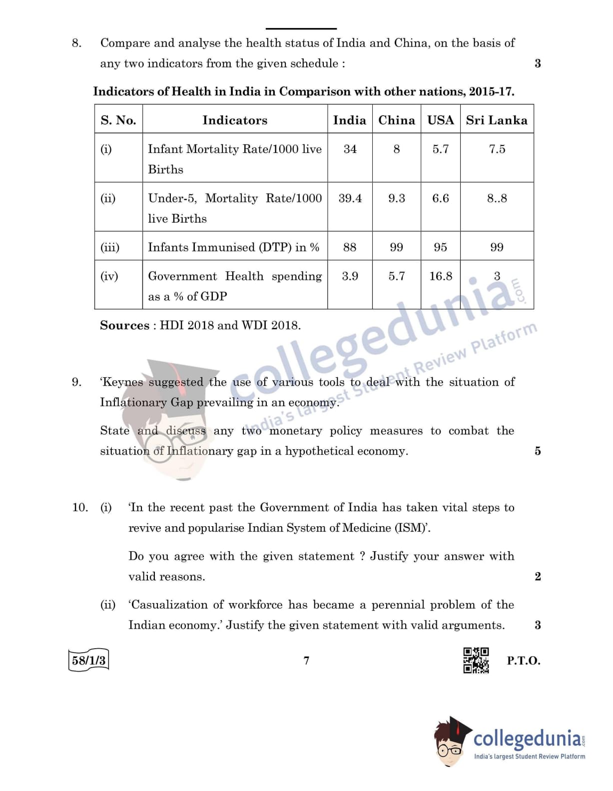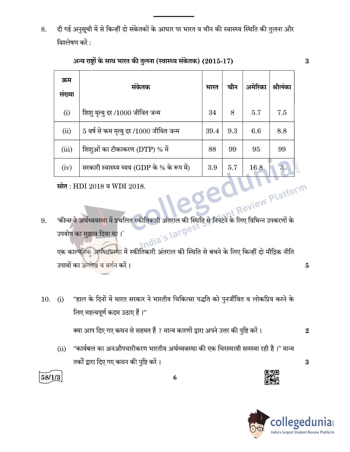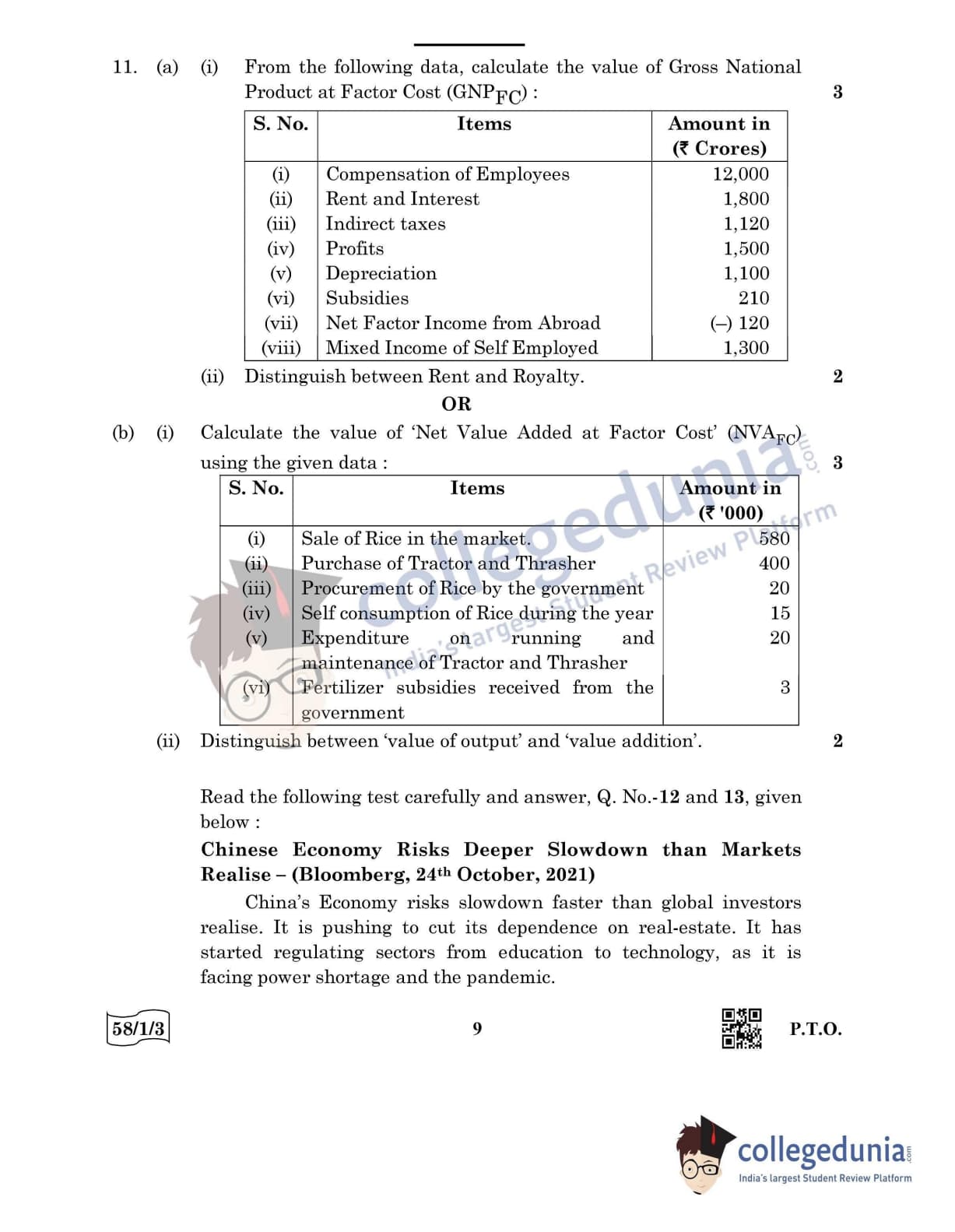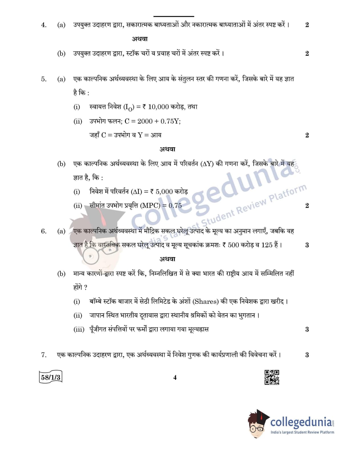 CBSE Class 12 Economics Question Paper 2022 with Answer Key (May 28, Set 3 - 58/1/3- Morning Session)
