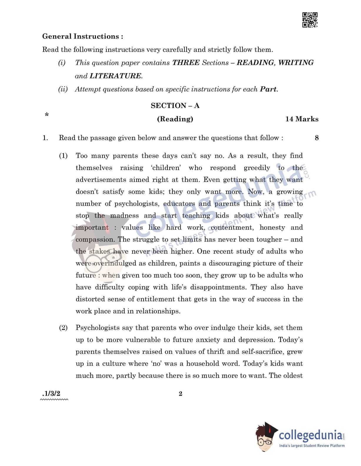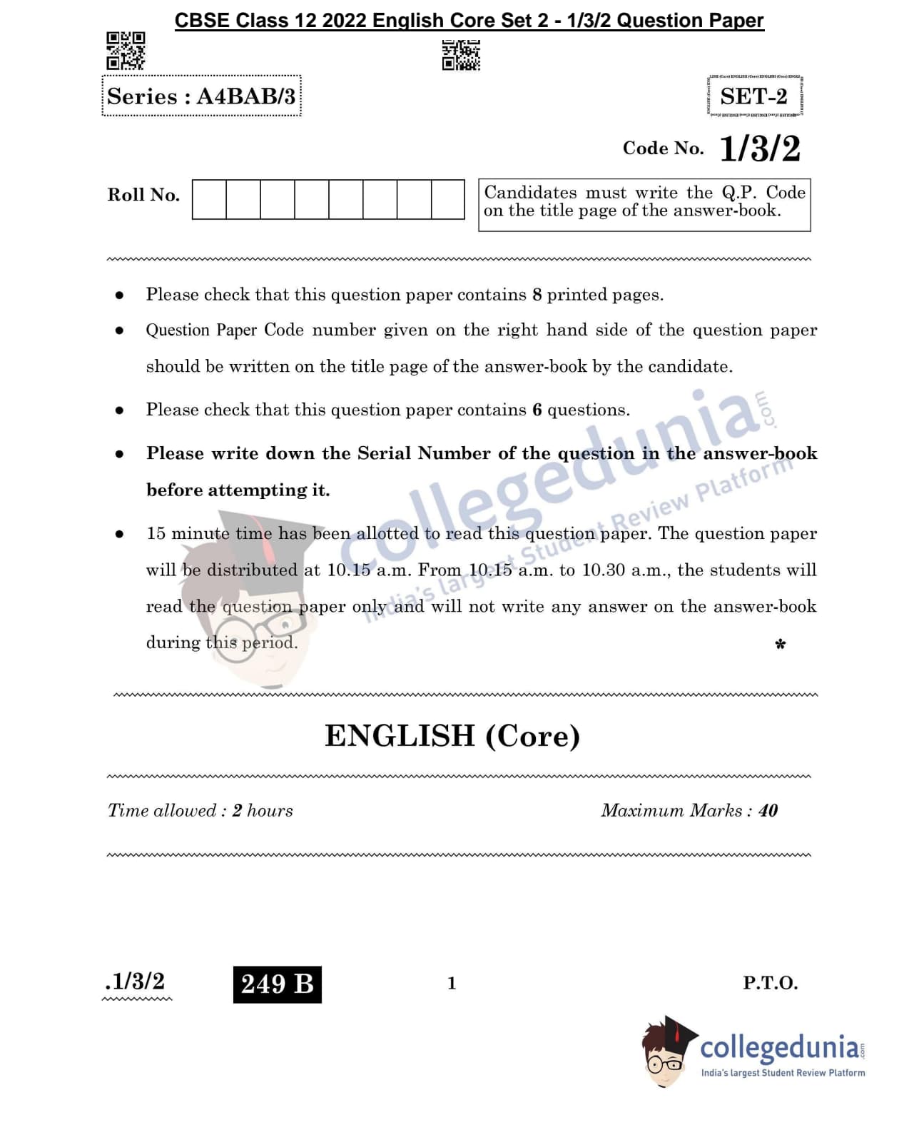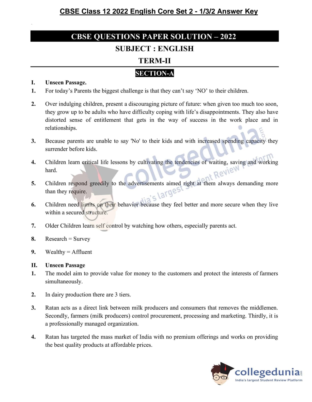 CBSE Class 12 English Core Question Paper 2022 with Answer Key (May 13, Set 2 - 1/3/2- Morning Session)