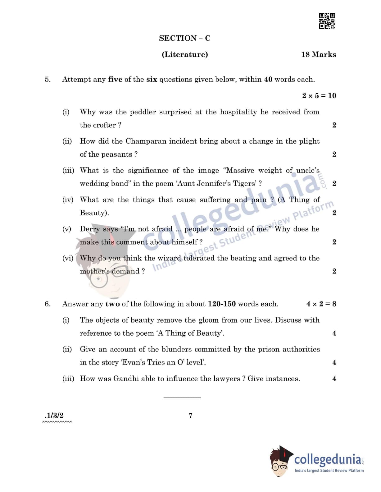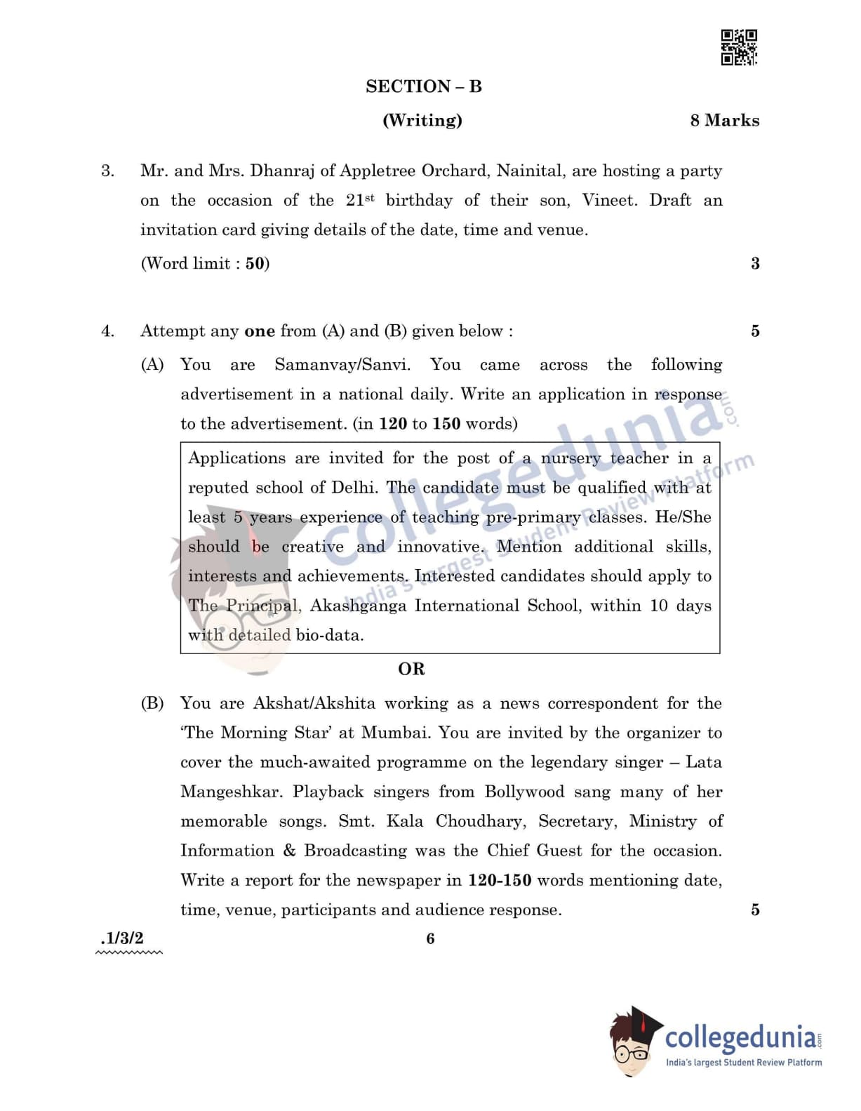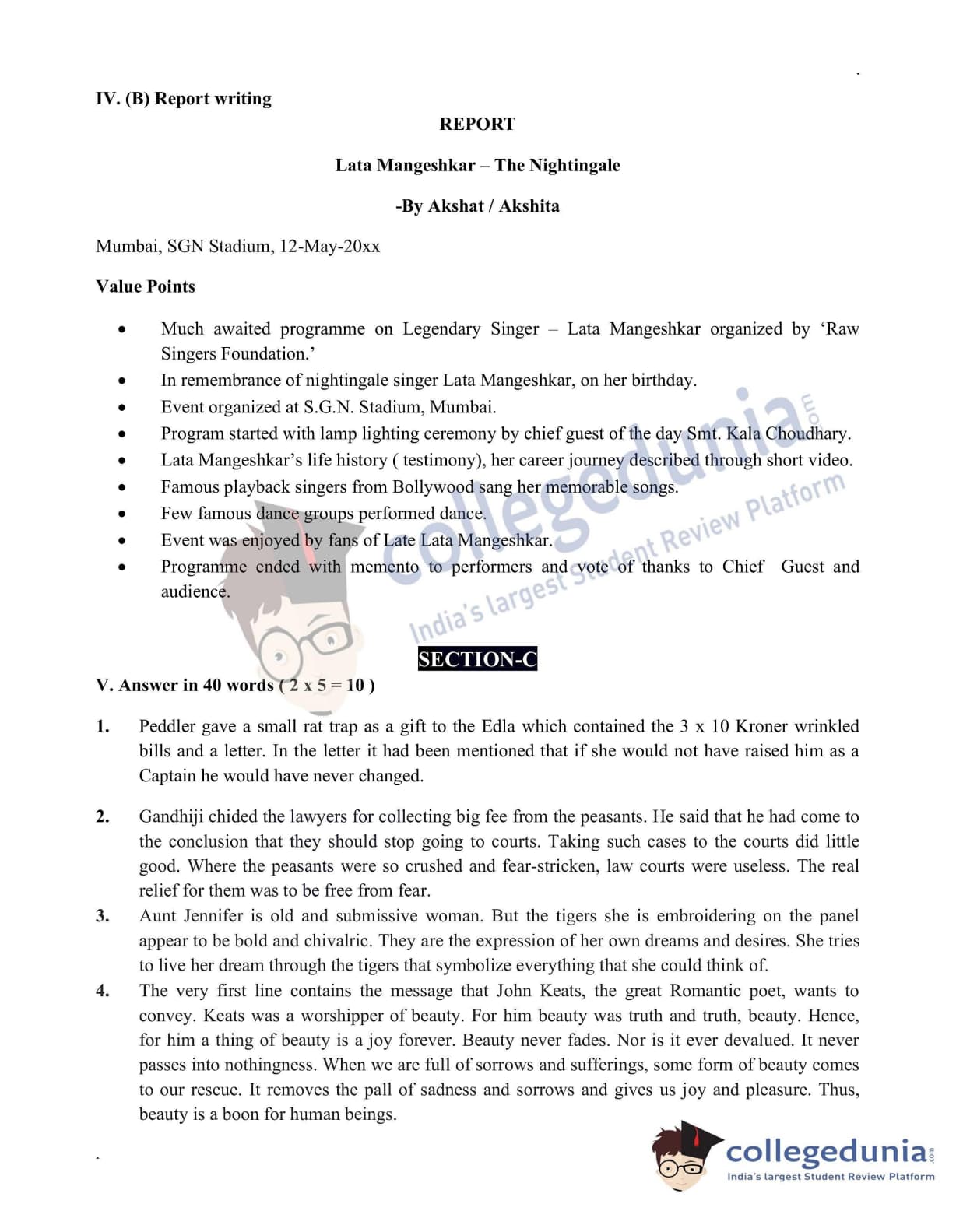 CBSE Class 12 English Core Question Paper 2022 with Answer Key (May 13, Set 2 - 1/3/2- Morning Session)