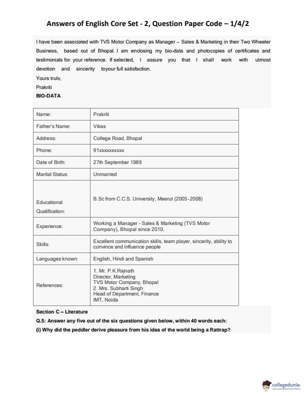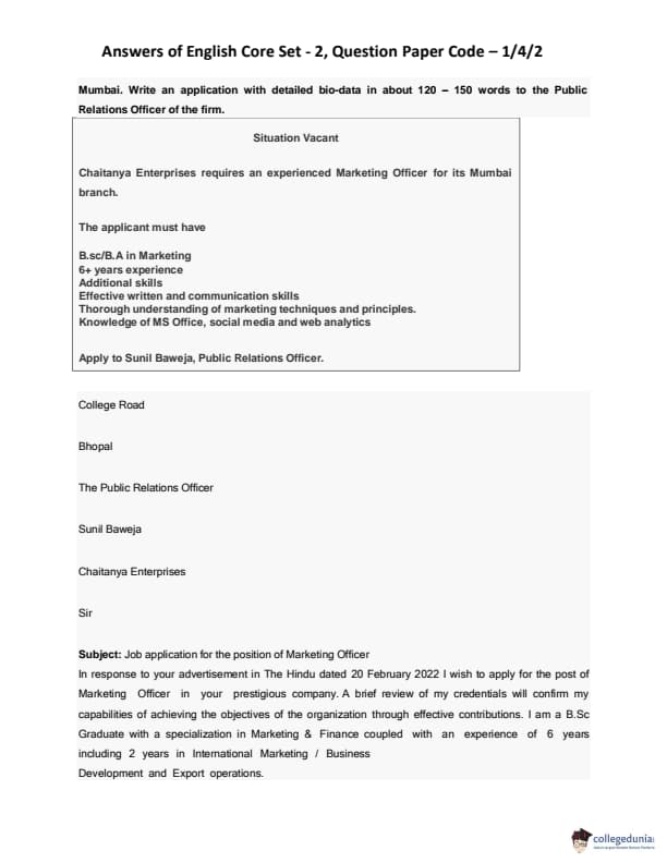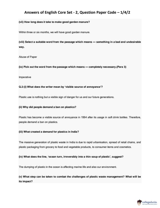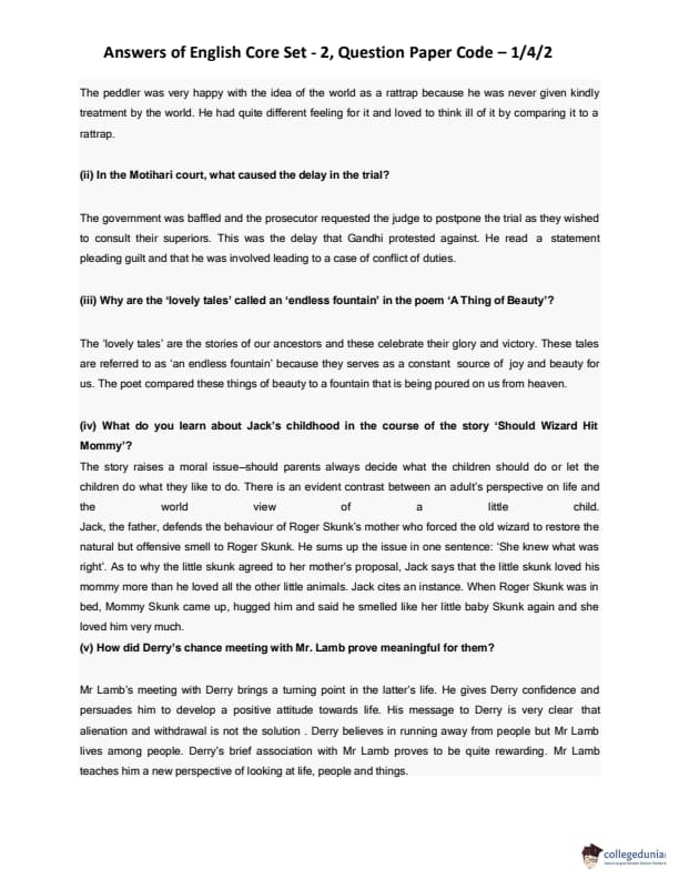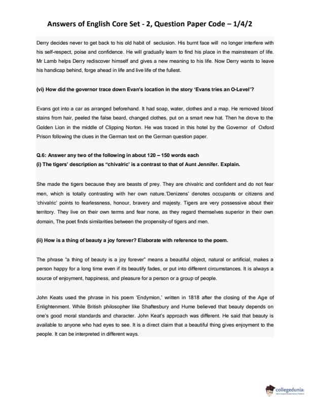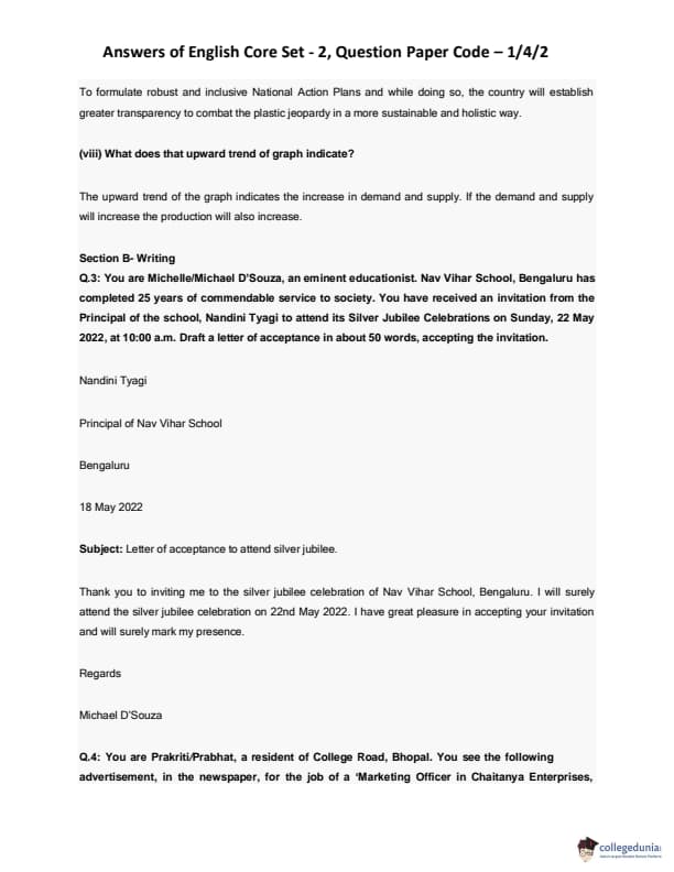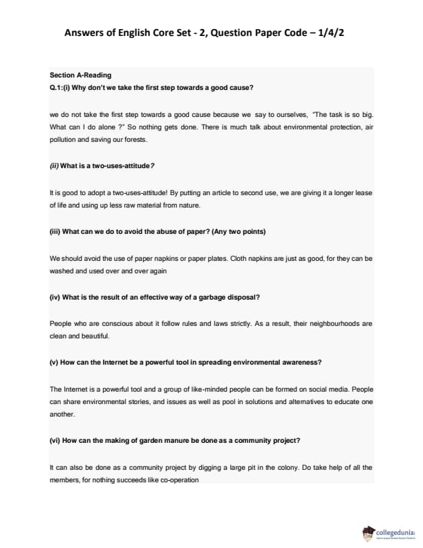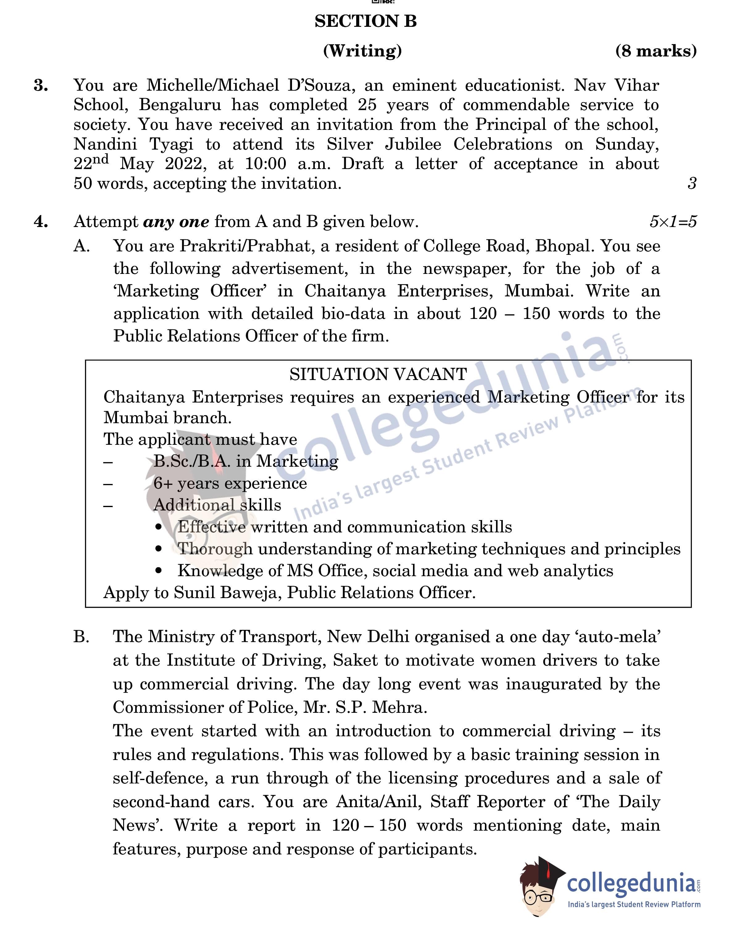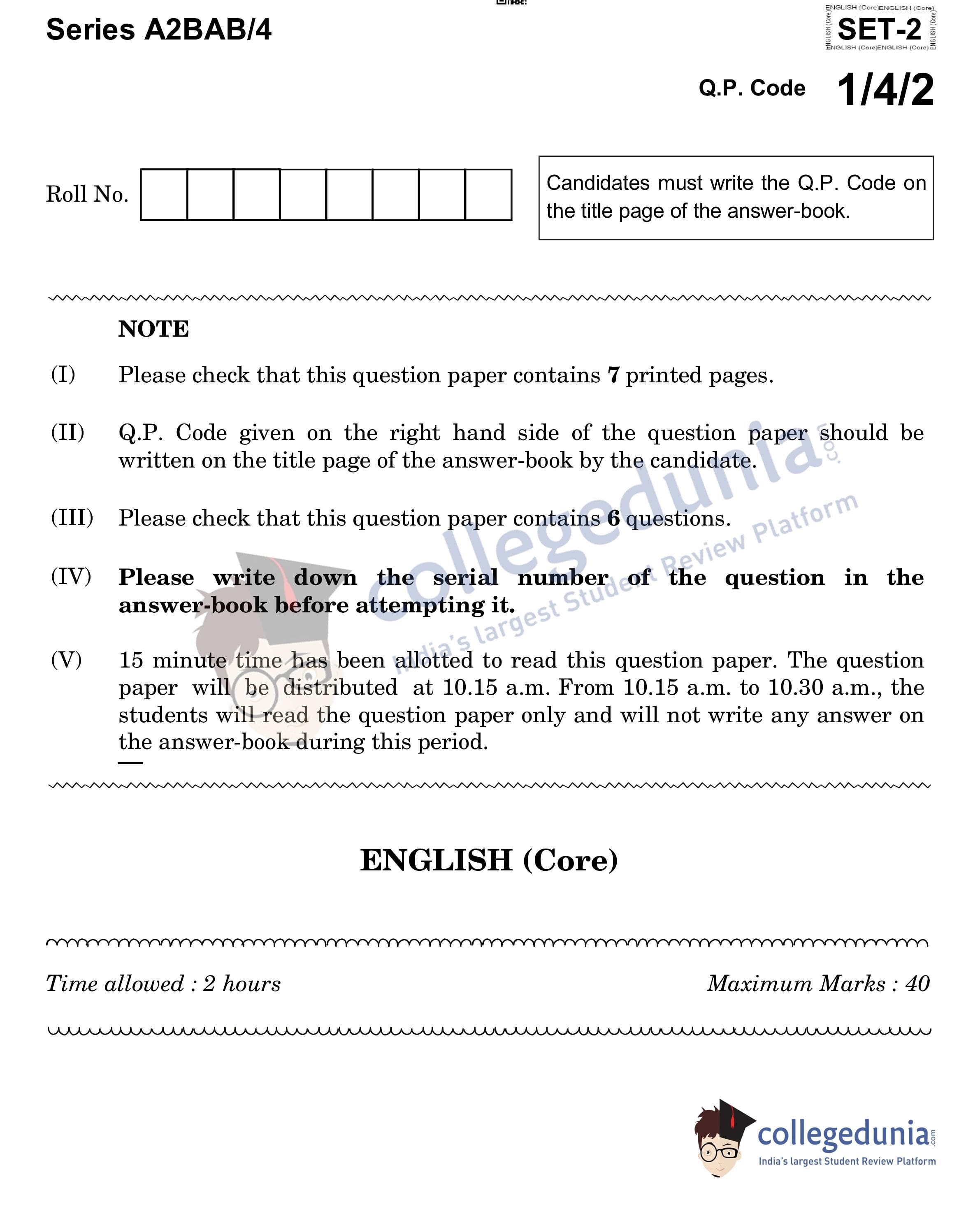 CBSE Class 12 English Core Question Paper 2022 with Answer Key (May 13, Set 2 - 1/4/2- Morning Session)