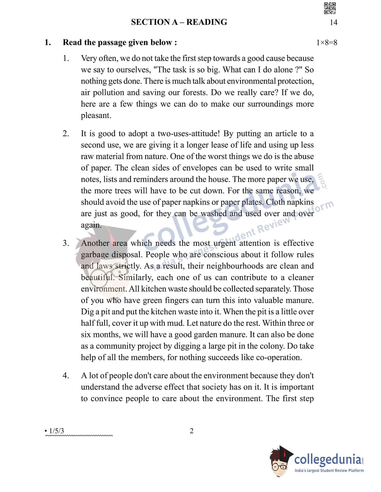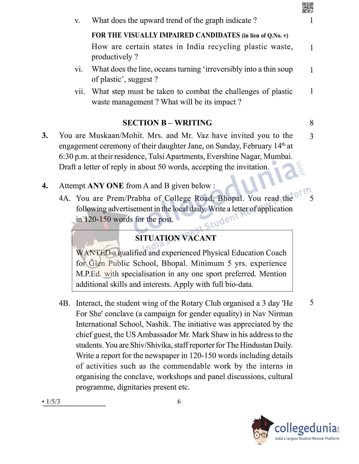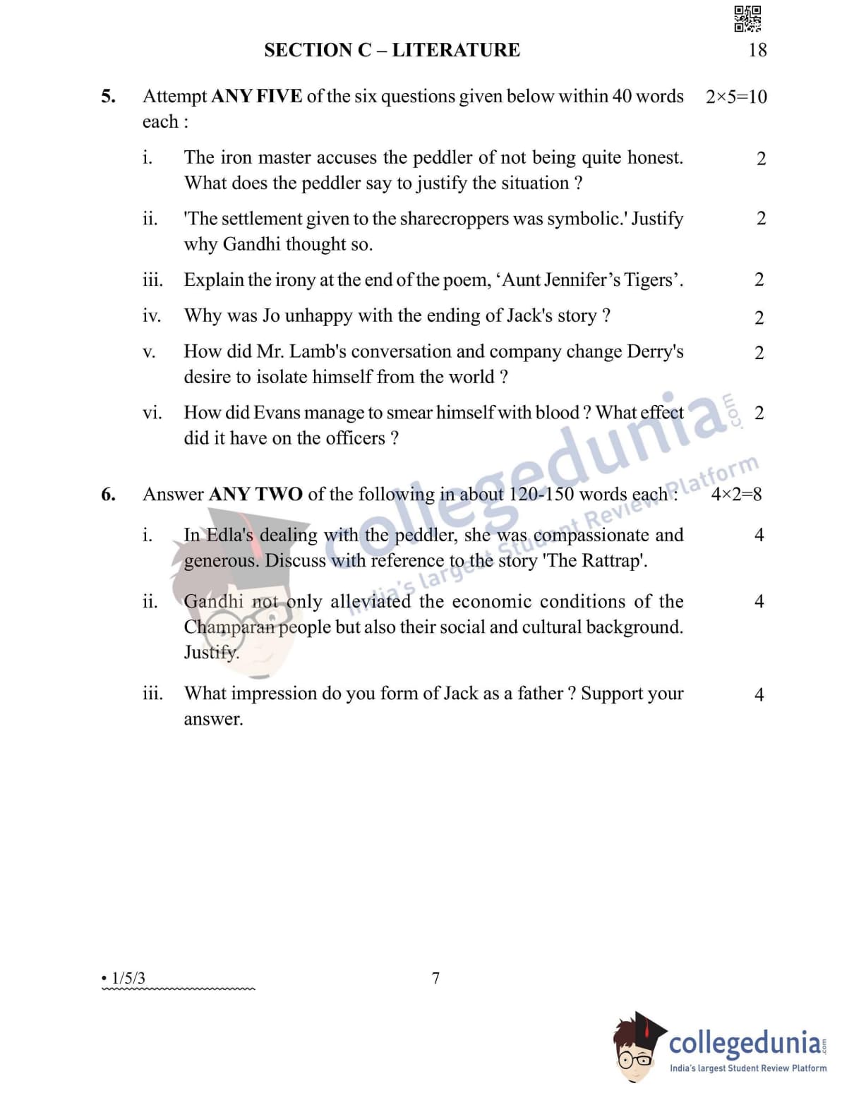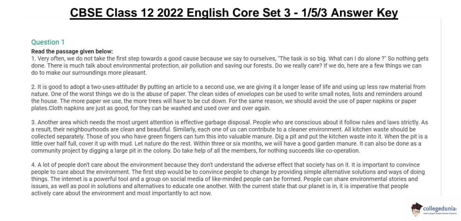 CBSE Class 12 English Core Question Paper 2022 with Answer Key (May 13, Set 3 - 1/5/3- Morning Session)