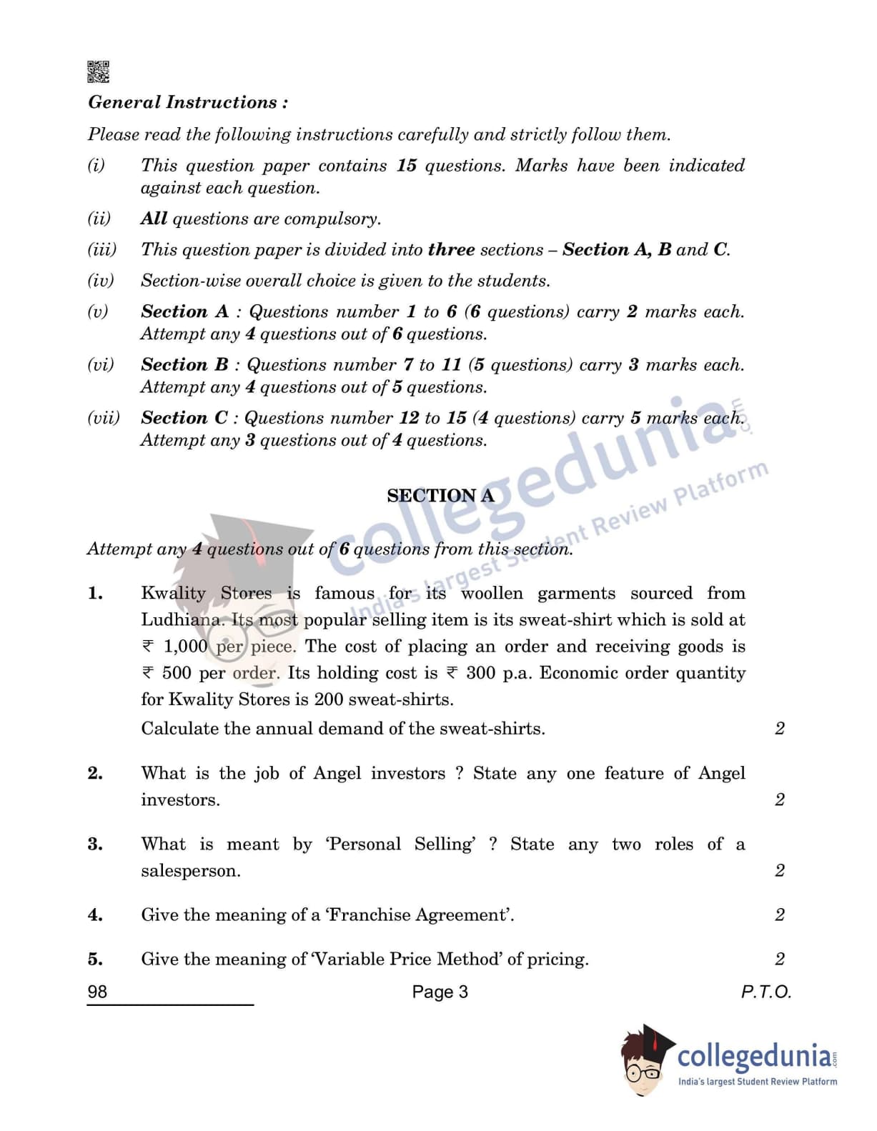 CBSE Class 12 Entrepreneurship Question Paper 2022 with Answer Key (April 26, Set 4- Morning Session)