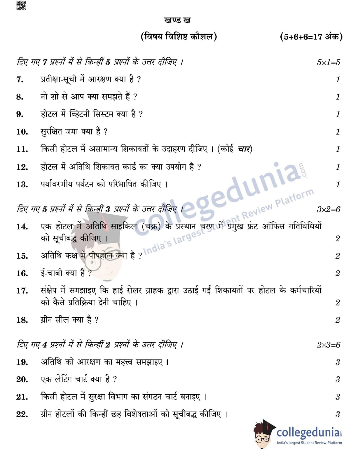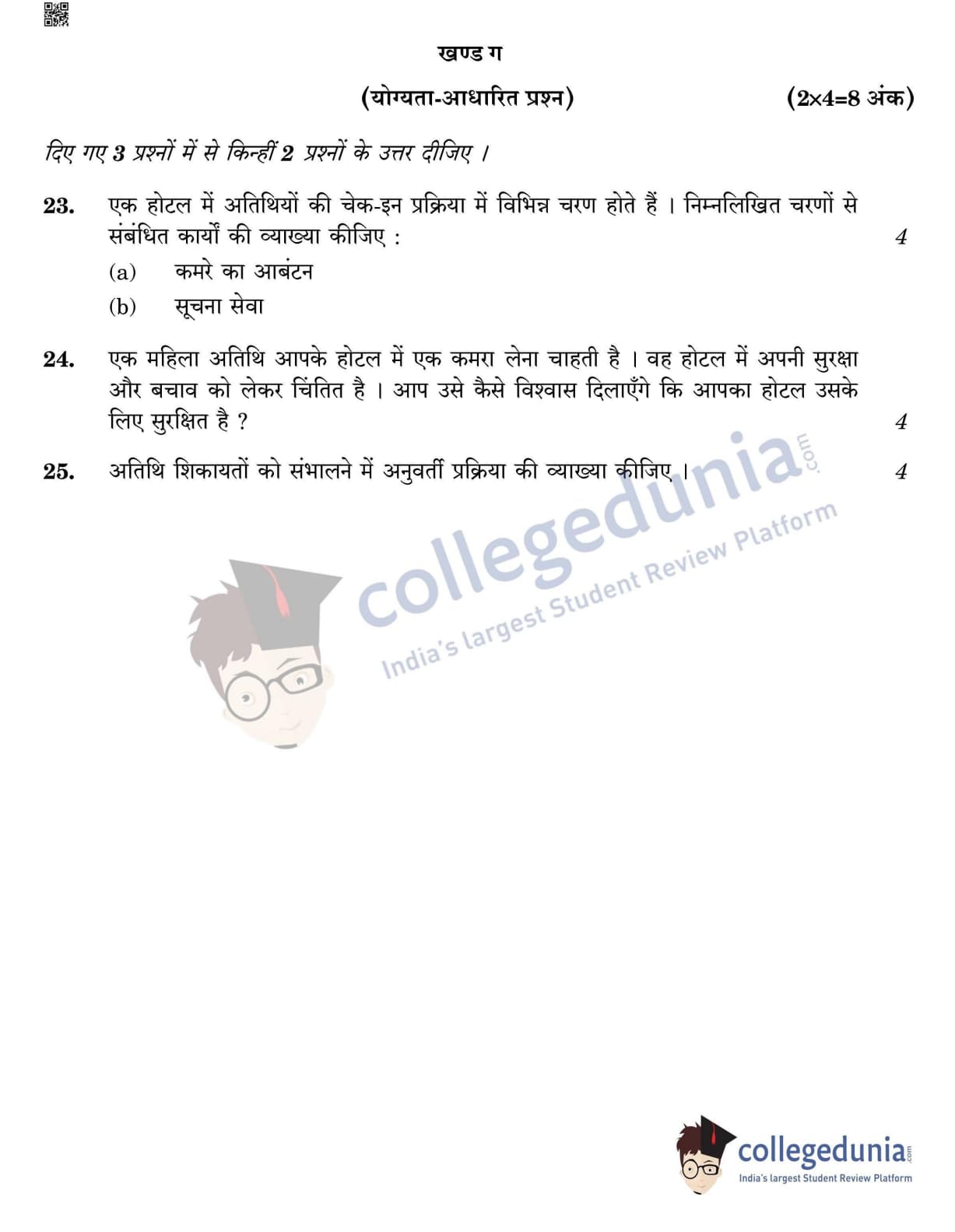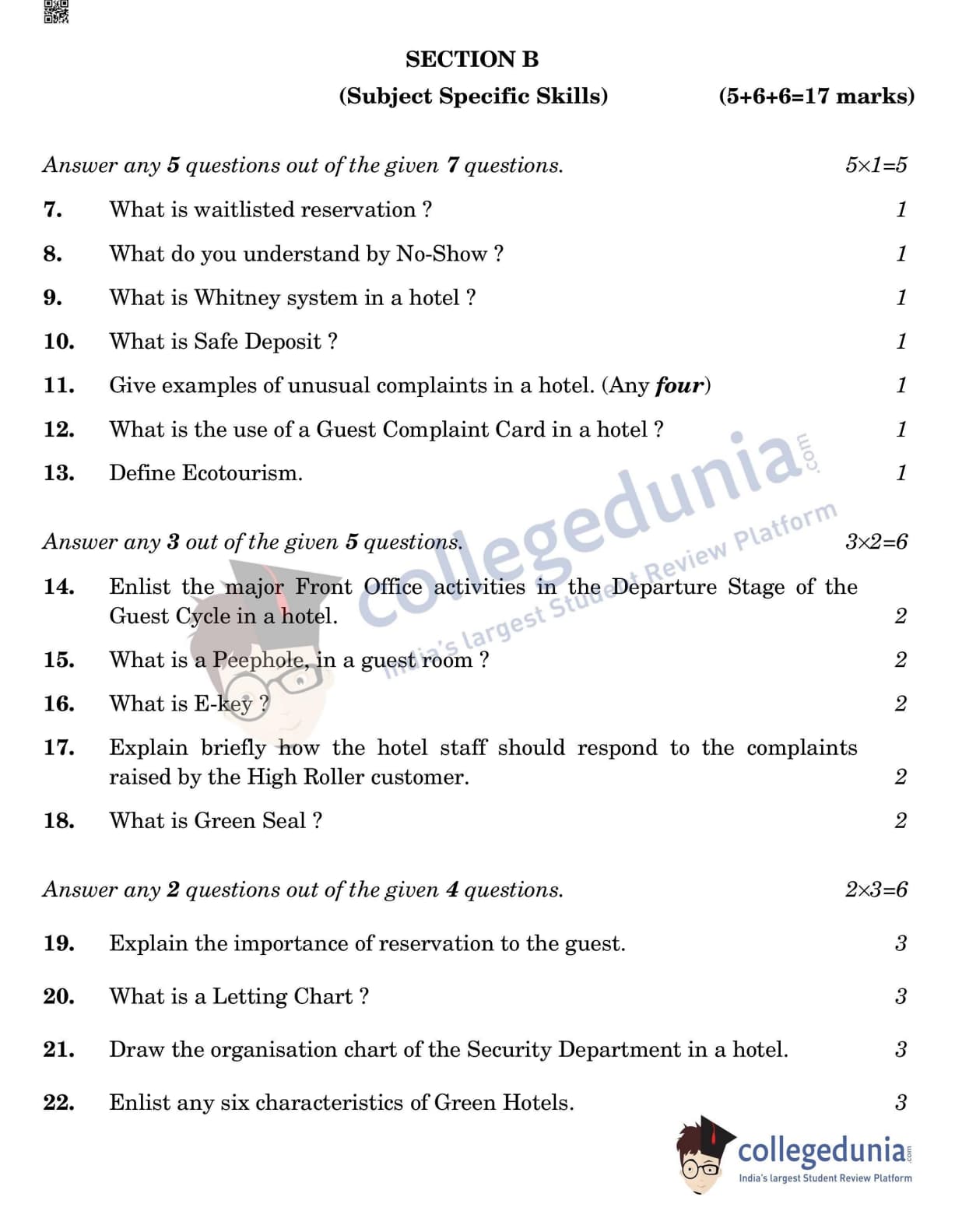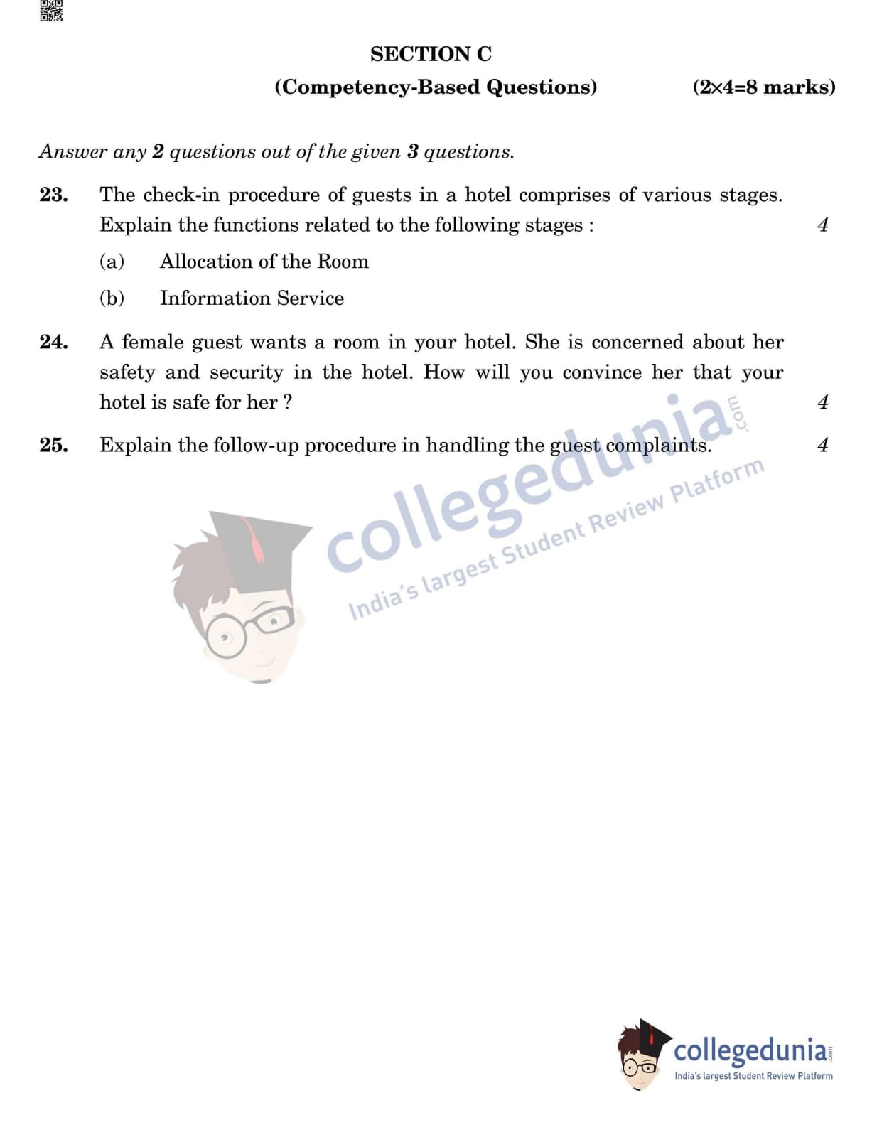 CBSE Class 12 Front Office Operation Question Paper 2022 with Answer Key (May 31, Set 4- Morning Session)