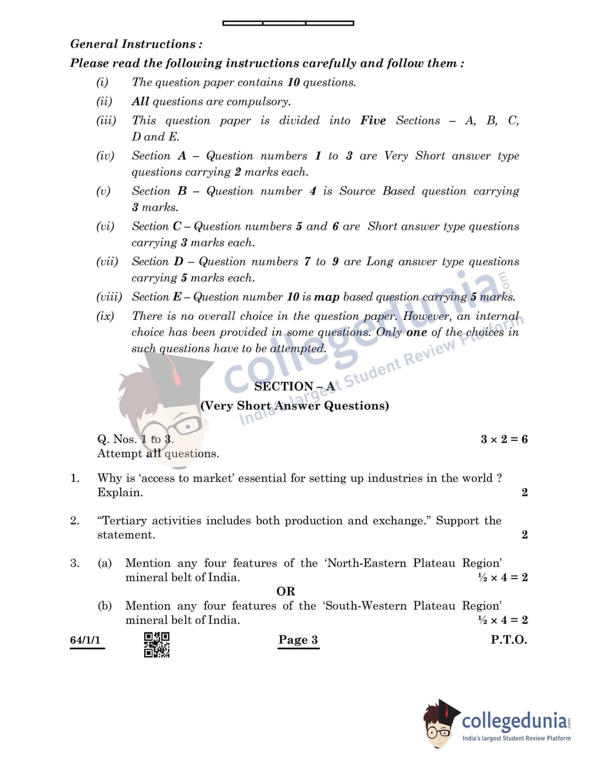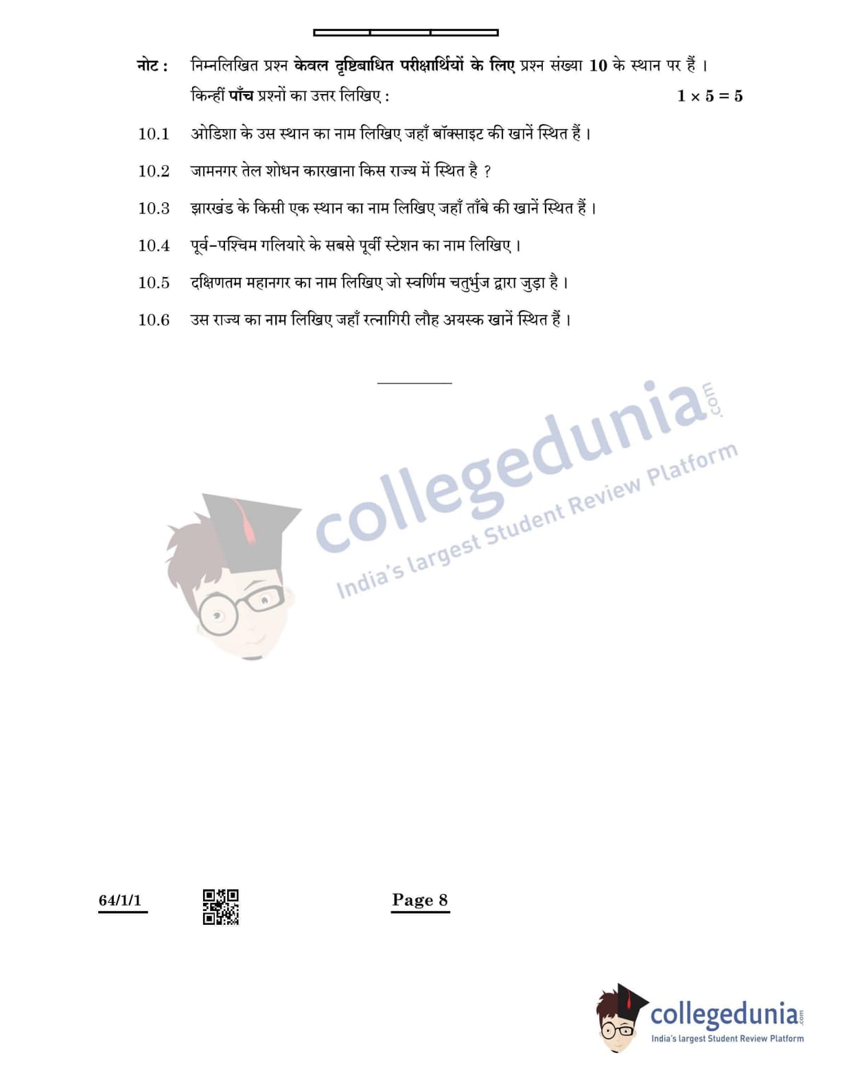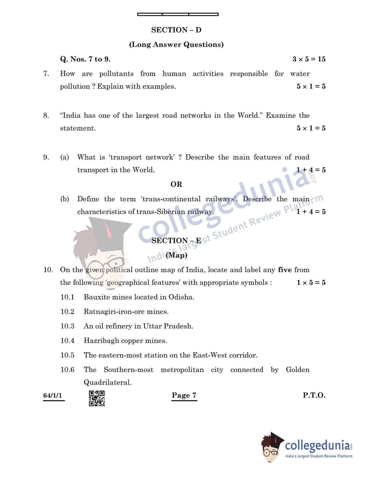 CBSE Class 12 Geography Question Paper 2022 with Answer Key (May 20, Set 1 - 64/1/1- Morning Session)