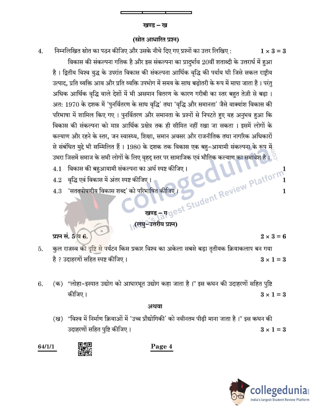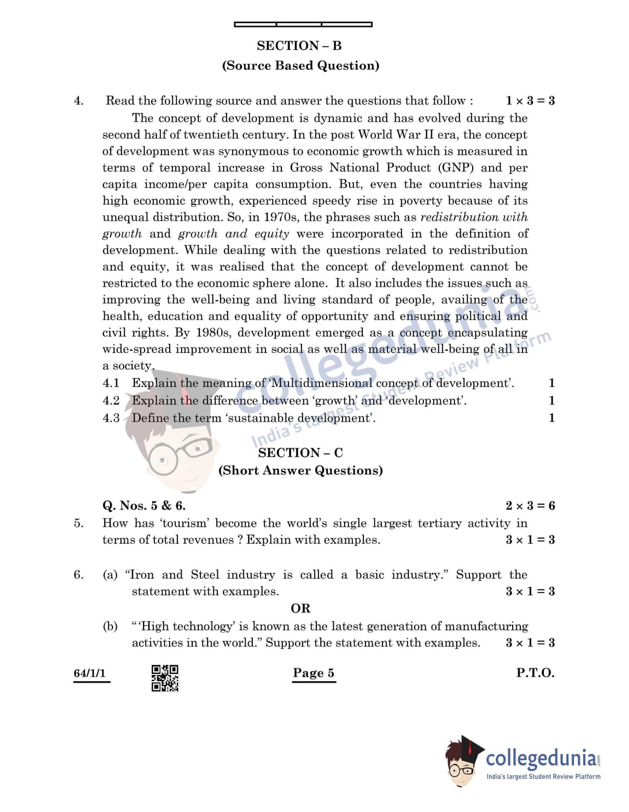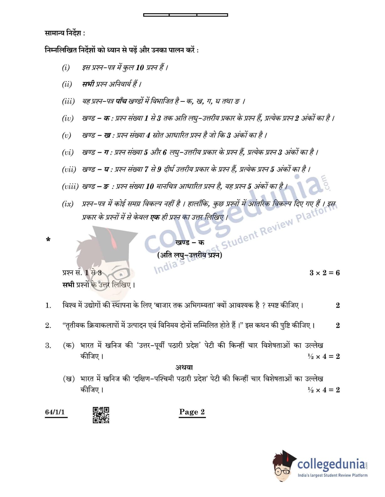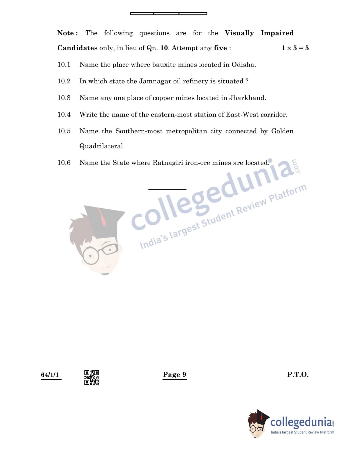 CBSE Class 12 Geography Question Paper 2022 with Answer Key (May 20, Set 1 - 64/1/1- Morning Session)