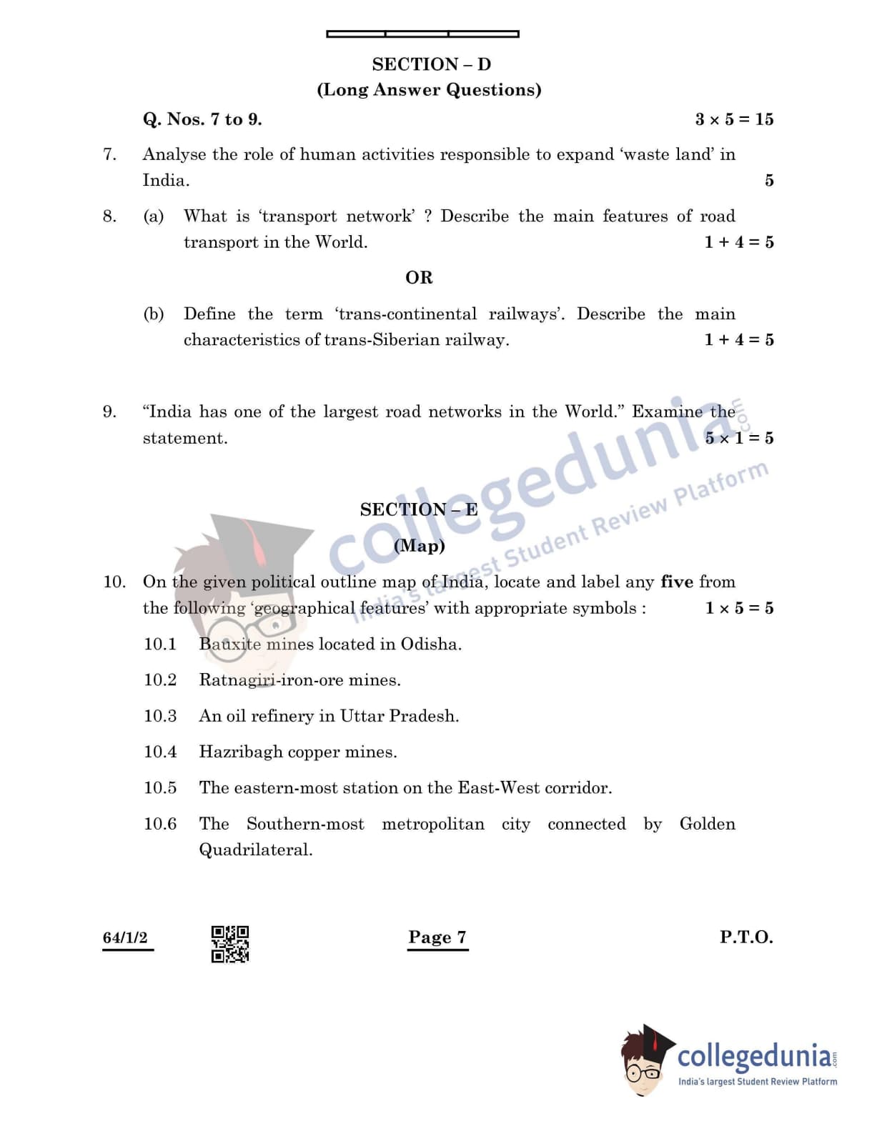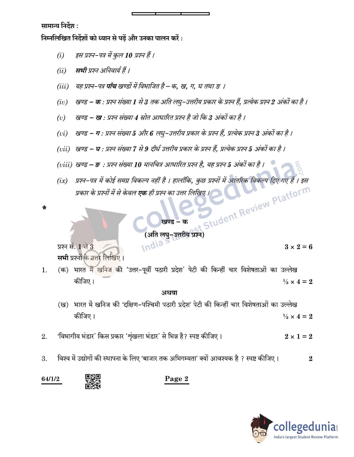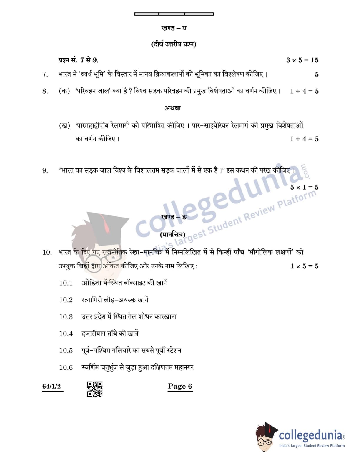CBSE Class 12 Geography Question Paper 2022 with Answer Key (May 20, Set 2 - 64/1/2- Morning Session)