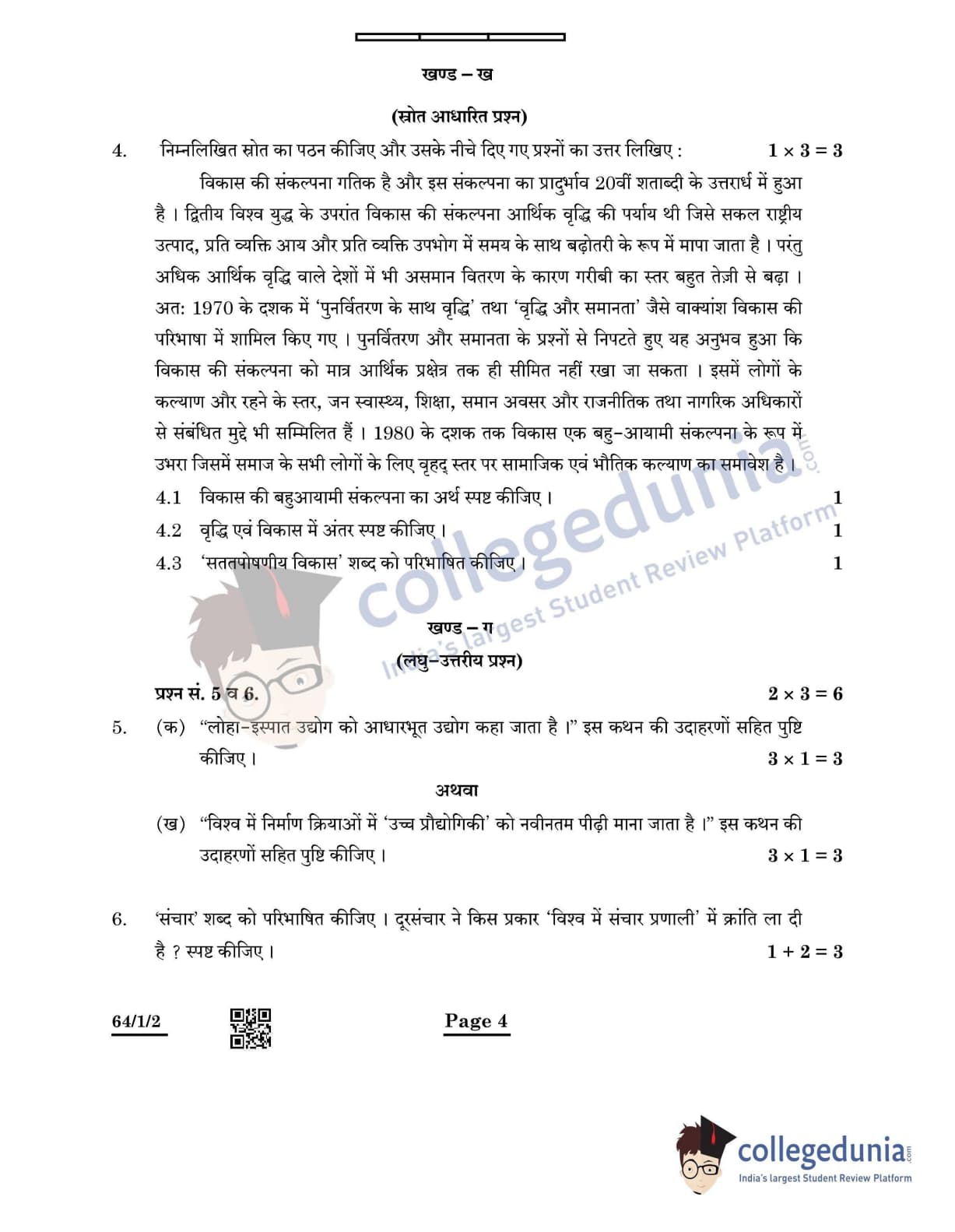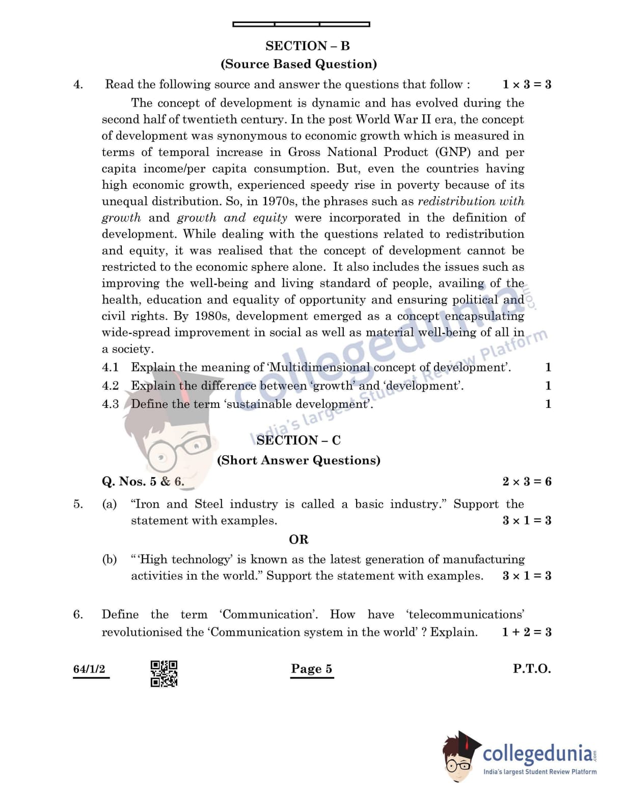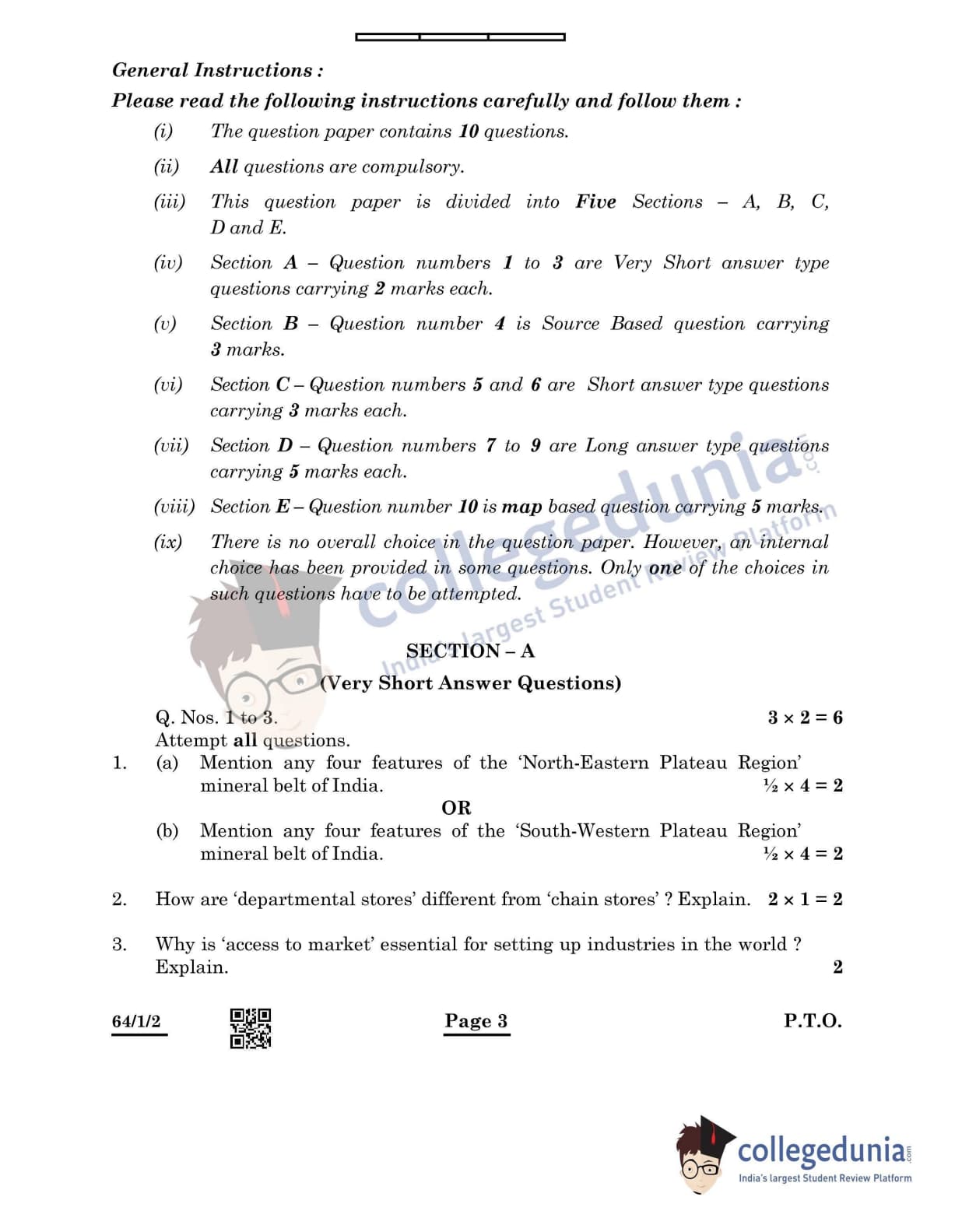 CBSE Class 12 Geography Question Paper 2022 with Answer Key (May 20, Set 2 - 64/1/2- Morning Session)