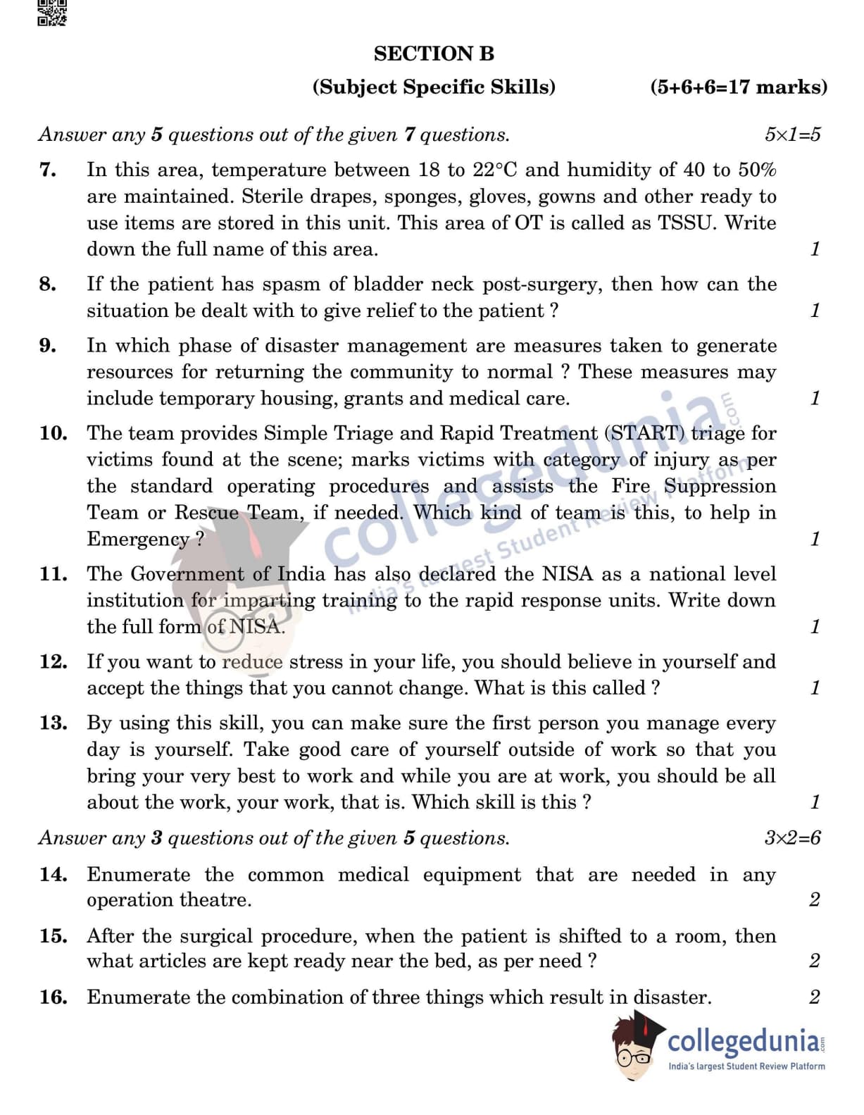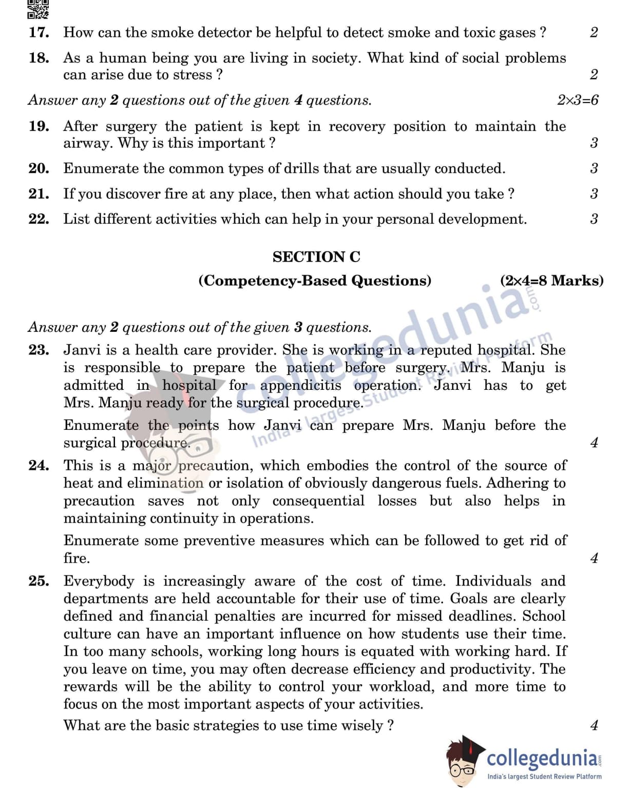 CBSE Class 12 Health Care Question Paper 2022 with Answer Key (May 26, Set 4- Morning Session)
