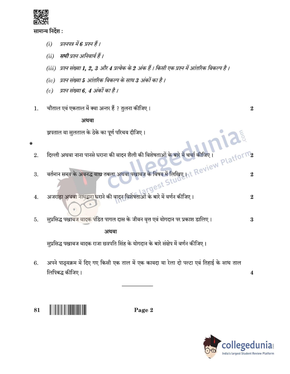 CBSE Class 12 Hindustani Music Per Ins Question Paper 2022 with Answer Key (May 26, Set 4- Morning Session)